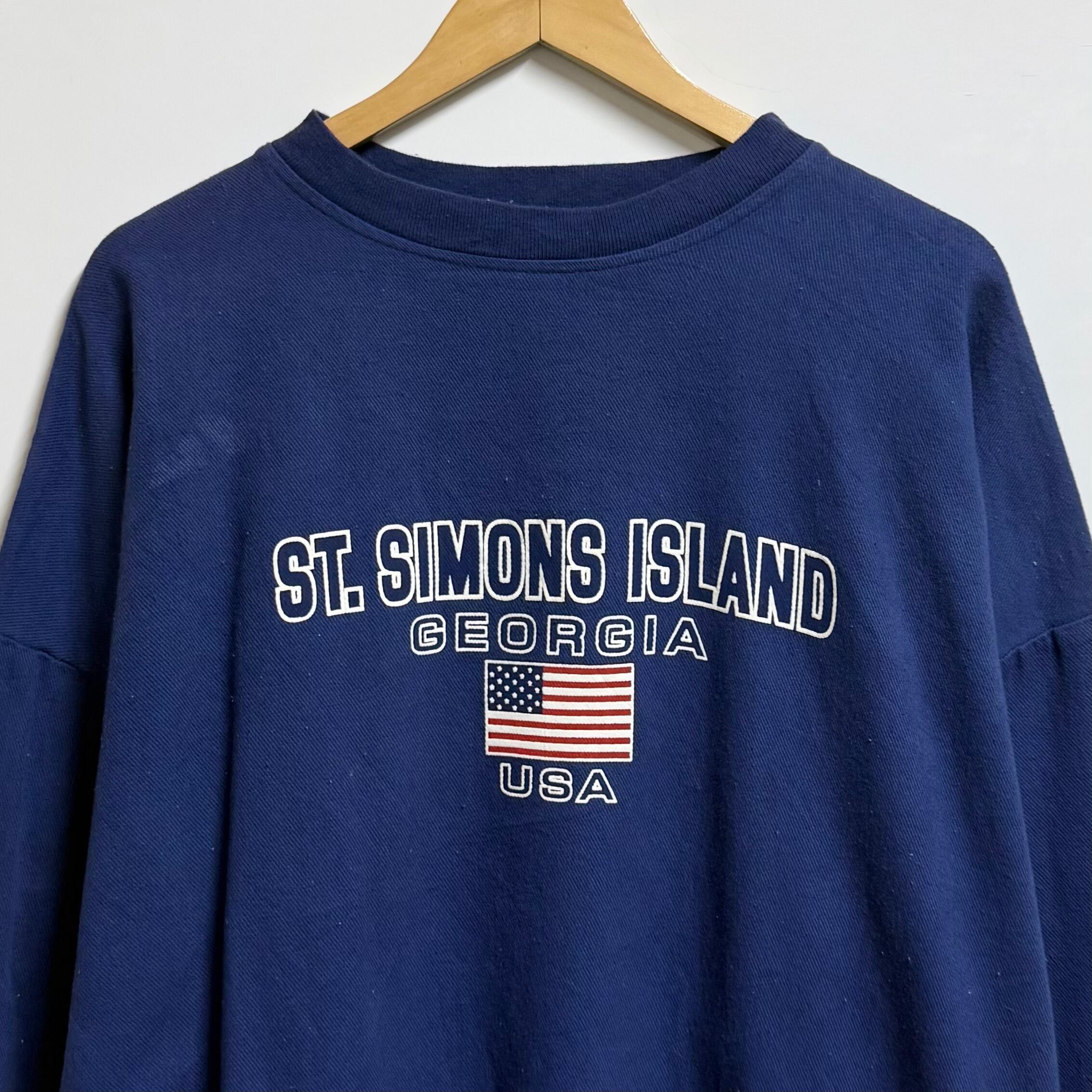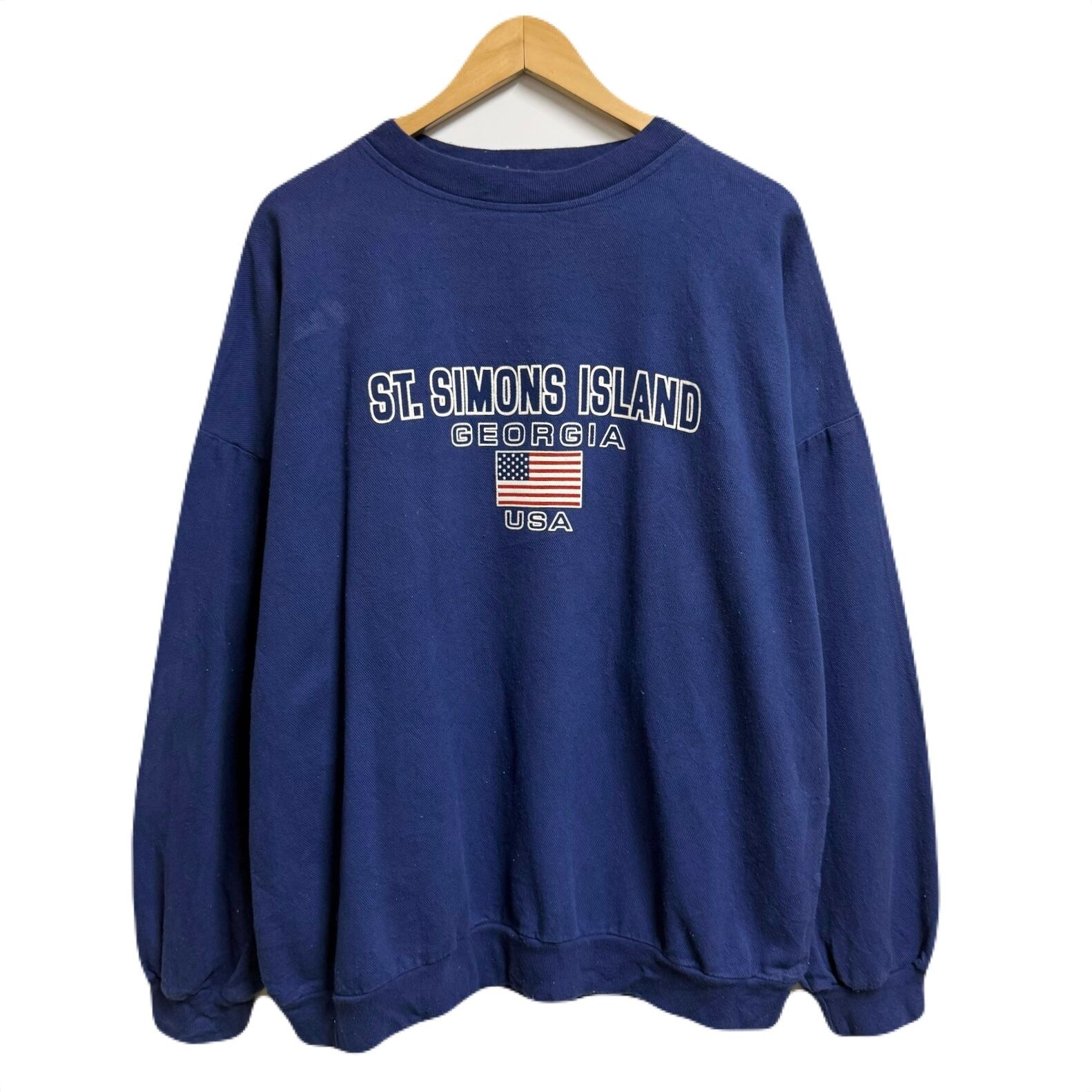 フロントプリント セントシモンズ 星条旗 トレーナー スウェット 紺 ネイビー L/XLサイズ No.M687