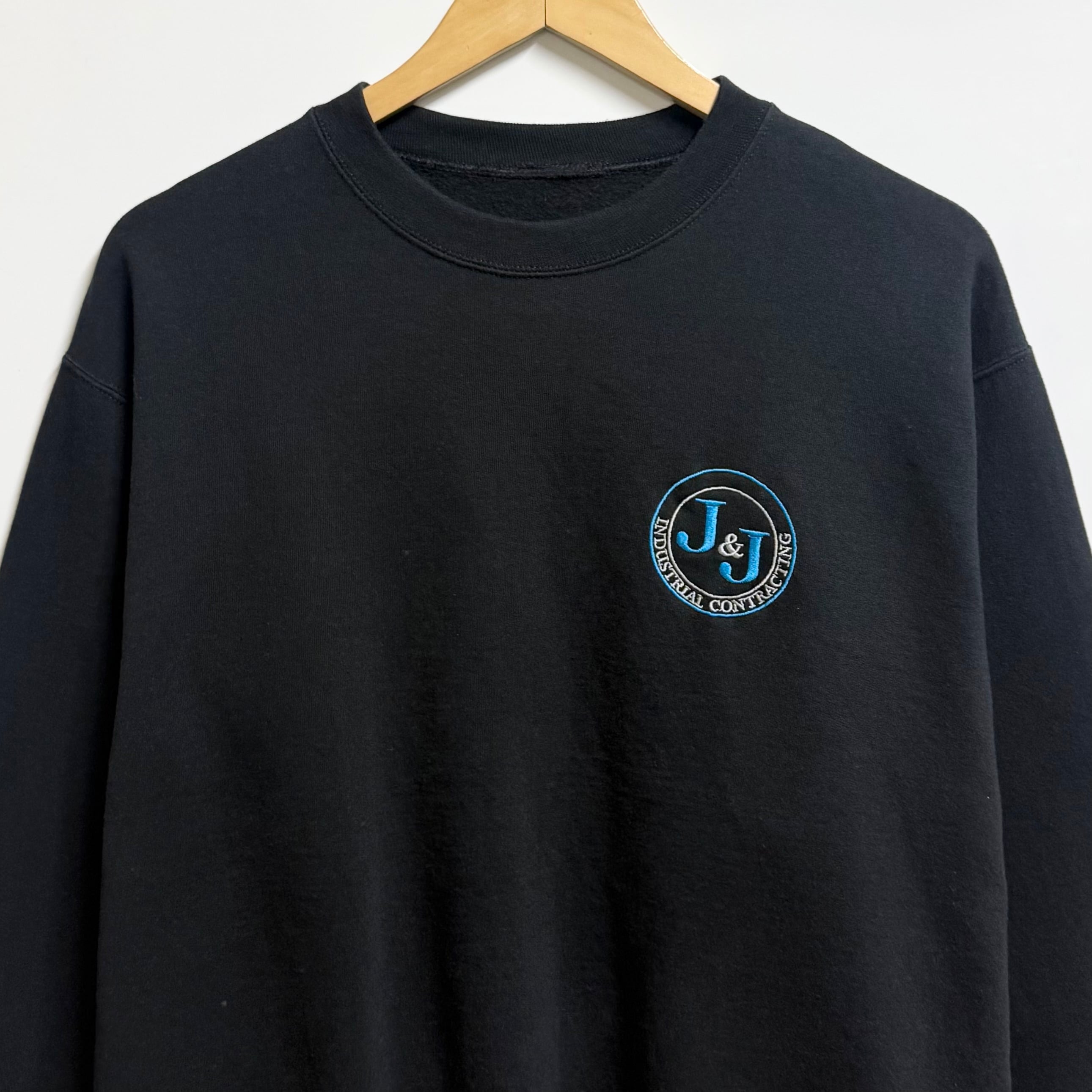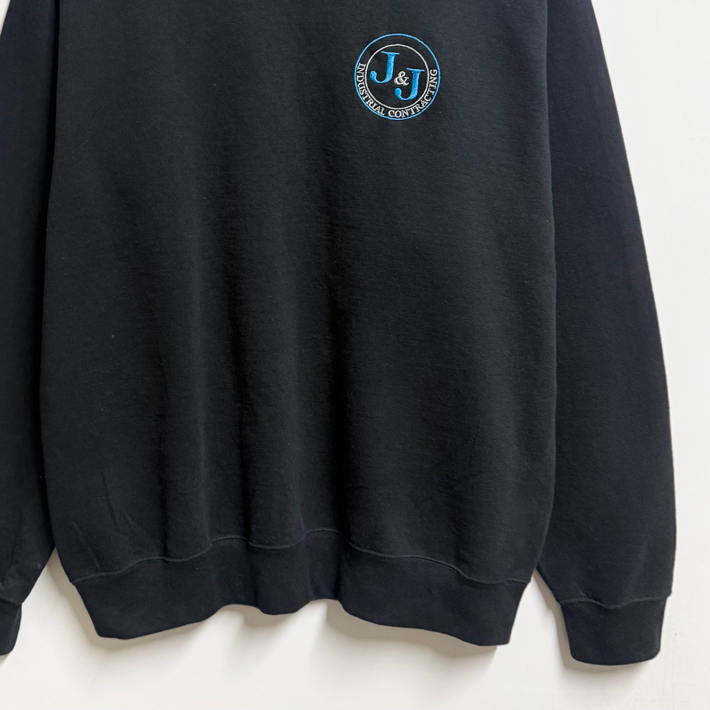 J&J 企業ロゴ 刺繍 トレーナー スウェット 裏起毛 黒 ブラック No.M688