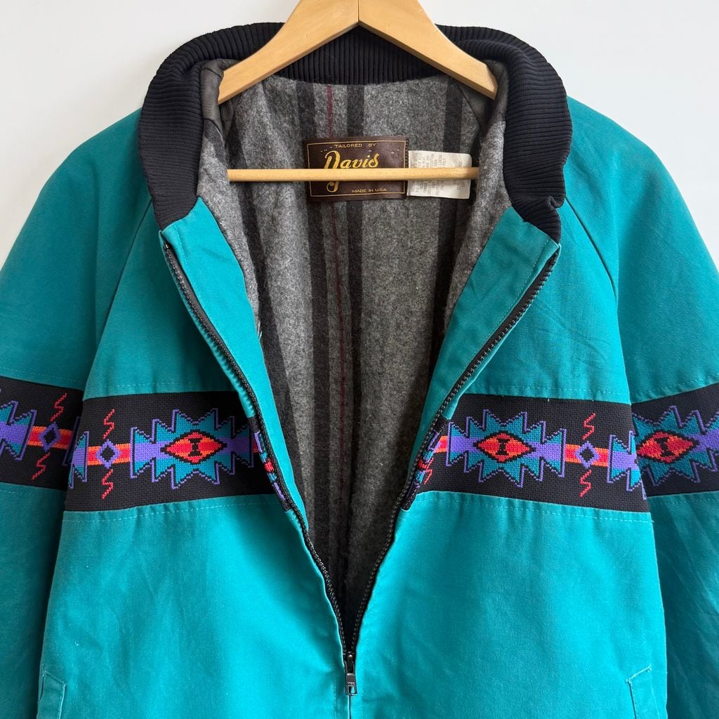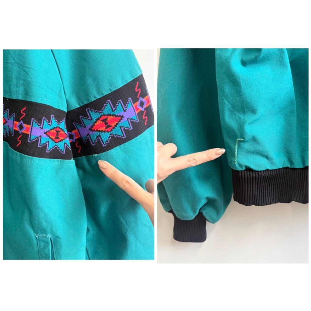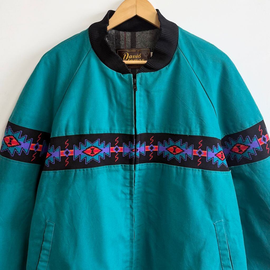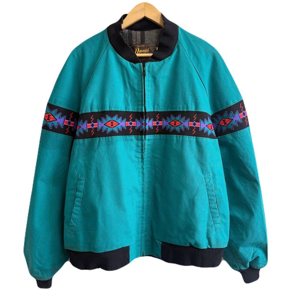 USA製 Davis James ネイティブ柄 切り替えデザイン ブランケット裏地 ブルゾン エメラルドグリーン×多色 XLサイズ No.M701