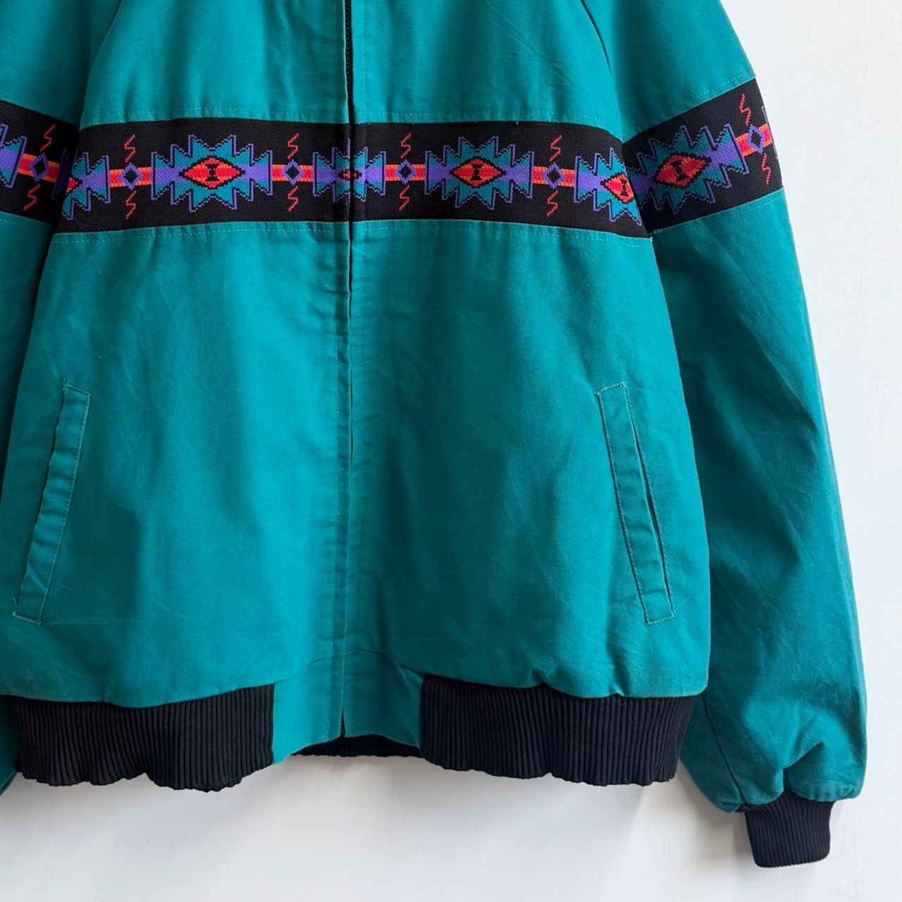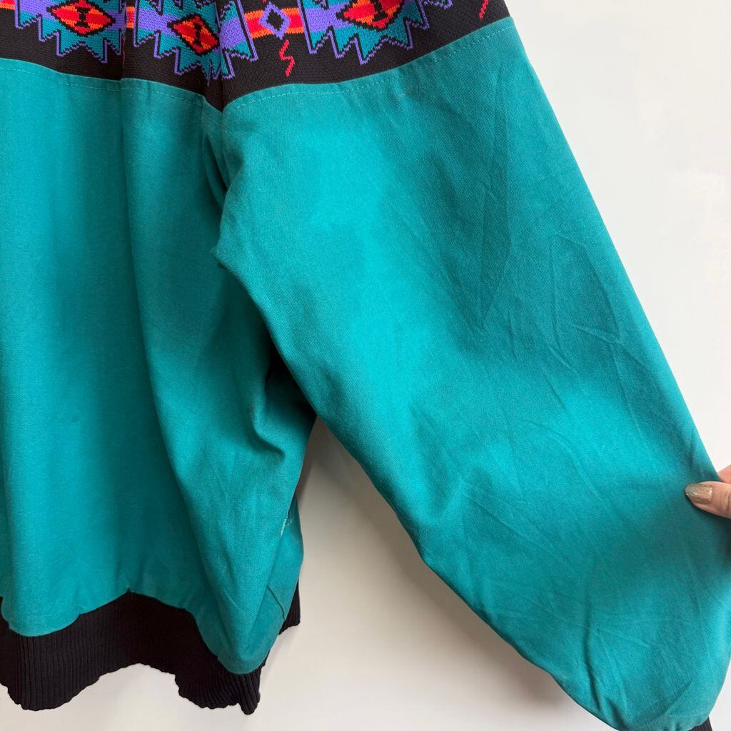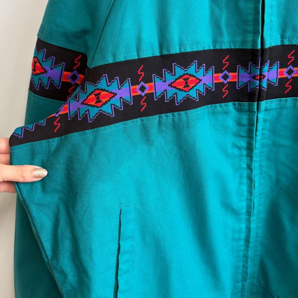 USA製 Davis James ネイティブ柄 切り替えデザイン ブランケット裏地 ブルゾン エメラルドグリーン×多色 XLサイズ No.M701