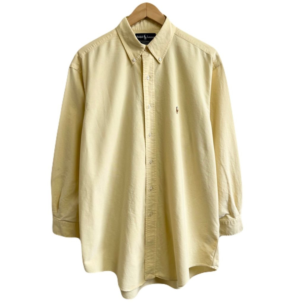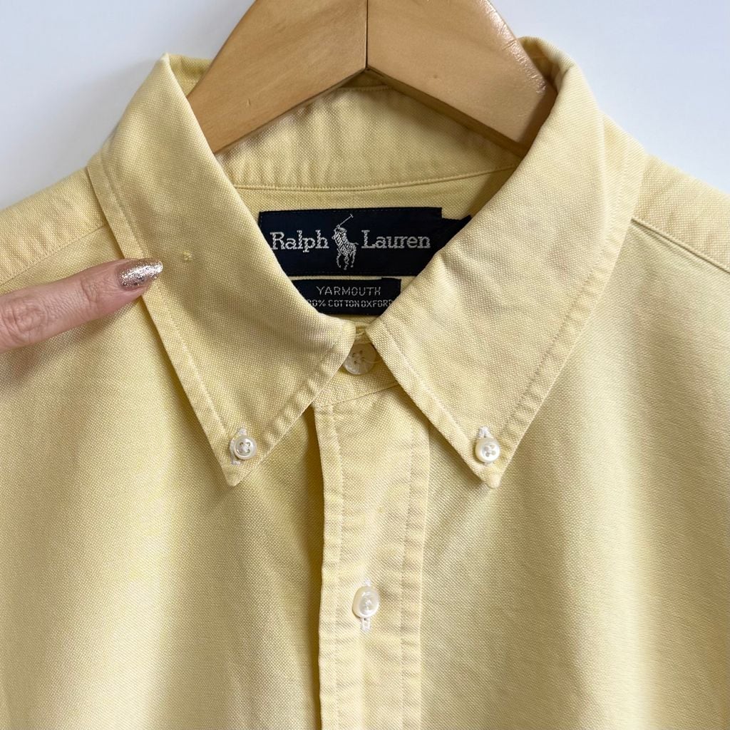 Ralph Lauren ラルフローレン YARMOUTH ボタンダウンシャツ コットンシャツ 長袖シャツ ワンポイントロゴ 刺繍 ライトイエロー No.M707