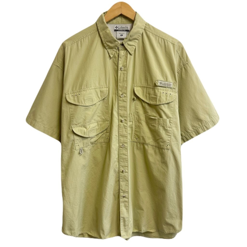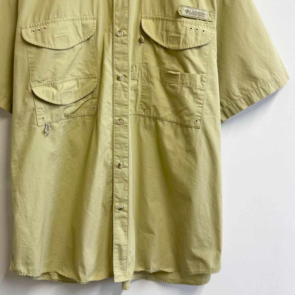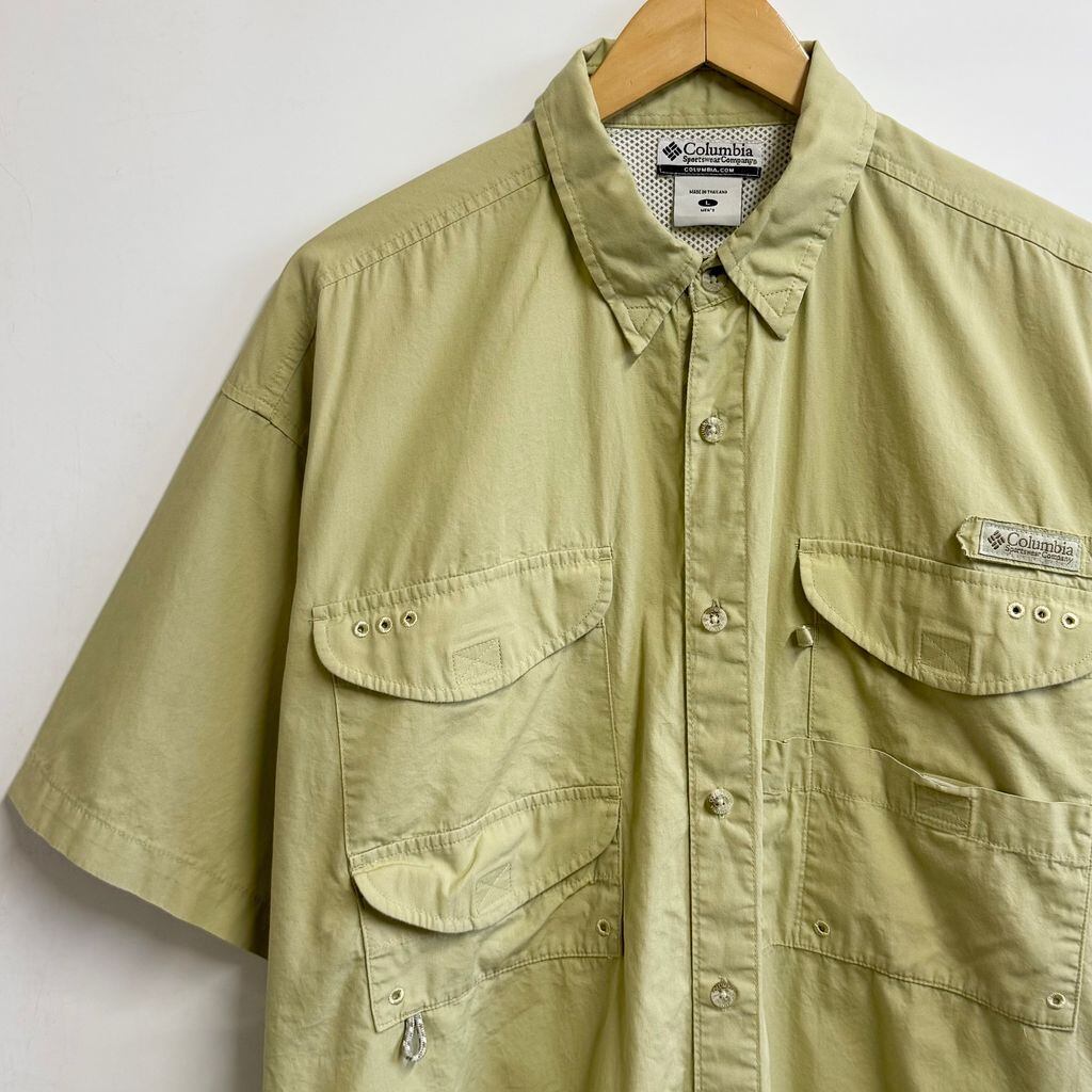 Columbia コロンビア PFG フィッシングシャツ 半袖シャツ ライトグリーン系 Lサイズ No.M713