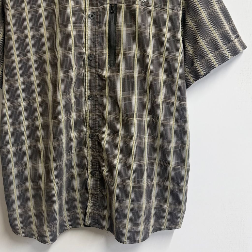 Columbia コロンビア TITANIUM チタニウム OMNI SHIELD チェック柄 ポケット付き 半袖シャツ チャコールグレー×ブラウン×多色 Mサイズ No.M714