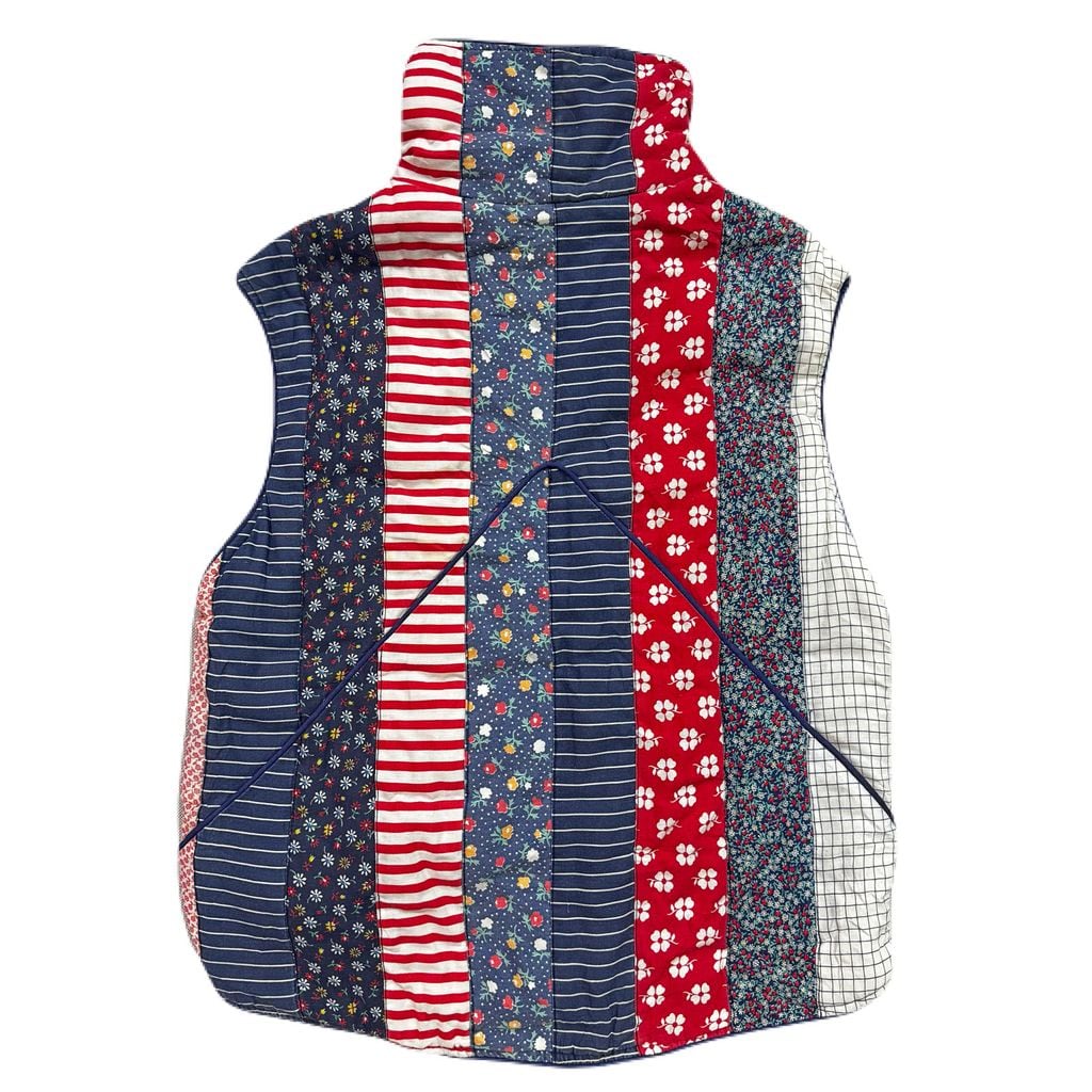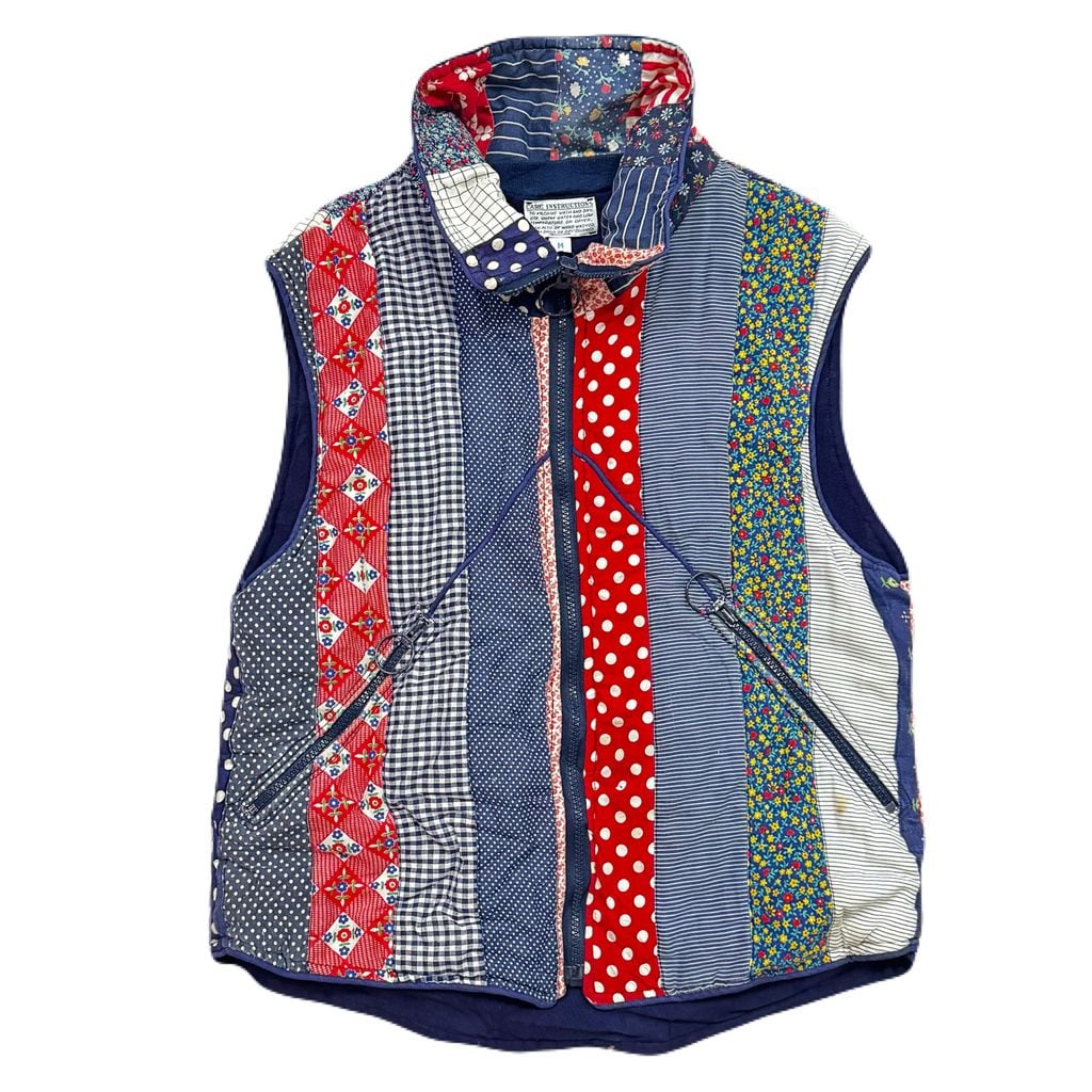 vintage patchwork quilting vest パッチワーク キルティングベスト 花柄 水玉 多色 Mサイズ No.EA234