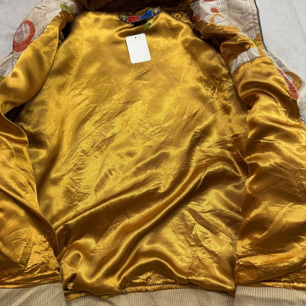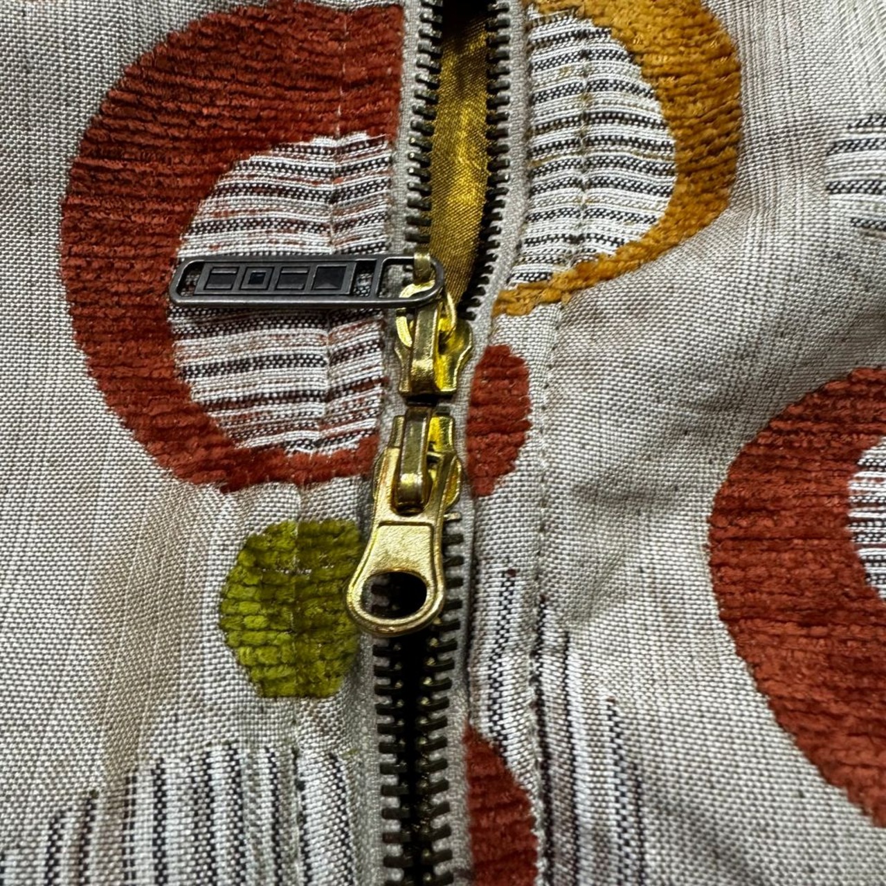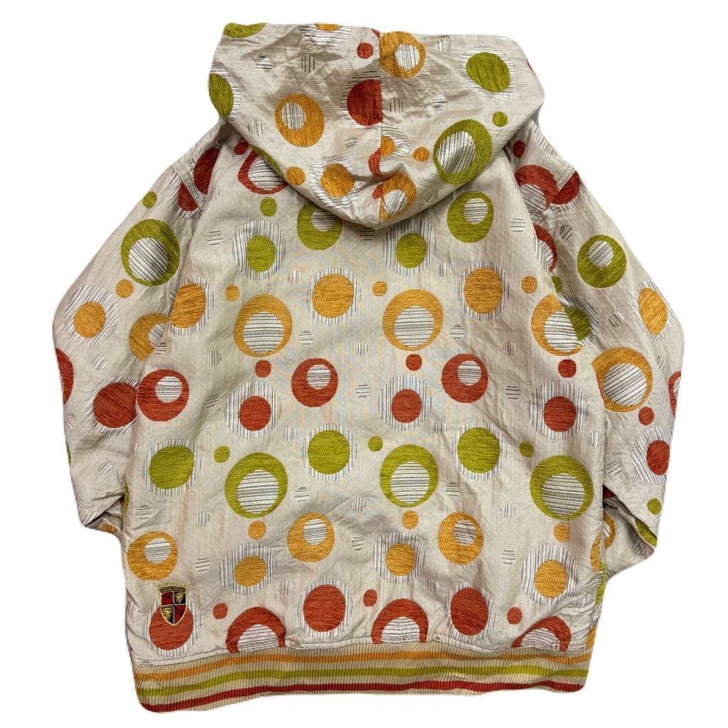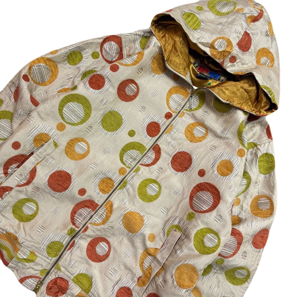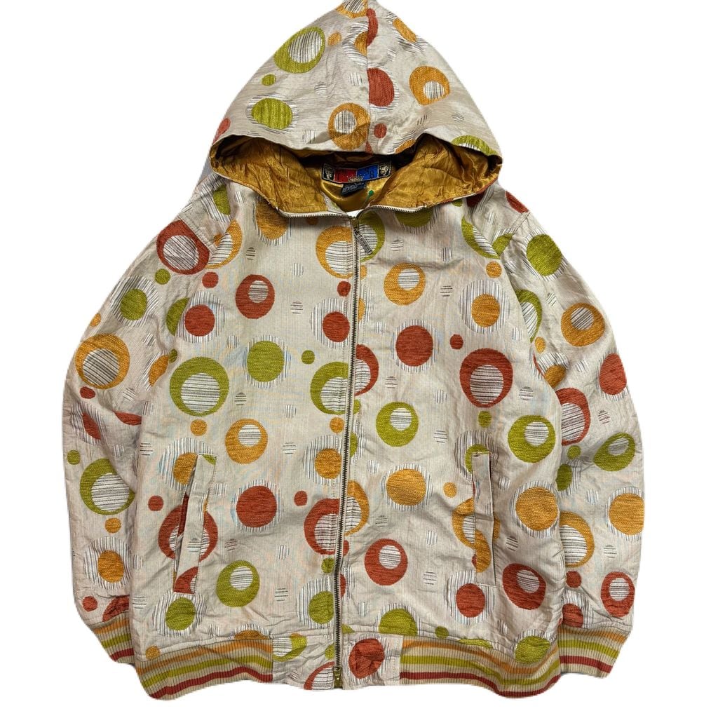7th and 38th 水玉 円 レトロ ジップアップ フード付きジャケット ベージュ×オレンジ×グリーン Lサイズ No.EA236