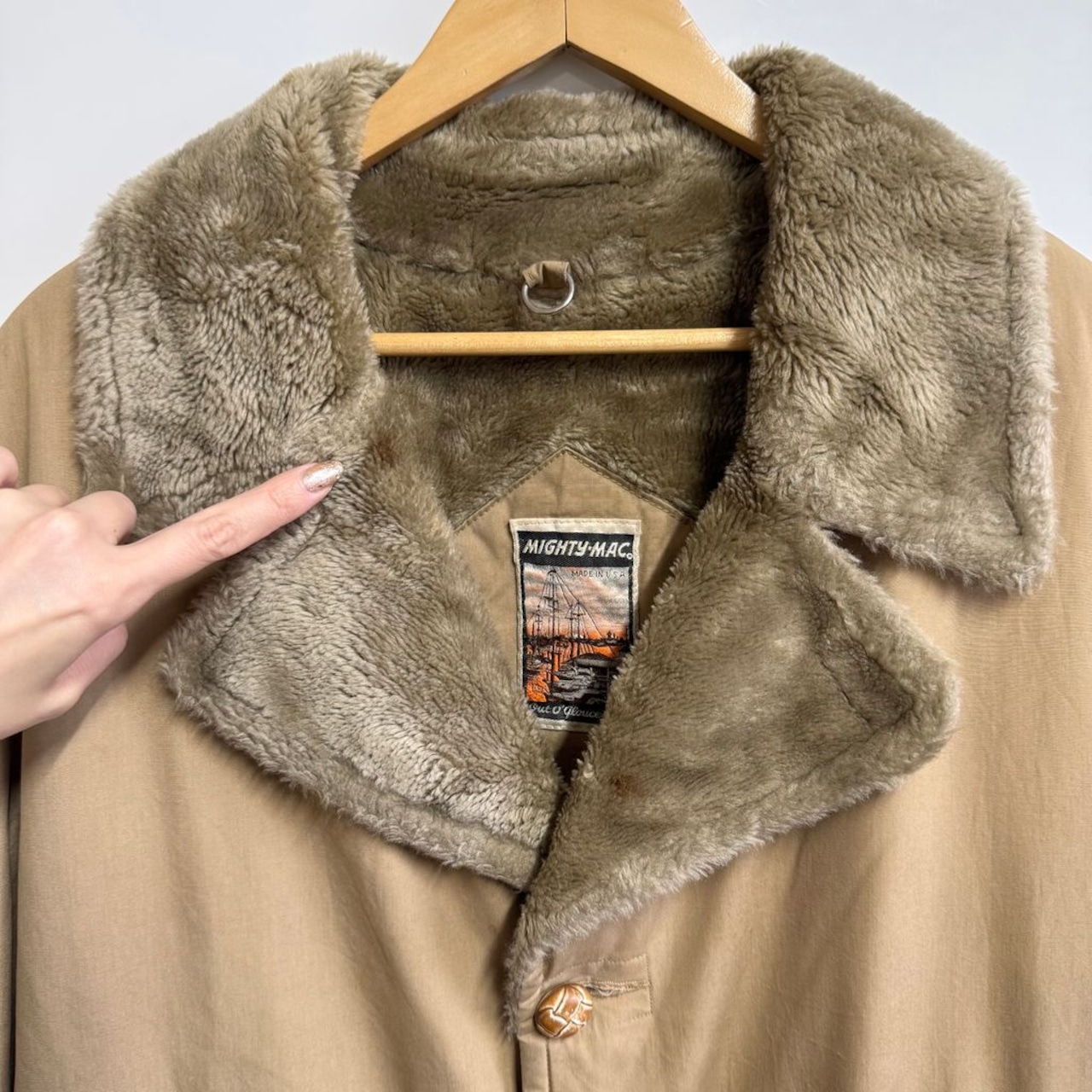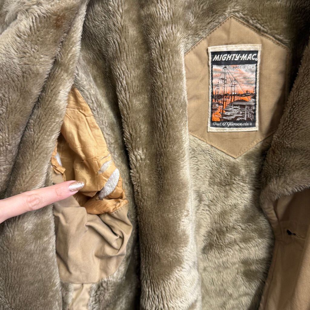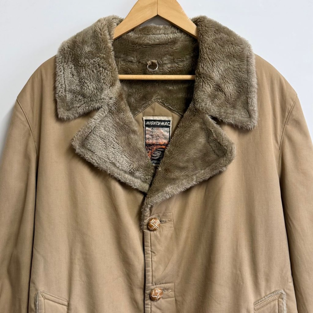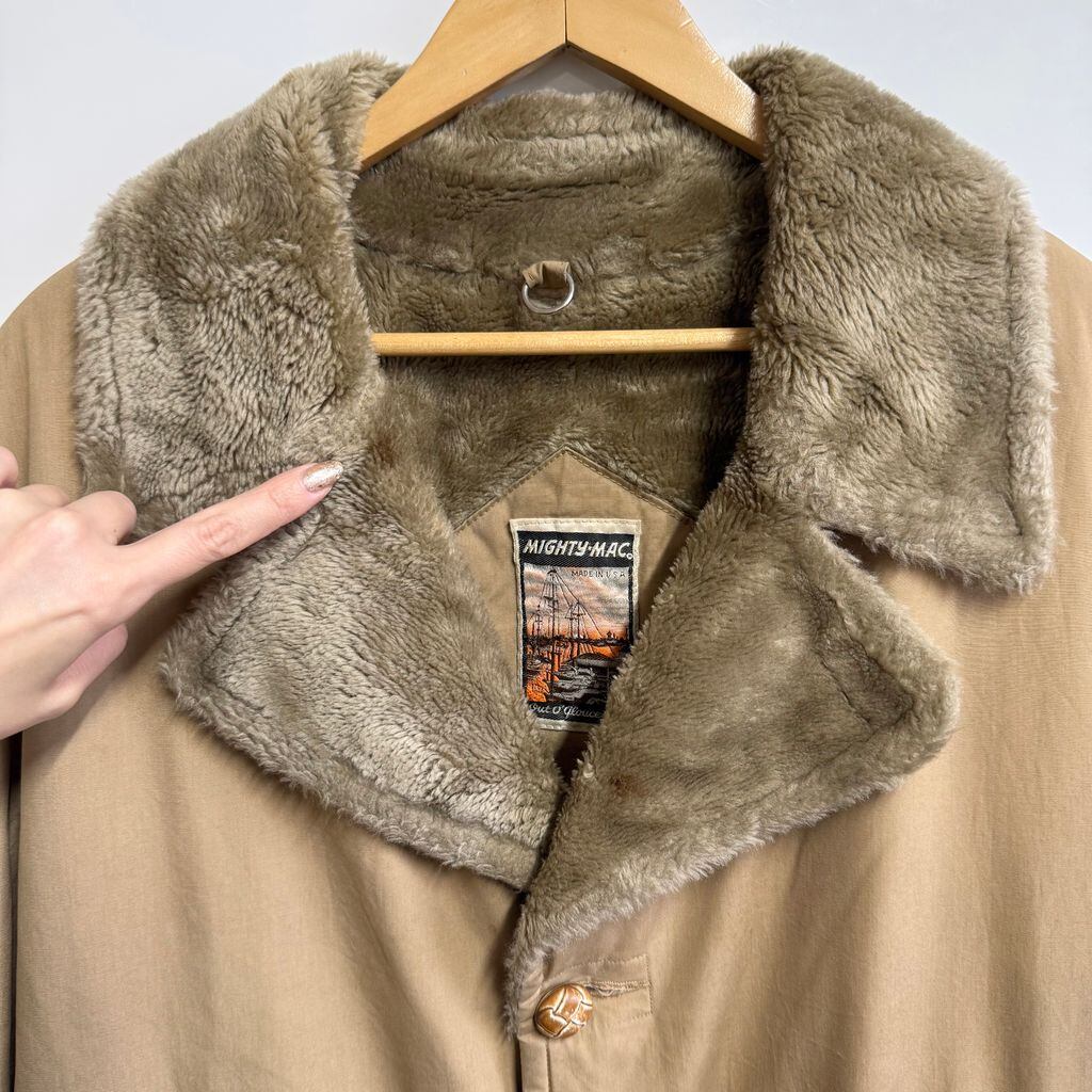 70's〜80's USA製 MIGHTY-MAC マイティーマック 裏ボア ギャングコート ランチコート ベージュ サイズ42 No.M724