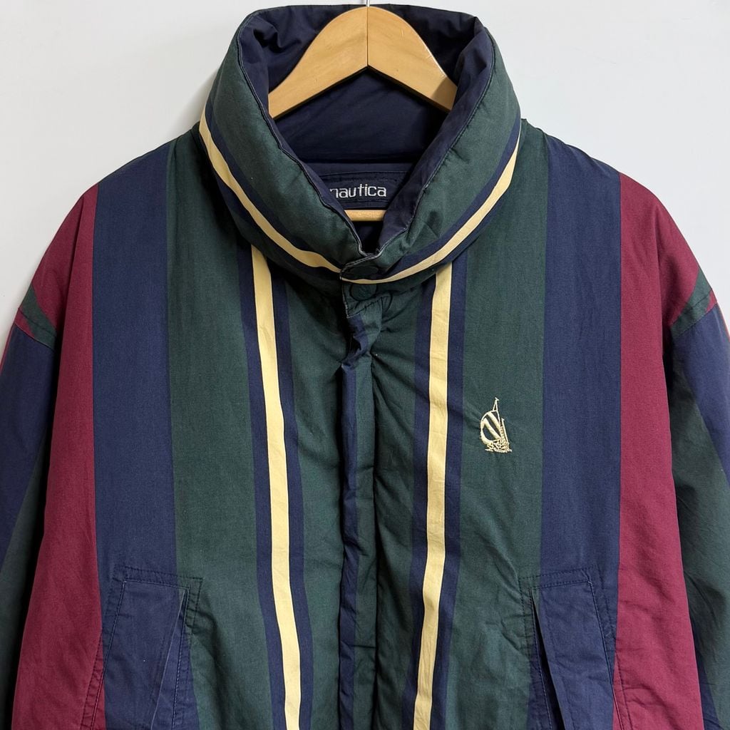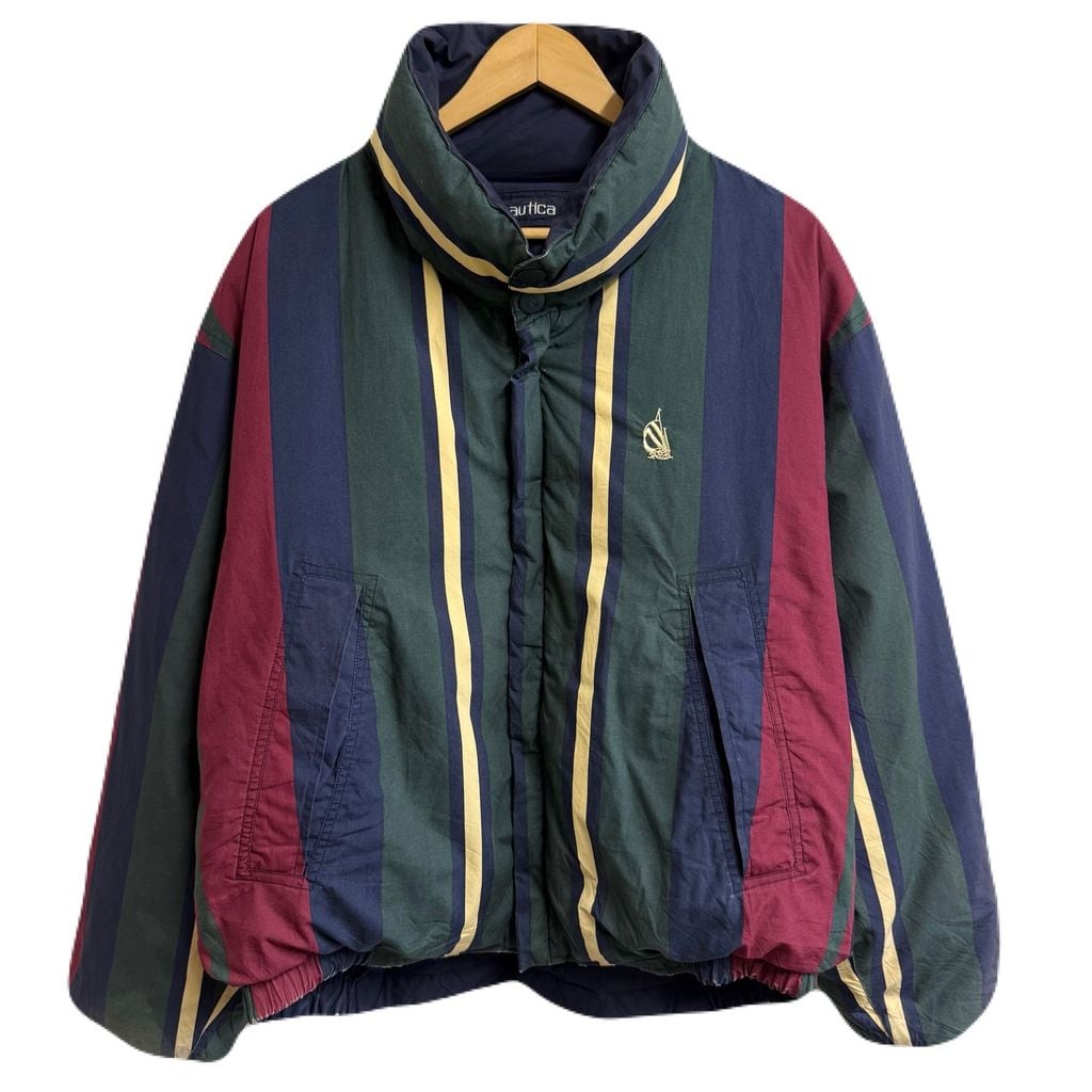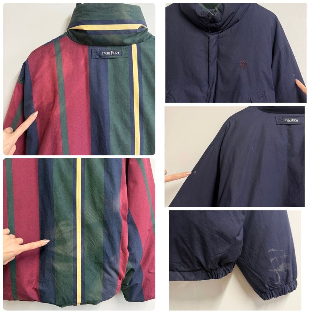 (リバーシブル) nautica ノーティカ ダウンジャケット ストライプ×無地 紺 ネイビー×多色 Mサイズ No.M726