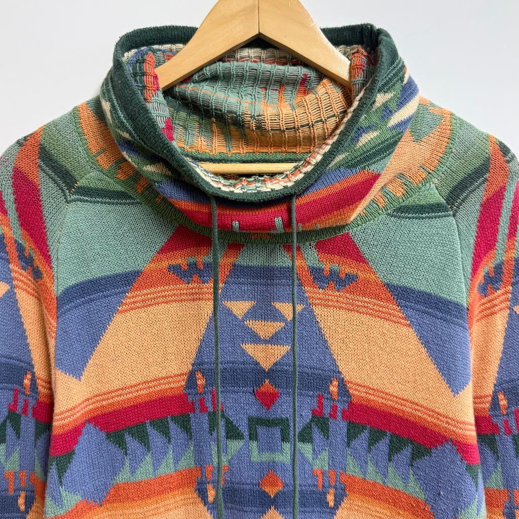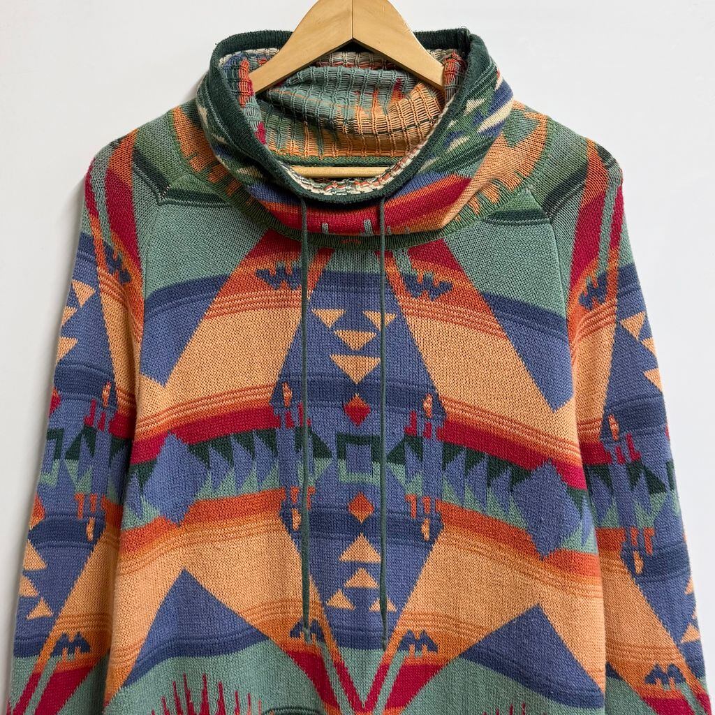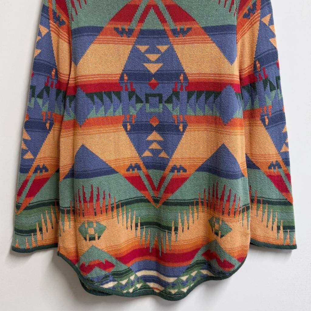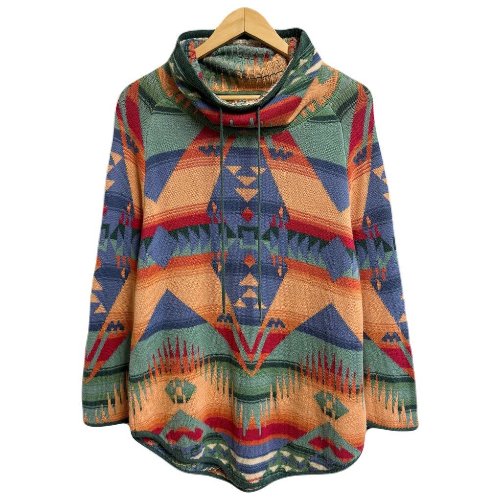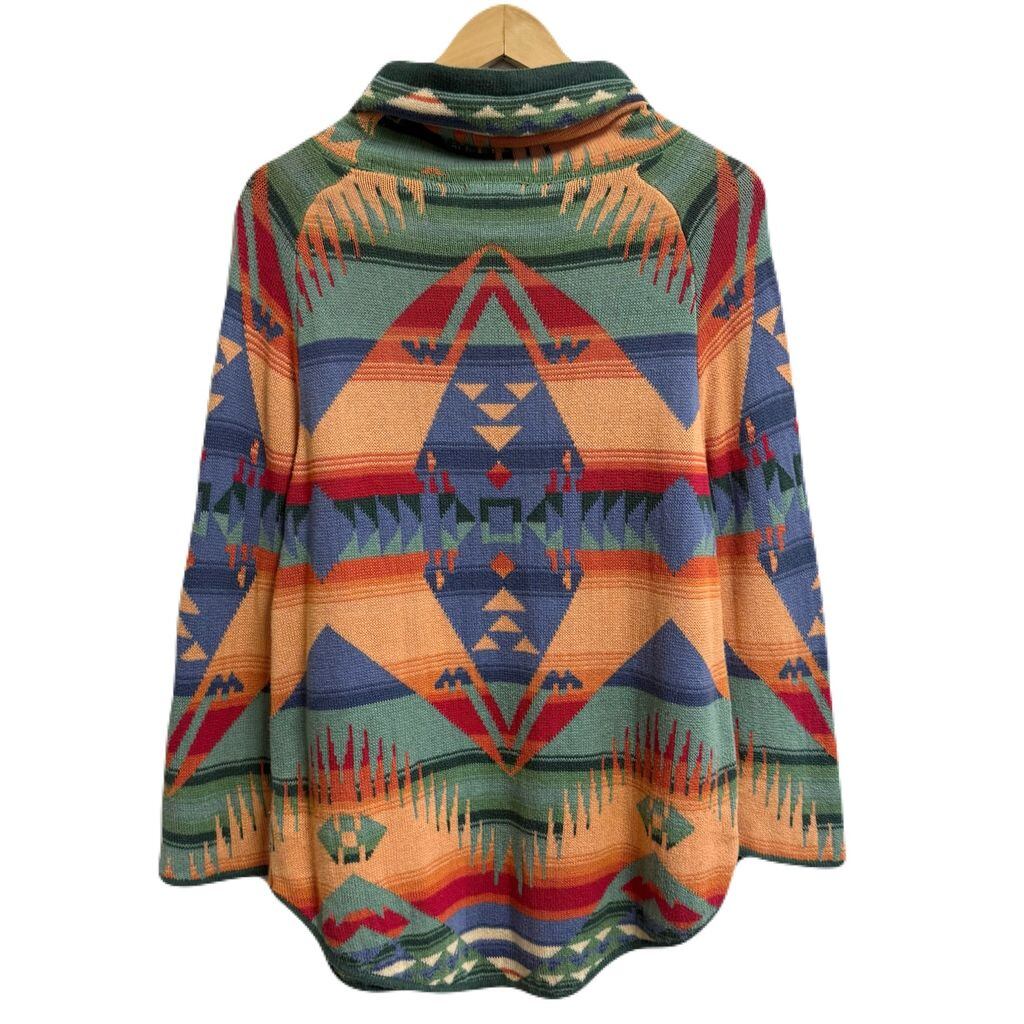 CHAPS チャップス ナイスデザイン ネイティブ柄 カウルネック ニットセーター チュニック 多色 カラフル L/Gサイズ No.M731