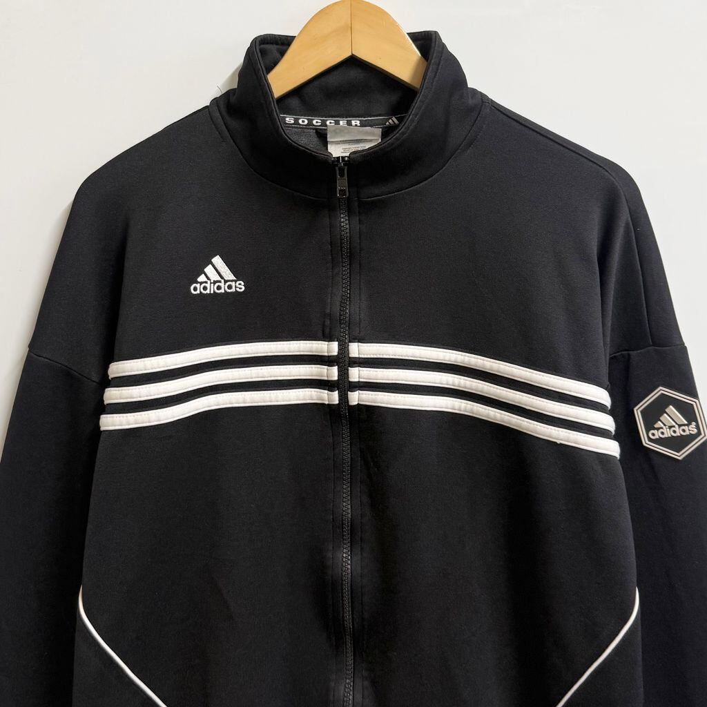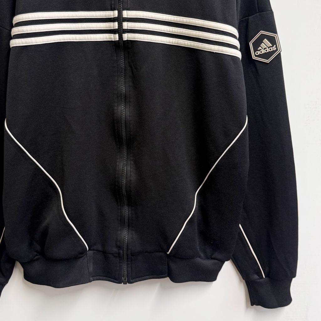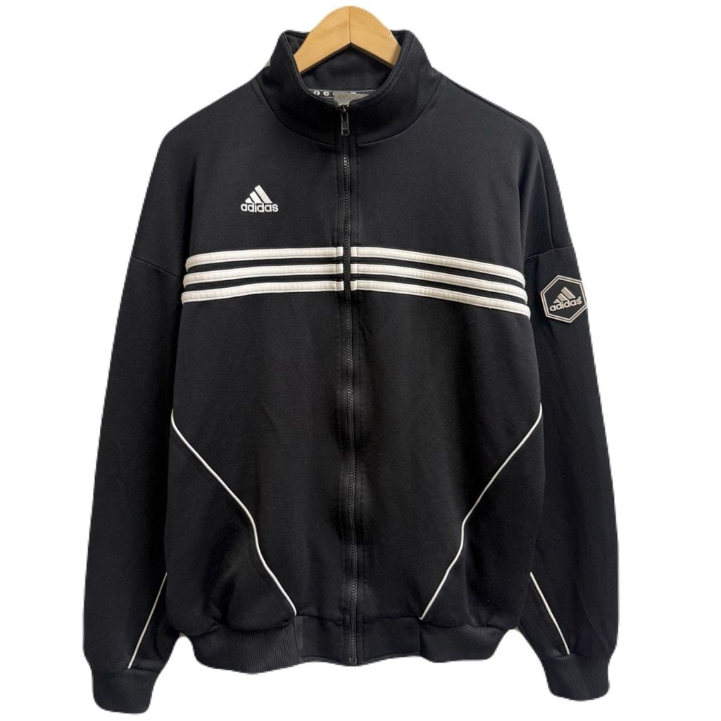 90's adidas アディダス トラックジャケット ジャージ ロゴワッペン 刺繍 黒 ブラック Lサイズ No.M733