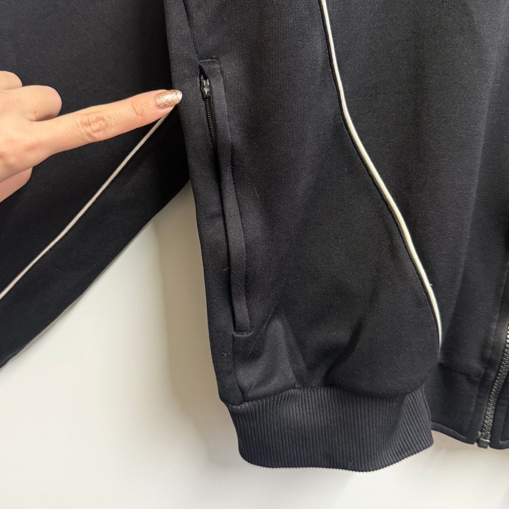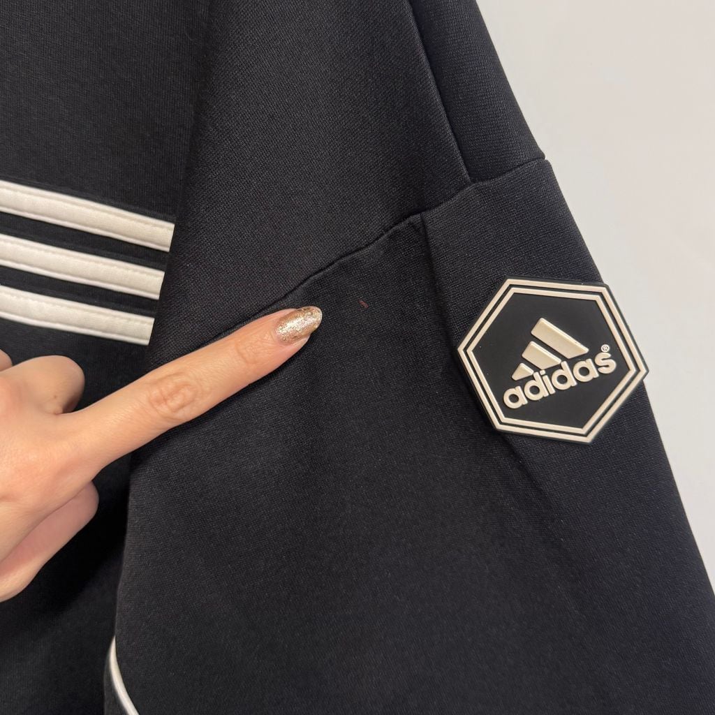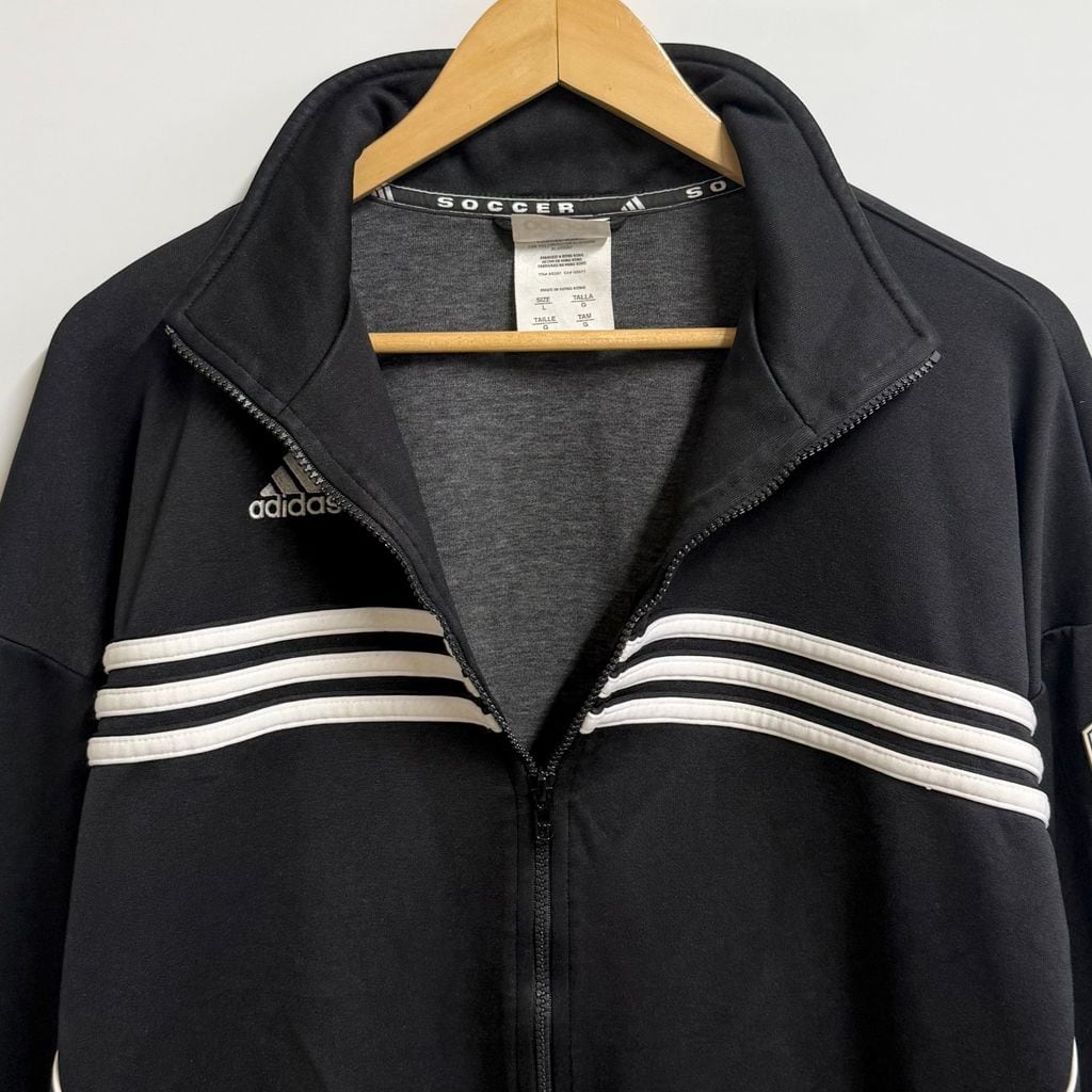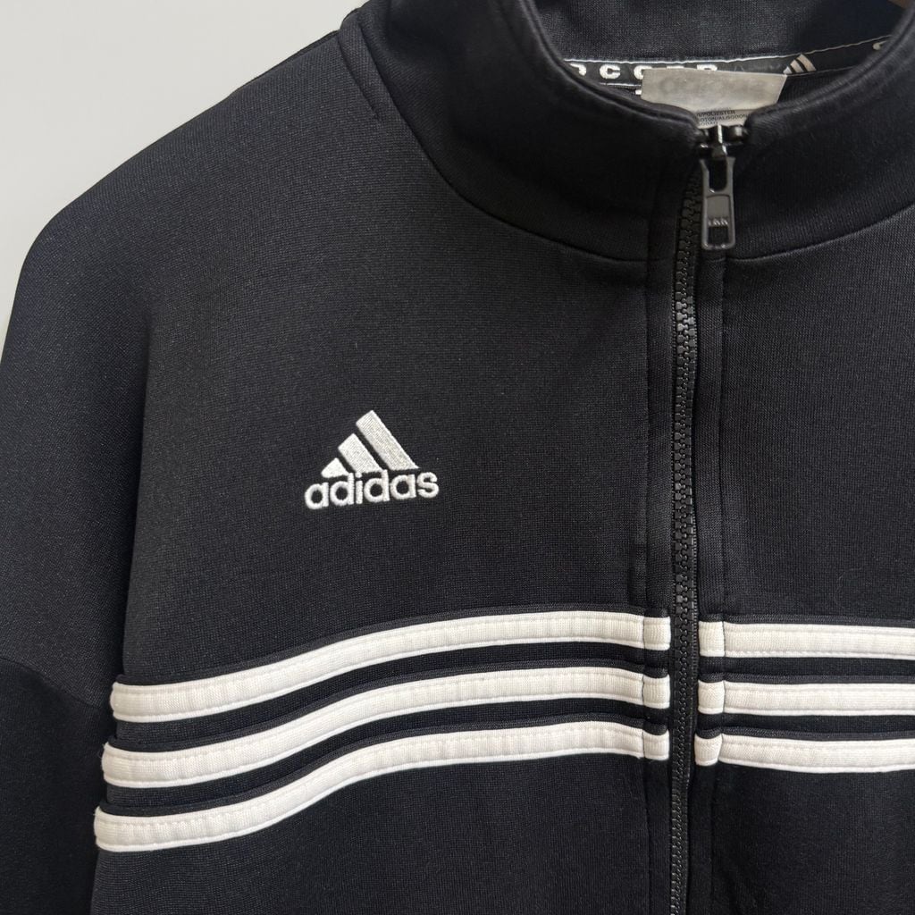 90's adidas アディダス トラックジャケット ジャージ ロゴワッペン 刺繍 黒 ブラック Lサイズ No.M733