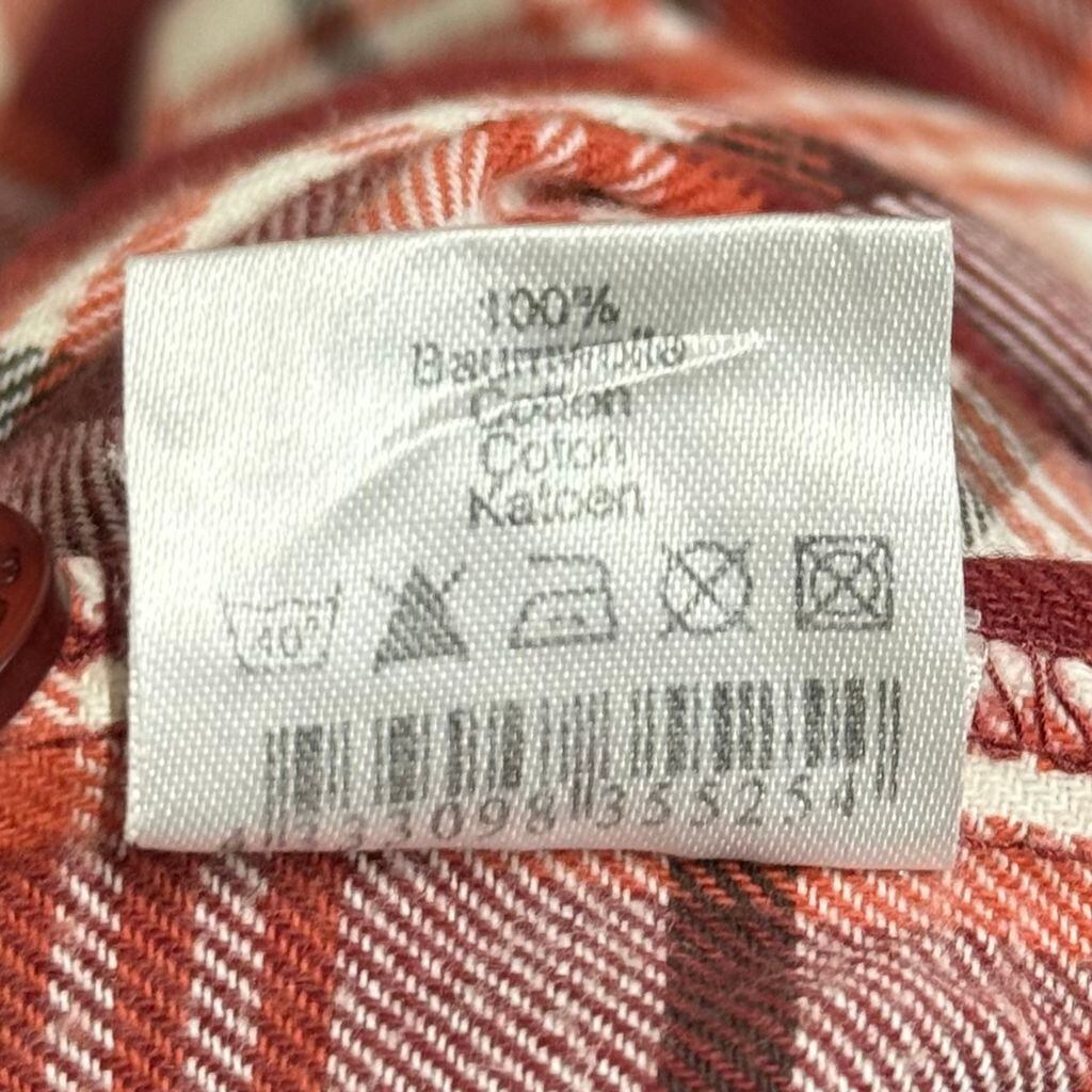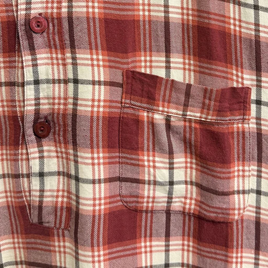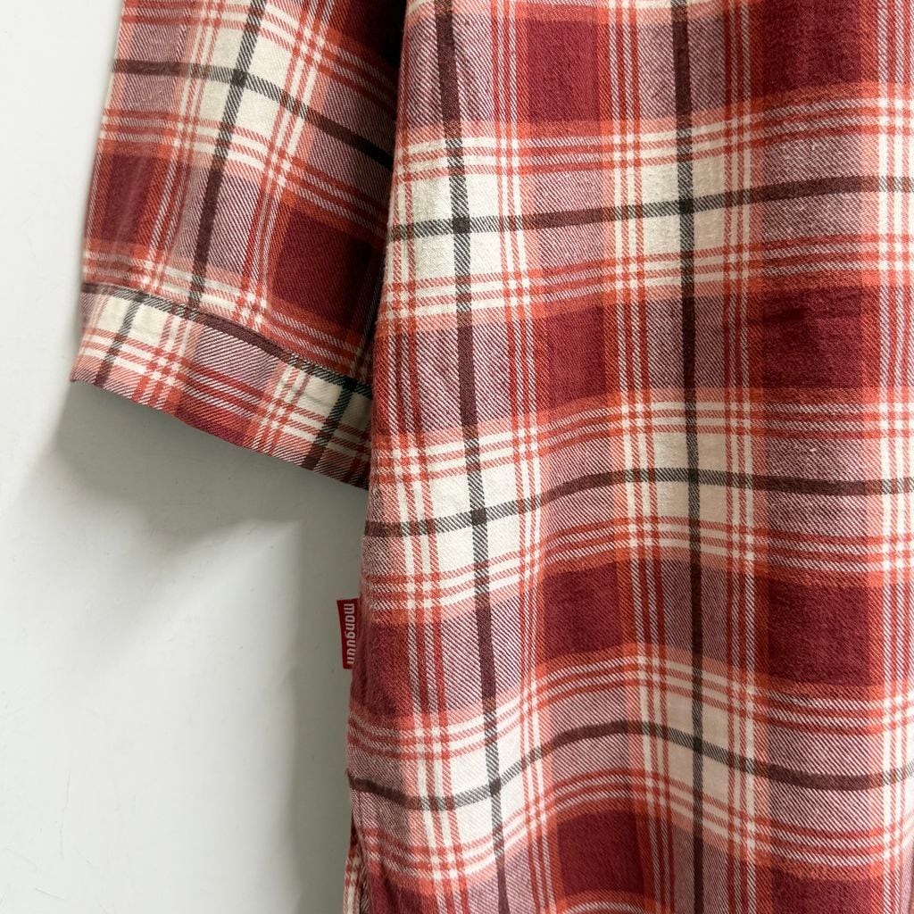 manguun グランパシャツ プルオーバーシャツ ロングシャツ チェック柄 白×赤×オレンジ×茶色 No.M734