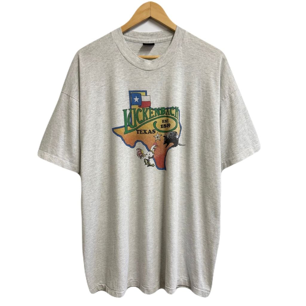 両面プリント Texas テキサス ラッケンバッハ ニワトリ アルマジロ アニマルプリント シングルステッチ 半袖Tシャツ ライトグレー XXLサイズ No.M739