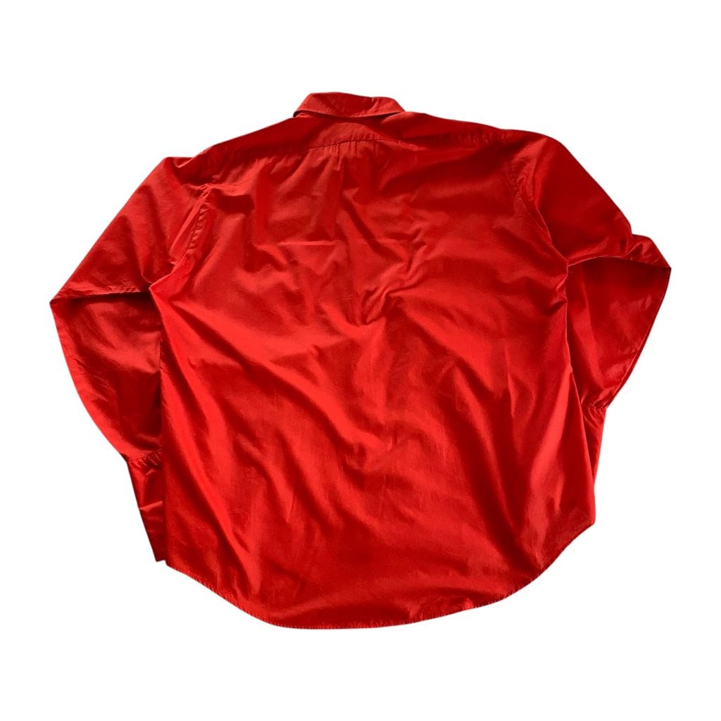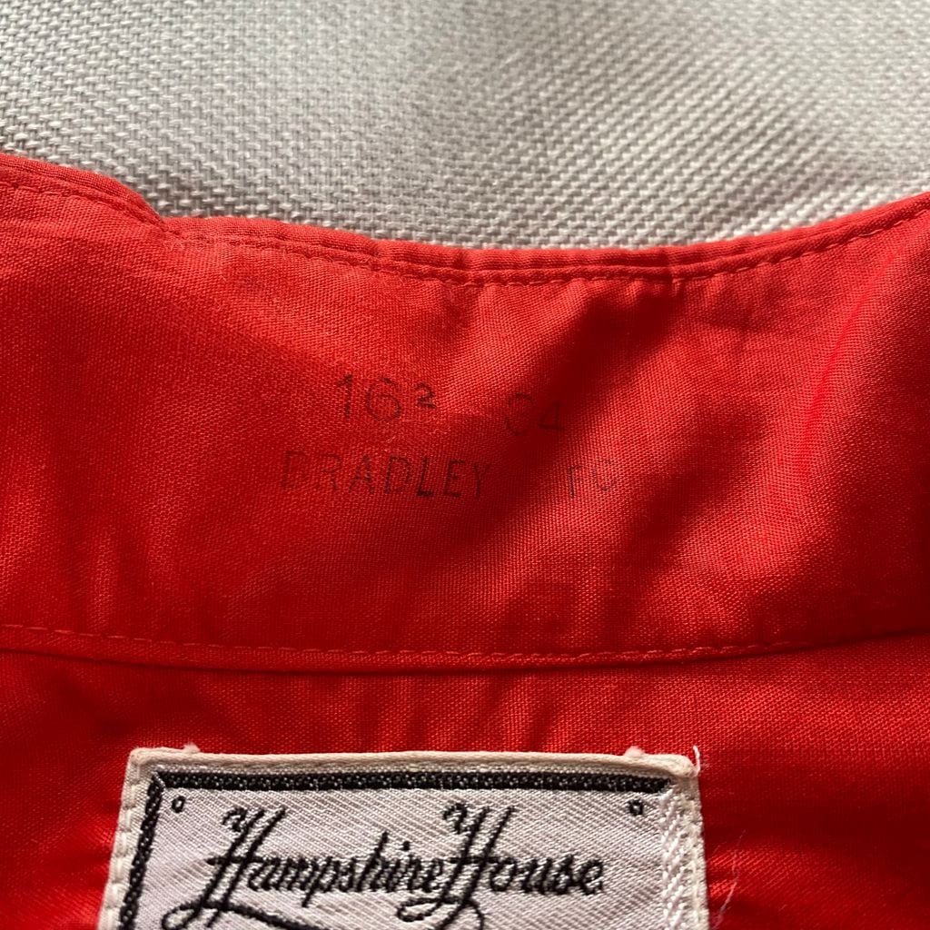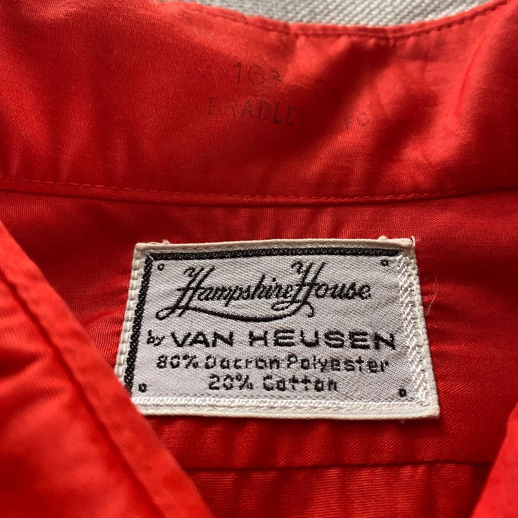 70s VAN HEUSEN ヴァンヒューゼン 長袖シャツ 無地 ポケット付き デカ襟 カフスシャツ 赤 サイズ16 1/2 No.S158