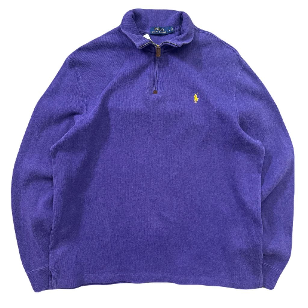 POLO RALPH LAUREN ポロ ラルフローレン ハーフジップ コットンニット 紫 Lサイズ No.EA243