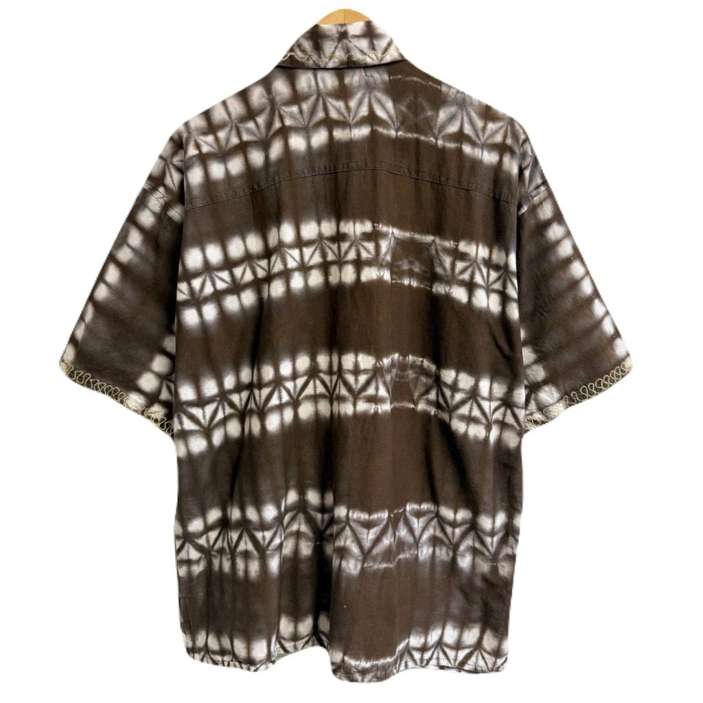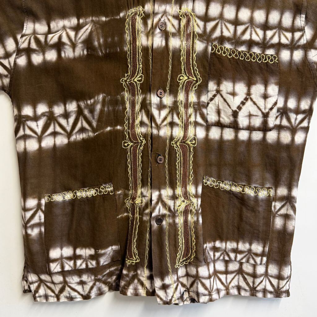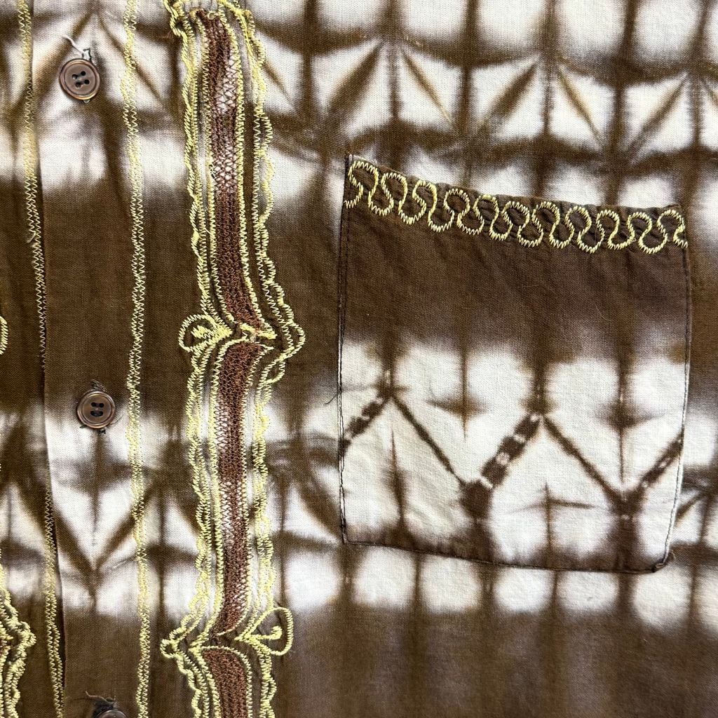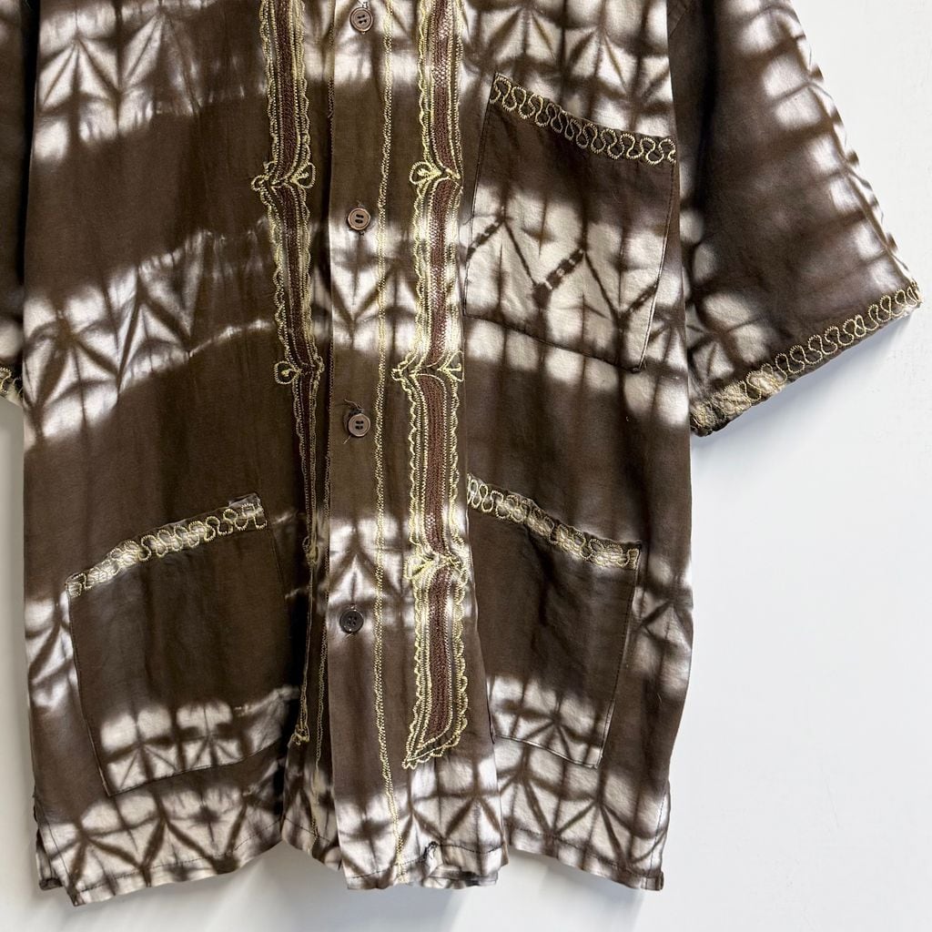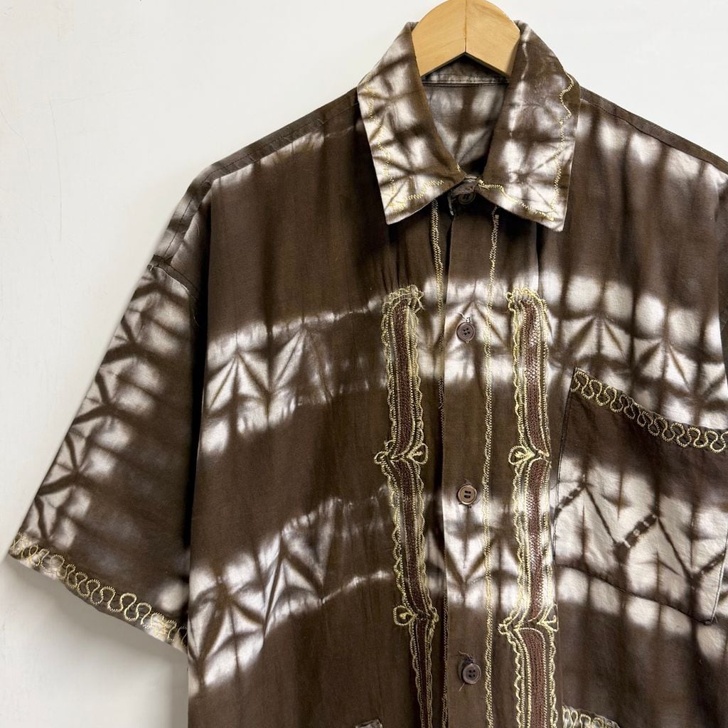 タイダイ柄 刺繍 総柄 柄シャツ 半袖シャツ 茶×白×黄色 No.M766