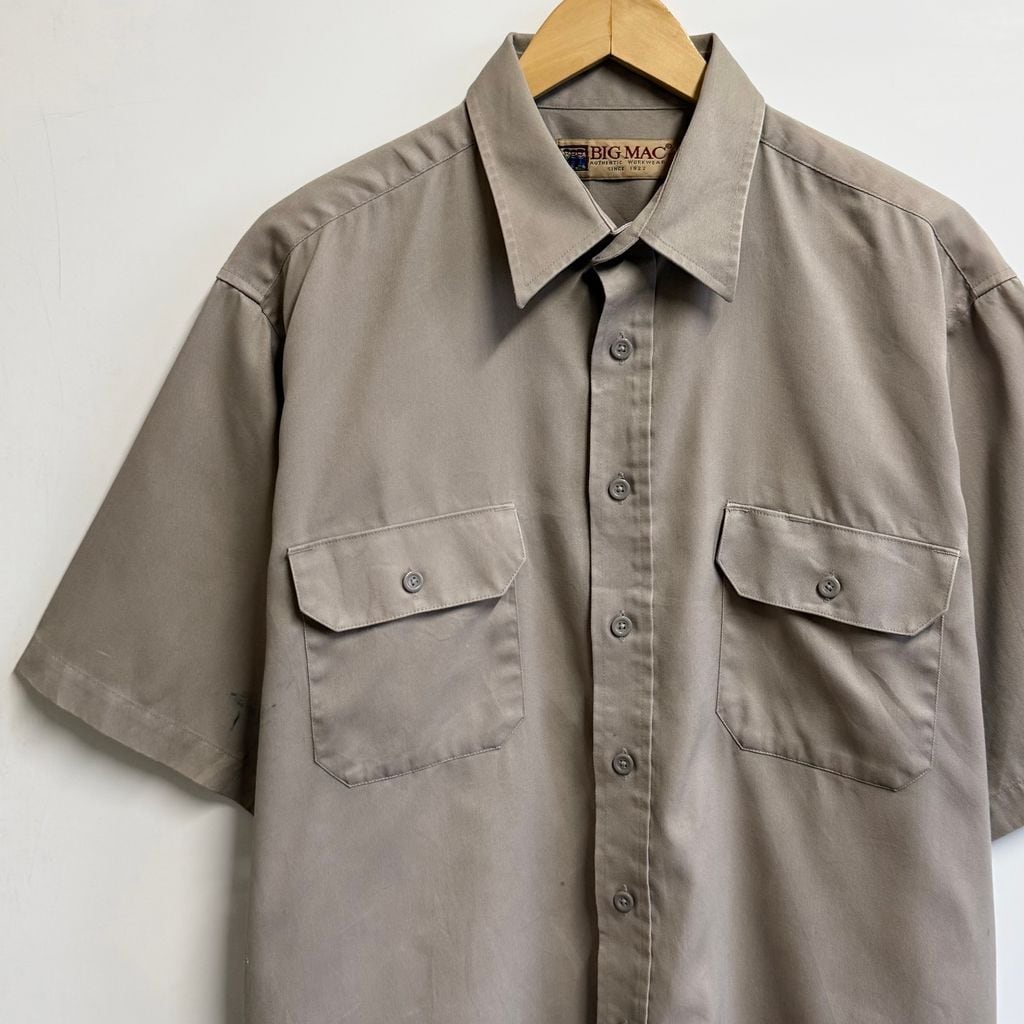 BIG MAC ビッグマック ワークシャツ 無地 ポケット付き 半袖シャツ グレー系 グレージュ LTサイズ No.M767