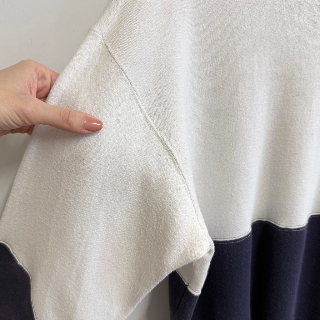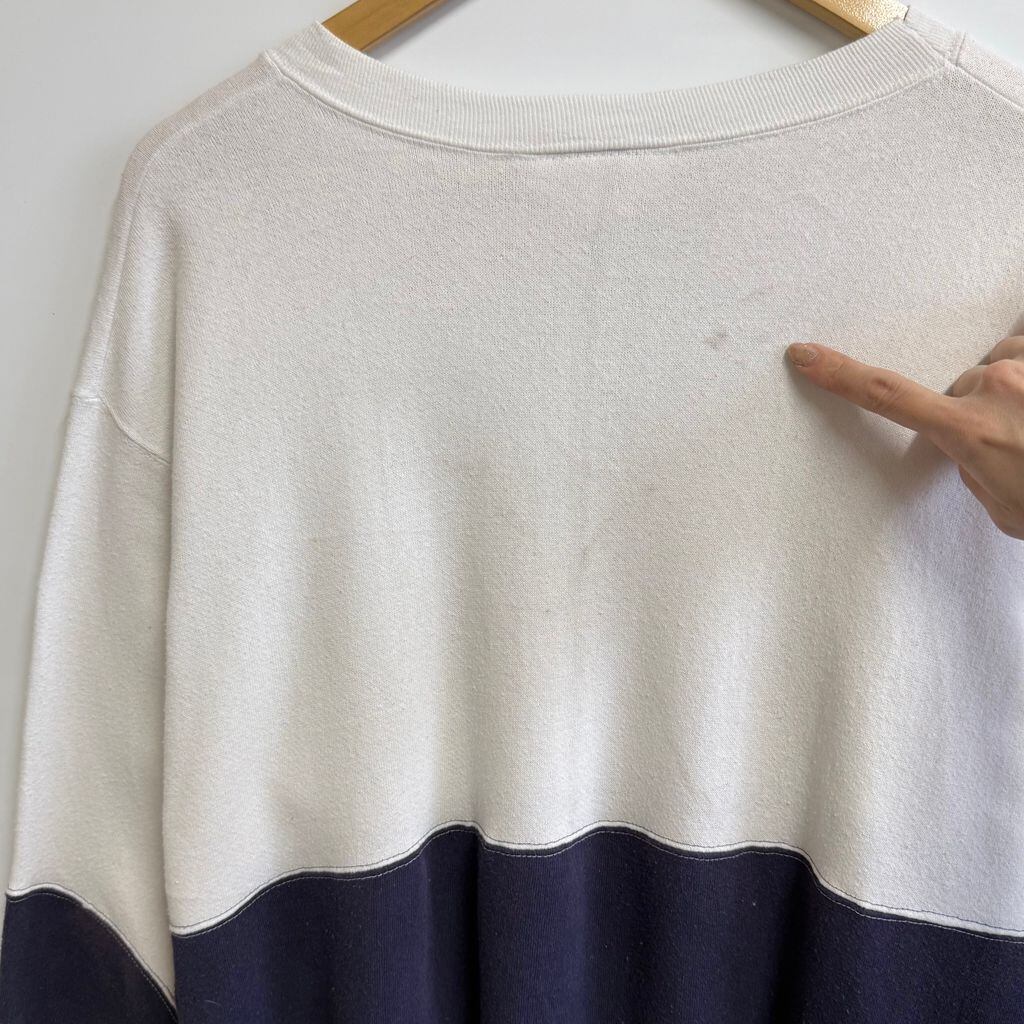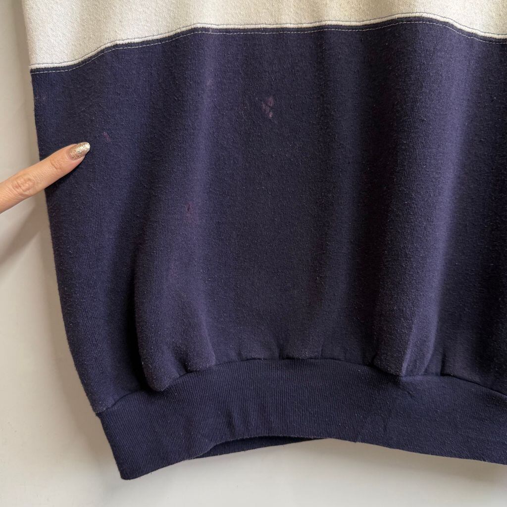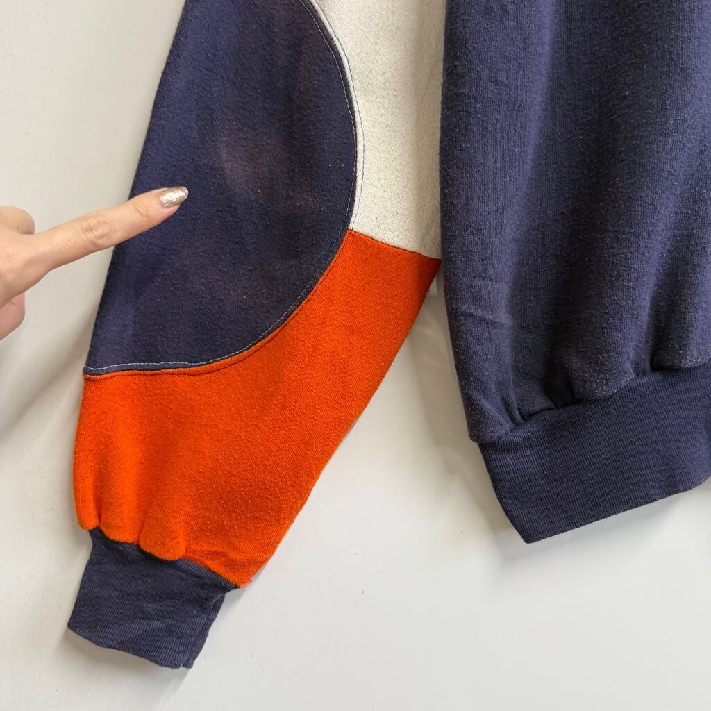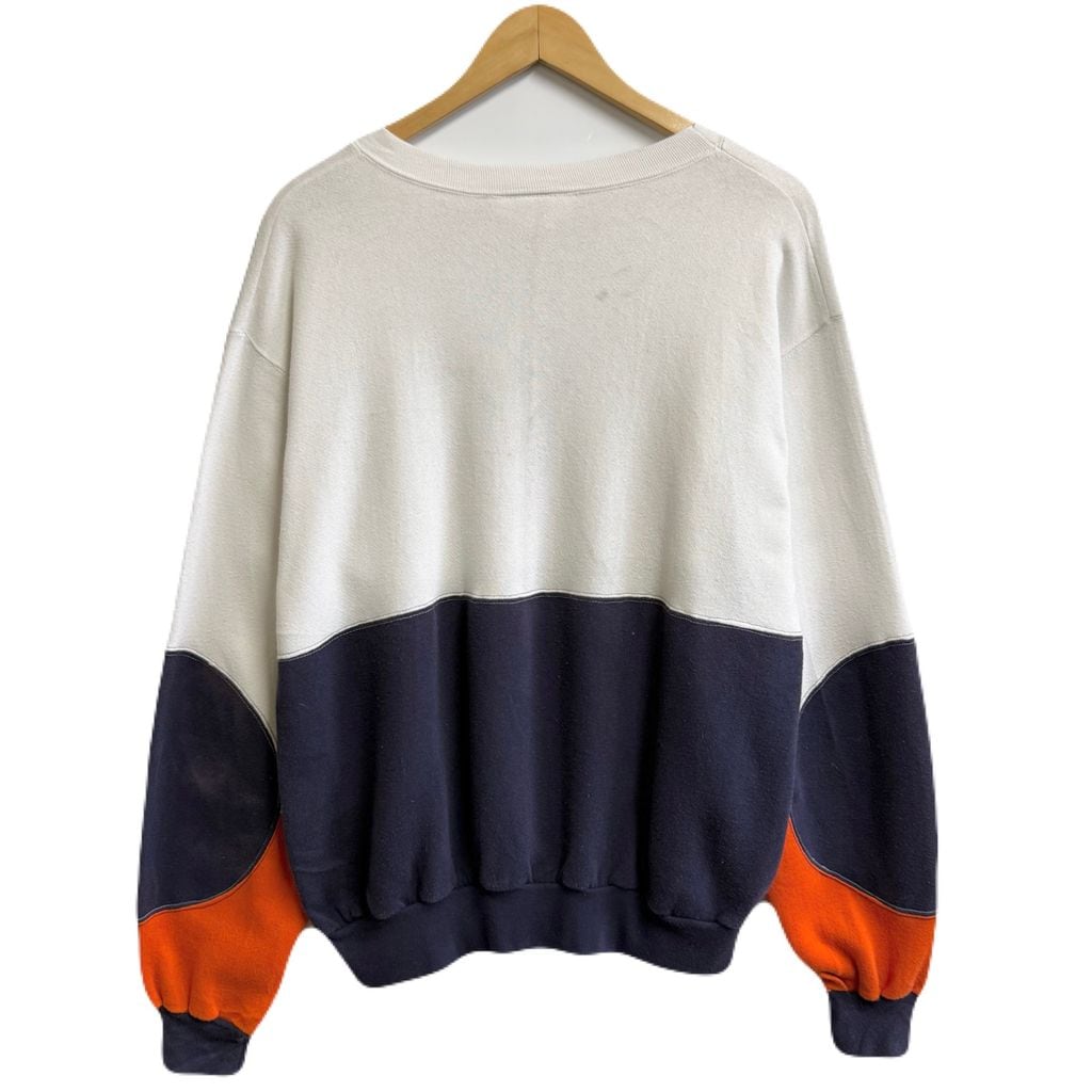 〜80's vintage ビンテージ USA製 HARLCO フロントプリント ILLINOIS イリノイ カレッジロゴ マルチカラー トレーナー スウェット 裏起毛 白×紺×オレンジ XLサイズ No.M787