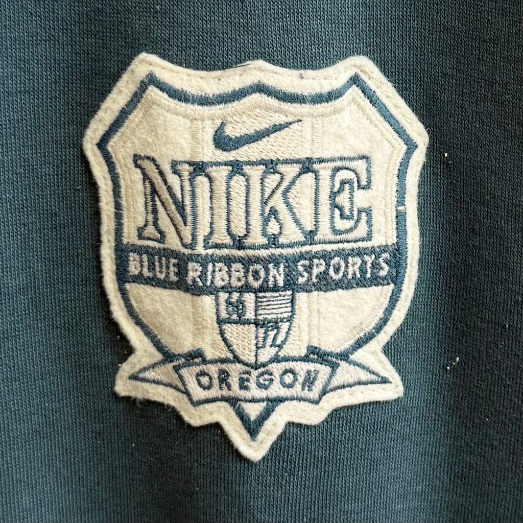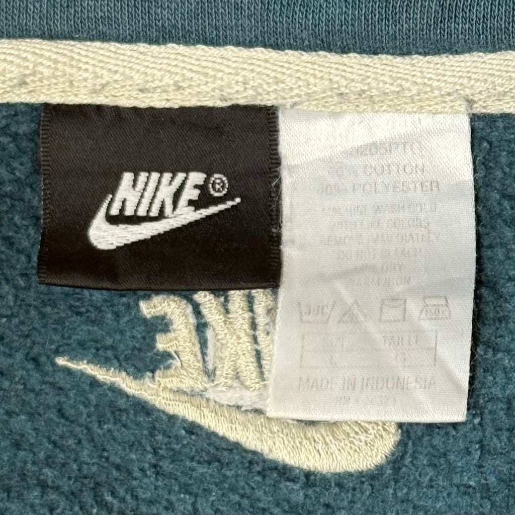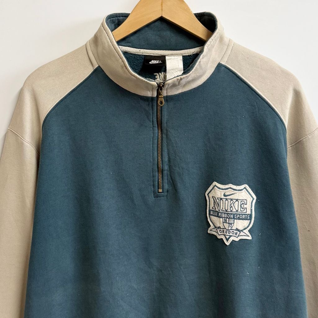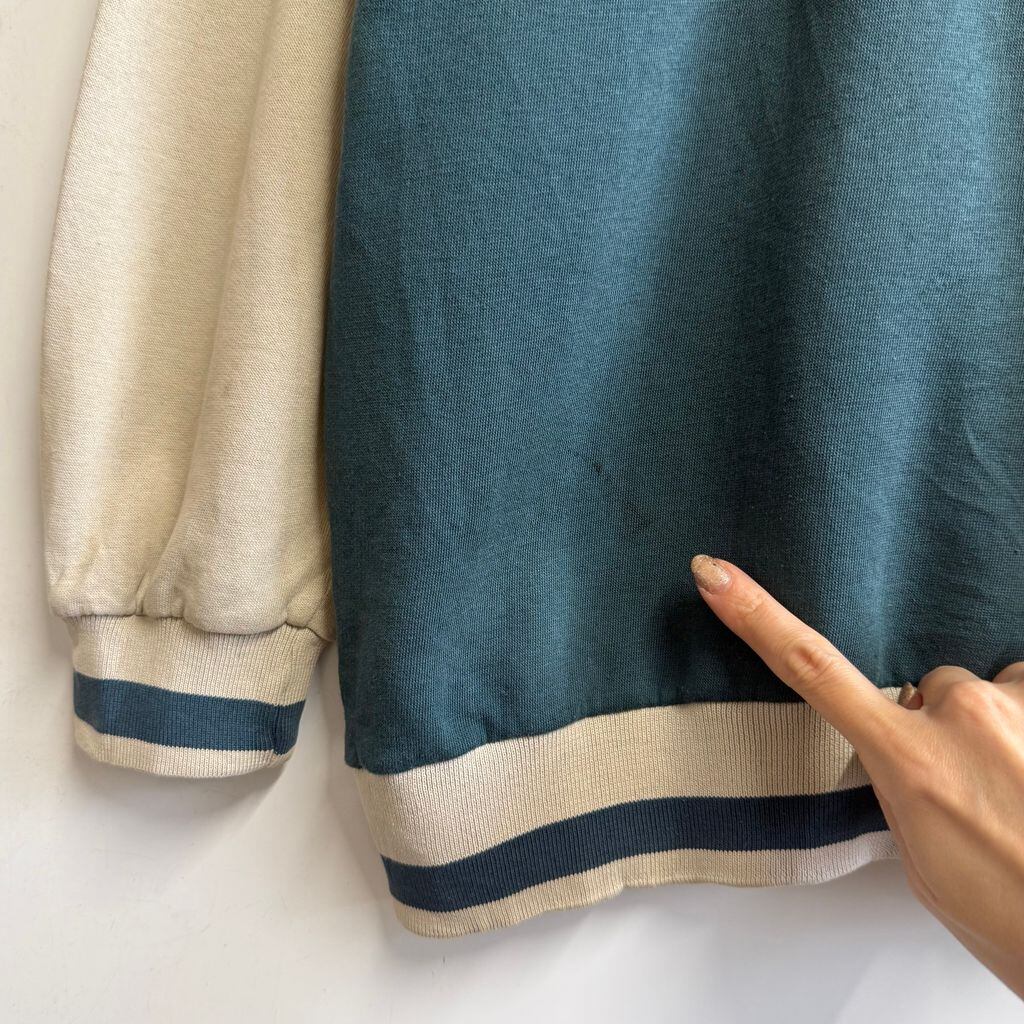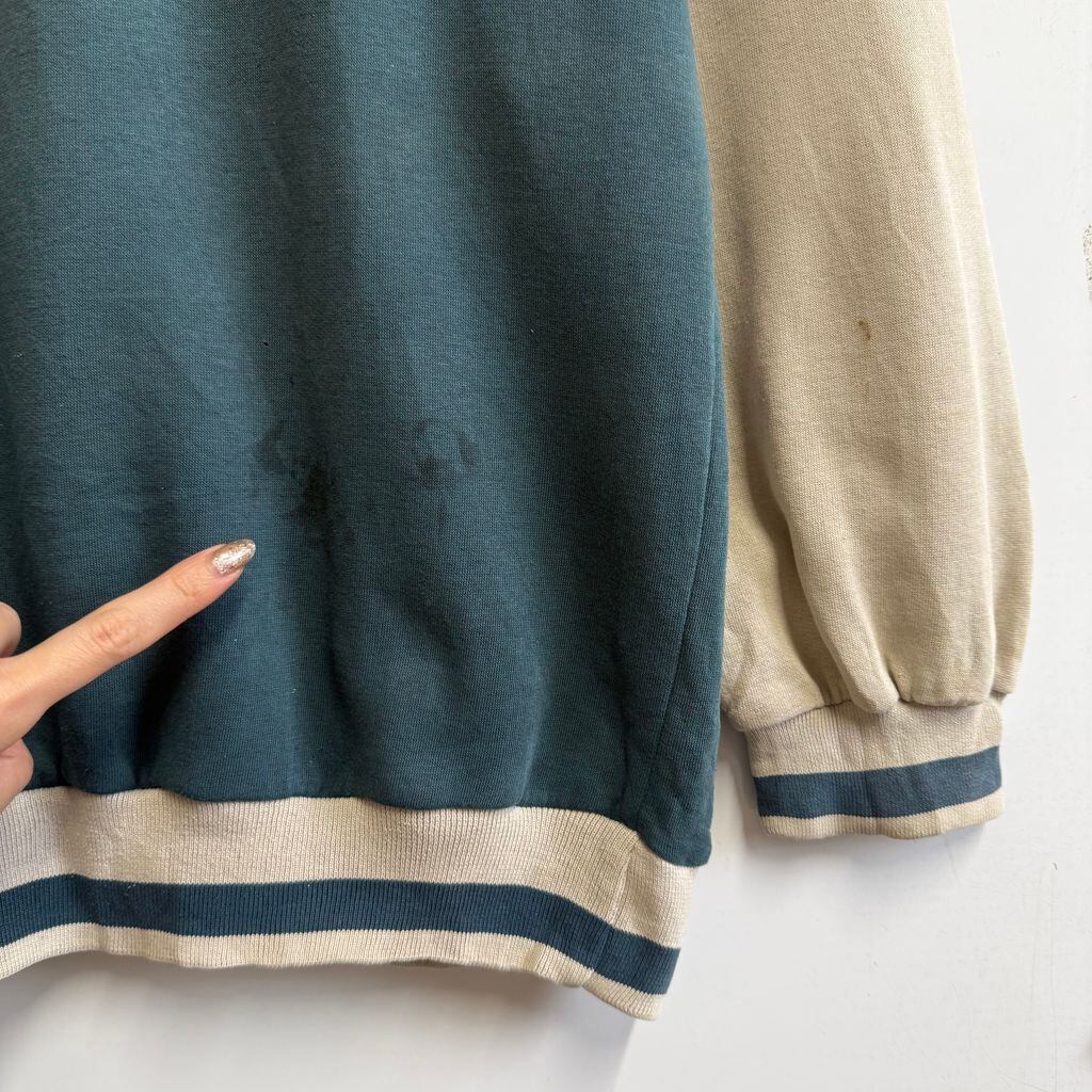 NIKE ナイキ ハーフジップスウェットシャツ プルオーバー ロゴワッペン バイカラー ベージュ×ブルーグリーン Lサイズ No.M789