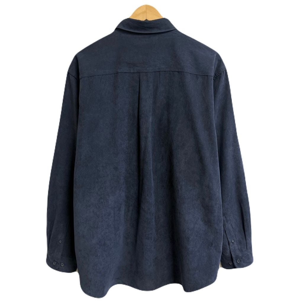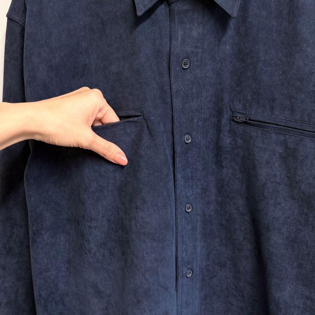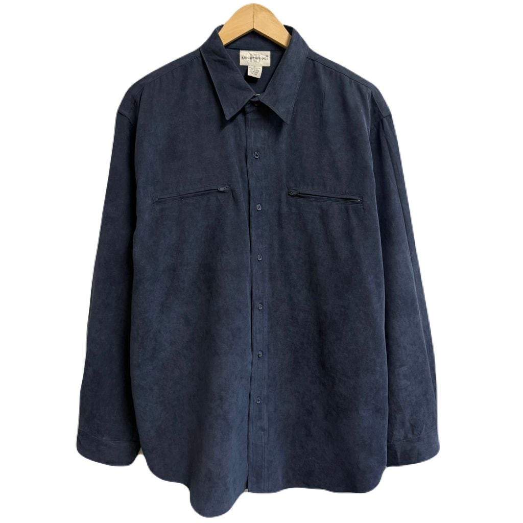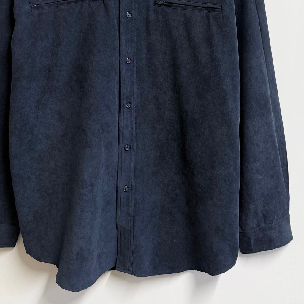 KNIGHTSBRIDGE ポリシャツ スエード調 フェイクスエード 無地 ポケット付き 長袖シャツ 紺 ネイビー Lサイズ No.M794