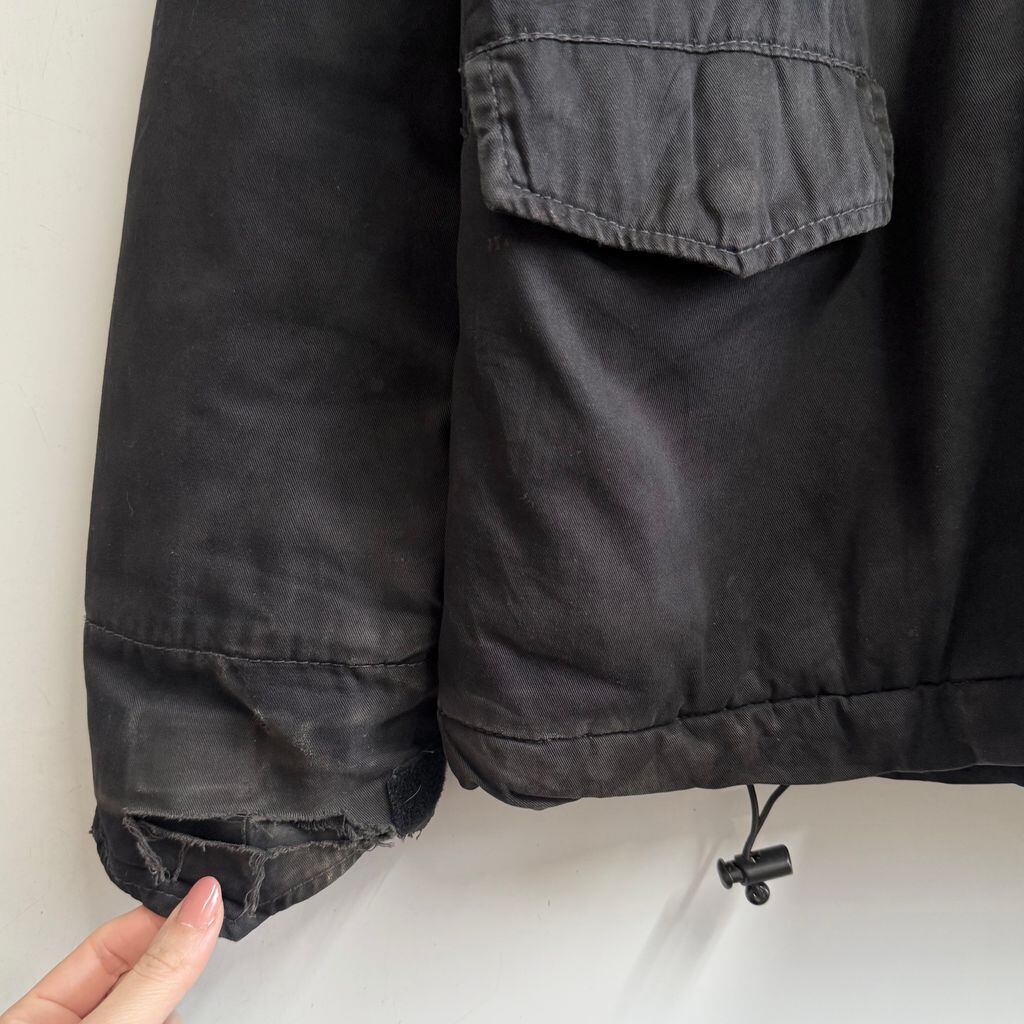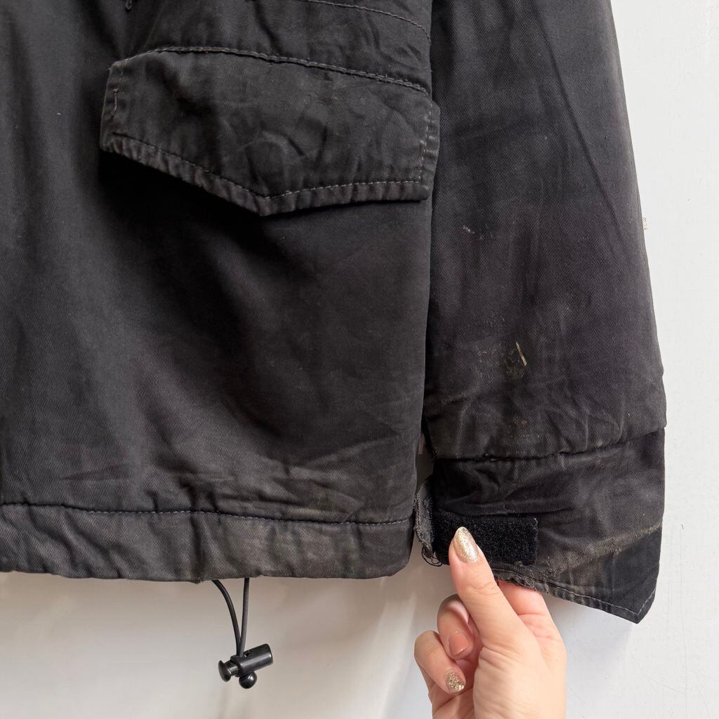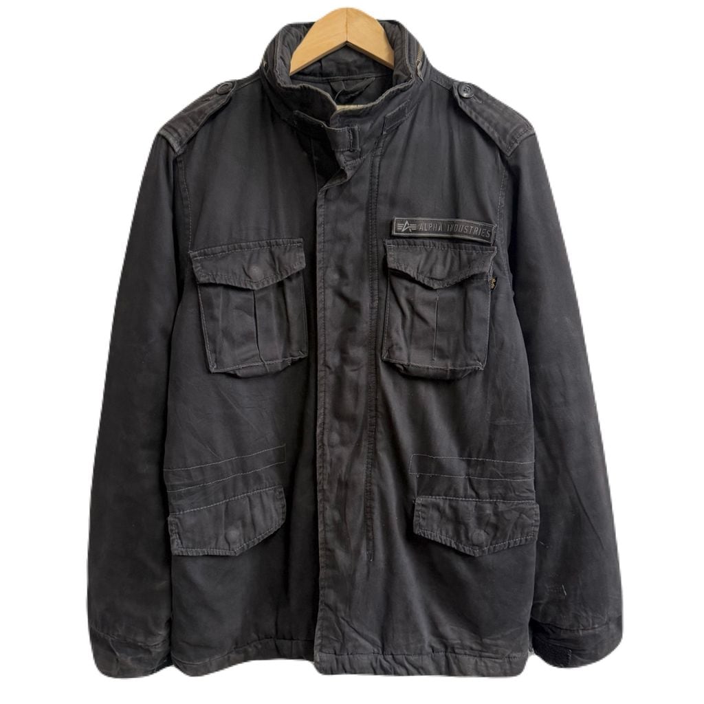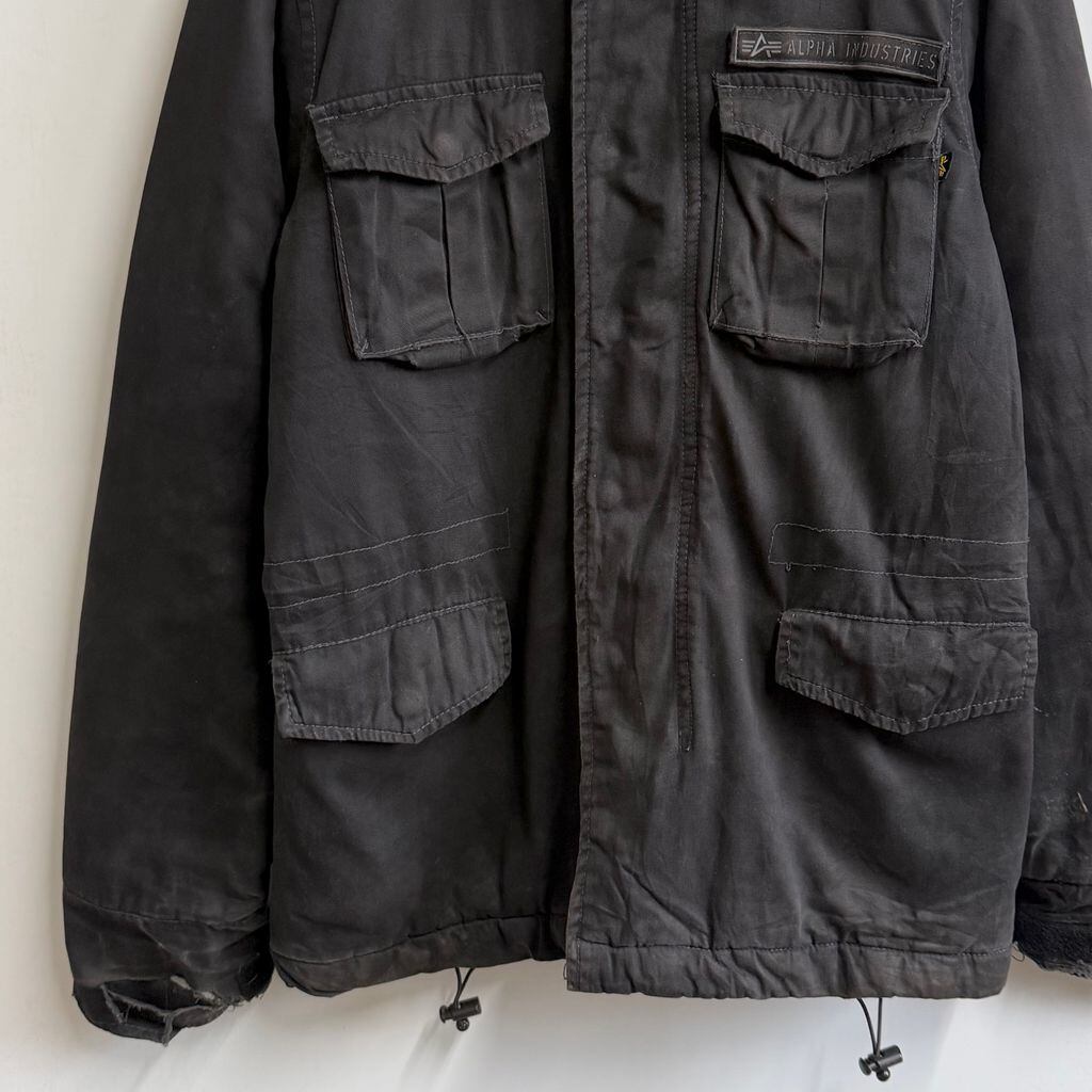 ALPHA INDUSTRIES アルファインダストリーズ ボロ コットンジャケット フィールドジャケット フード付き スナップボタン×フルジップ 黒 ブラック Sサイズ No.M802
