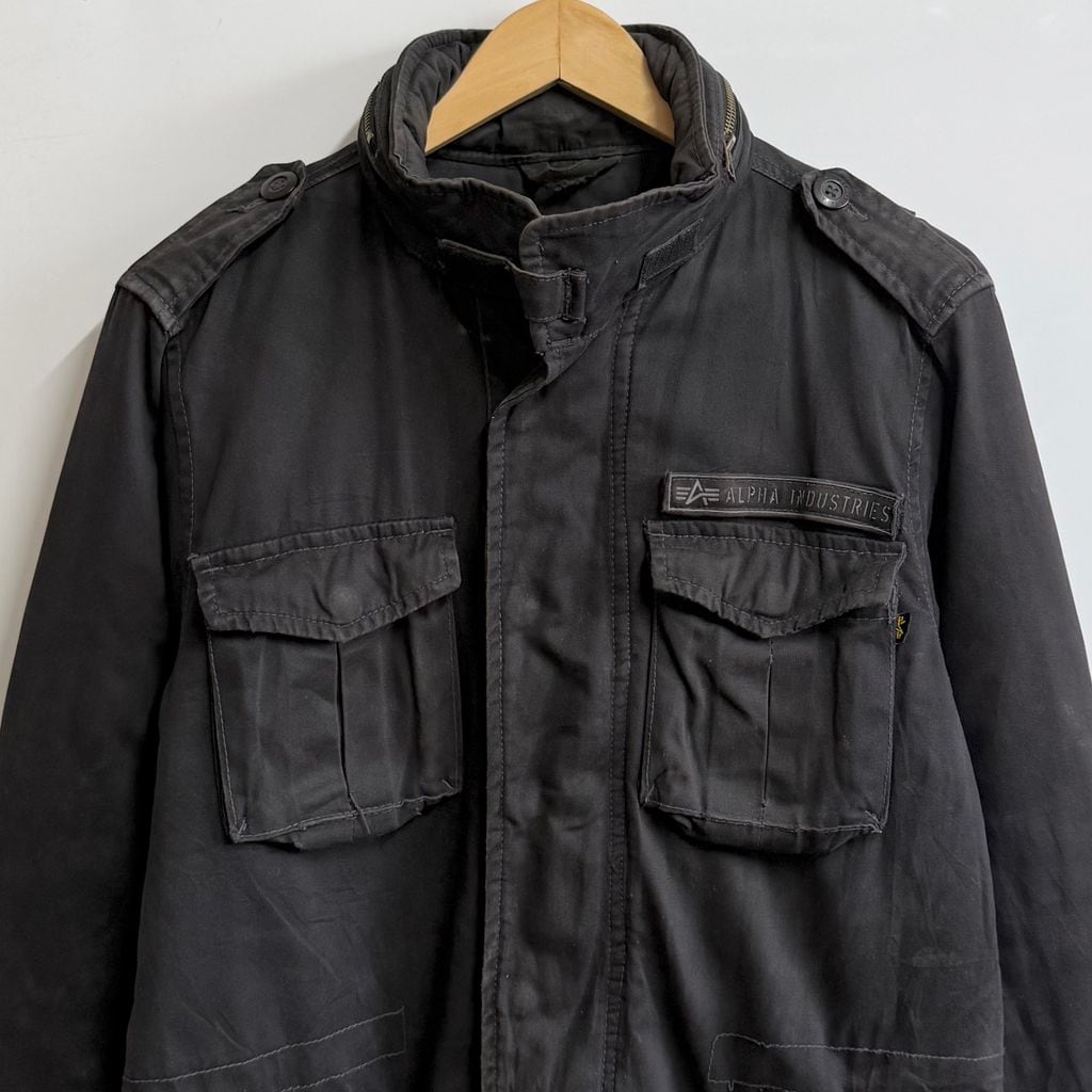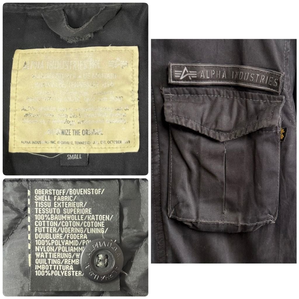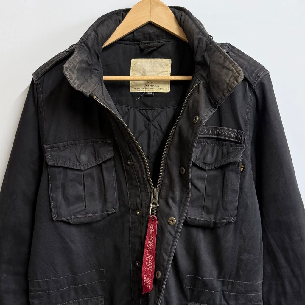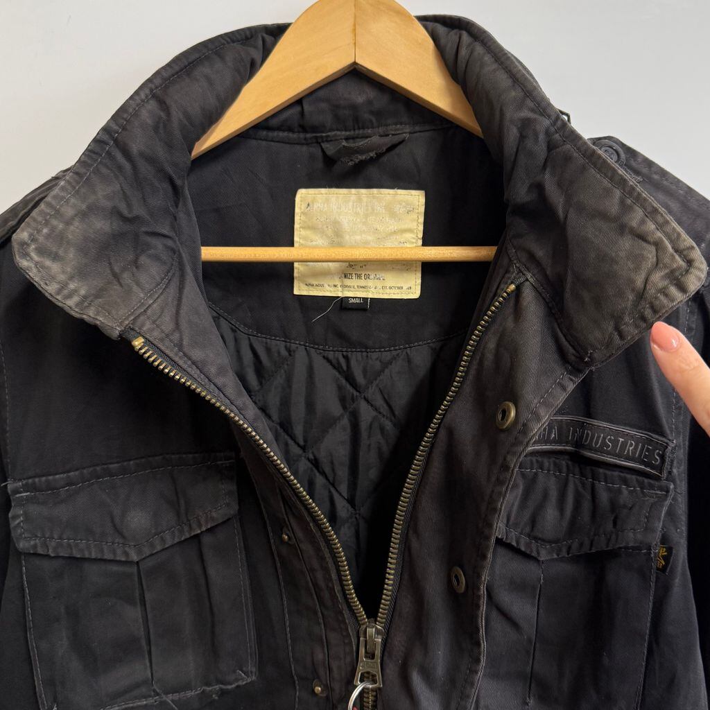 ALPHA INDUSTRIES アルファインダストリーズ ボロ コットンジャケット フィールドジャケット フード付き スナップボタン×フルジップ 黒 ブラック Sサイズ No.M802