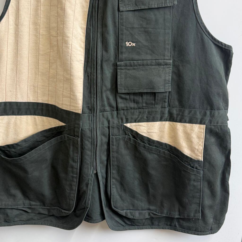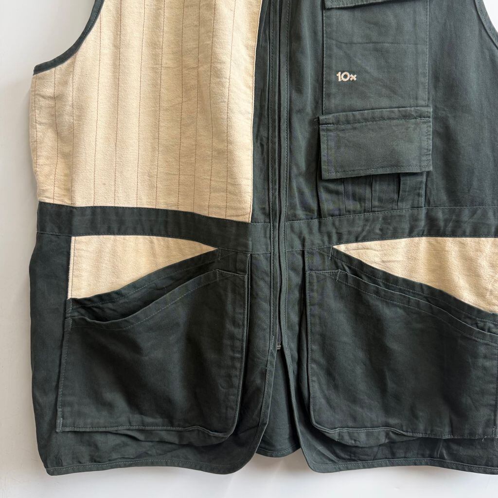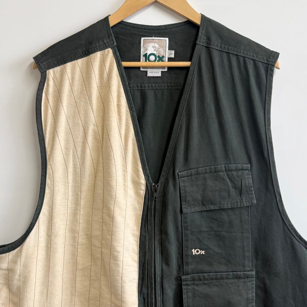 USA製 10x テンエックス ハンティングベスト 切り替えデザイン 無地×ストライプ 深緑 ダークグリーン×アイボリー 2XLサイズ No.M808