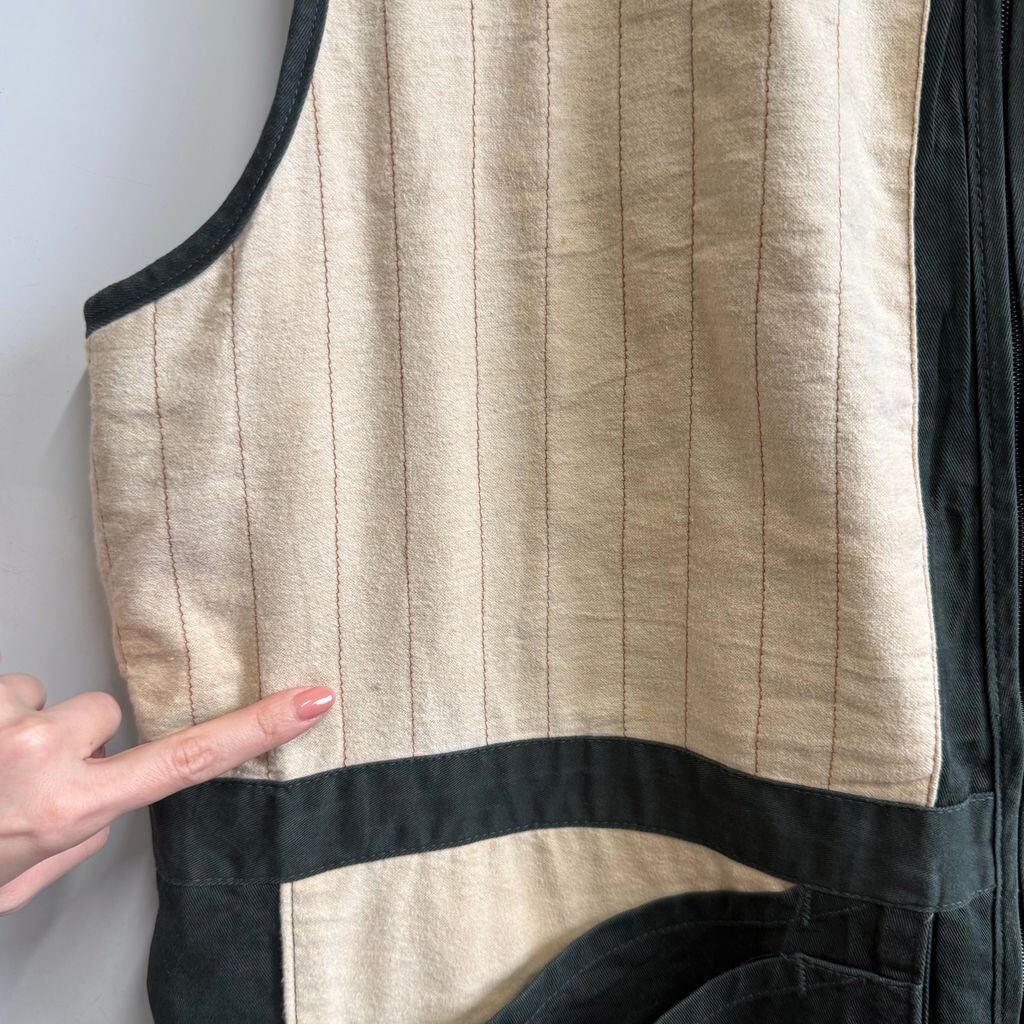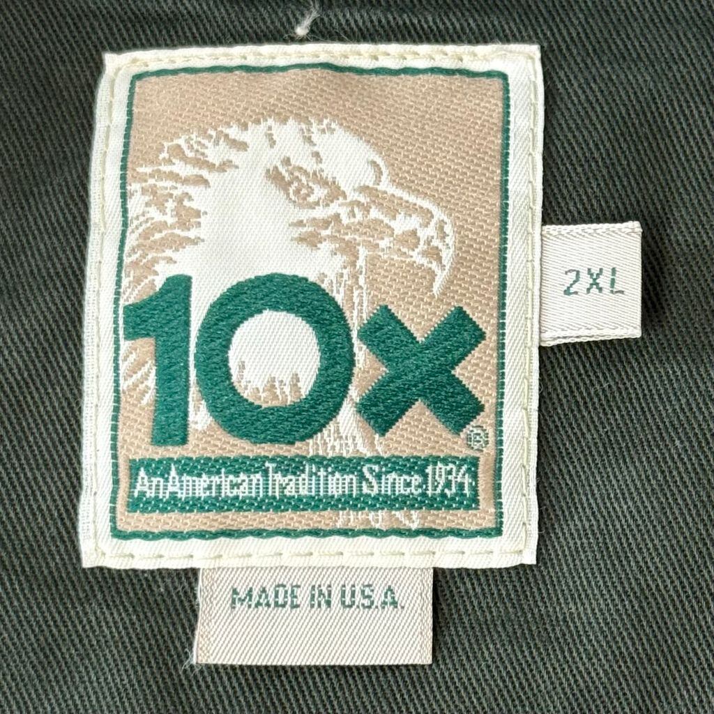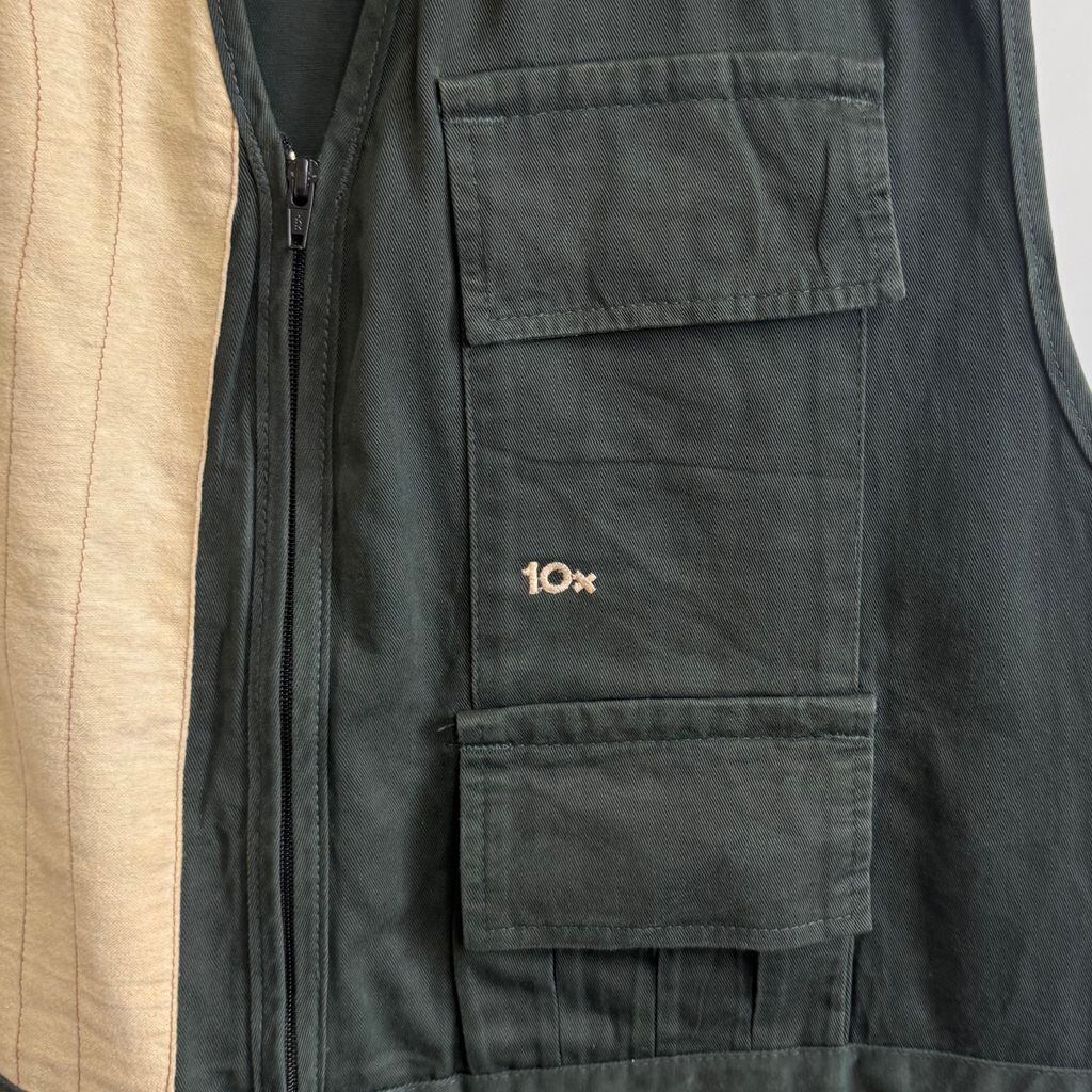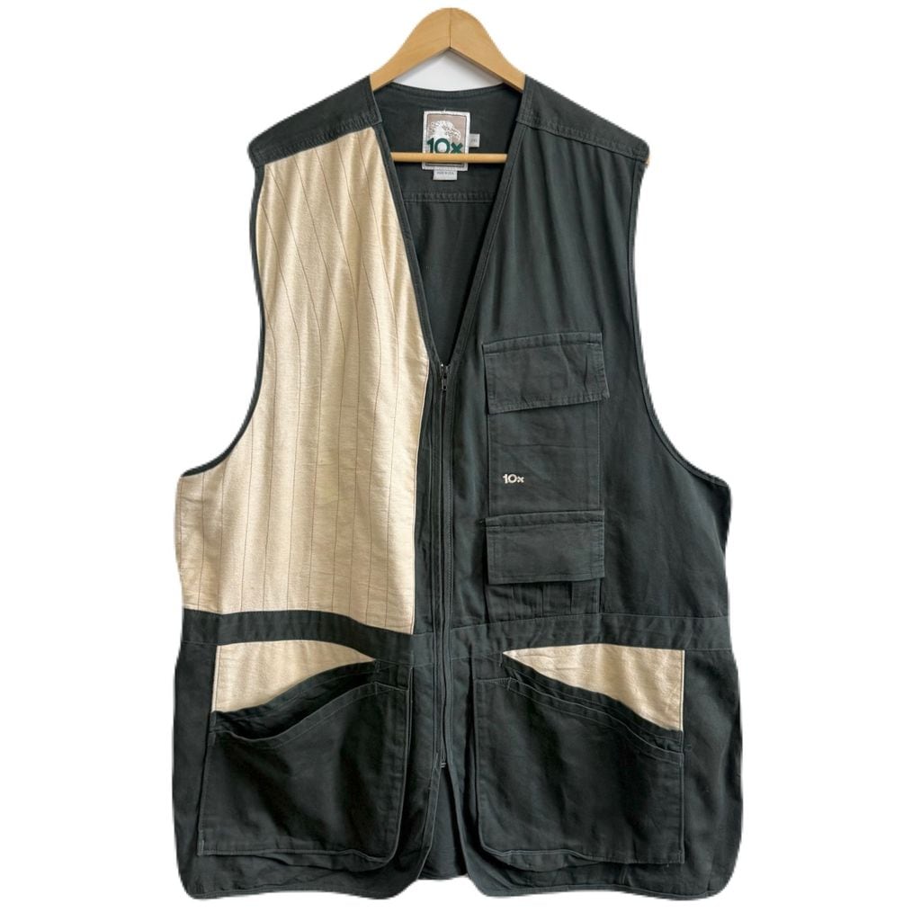 USA製 10x テンエックス ハンティングベスト 切り替えデザイン 無地×ストライプ 深緑 ダークグリーン×アイボリー 2XLサイズ No.M808