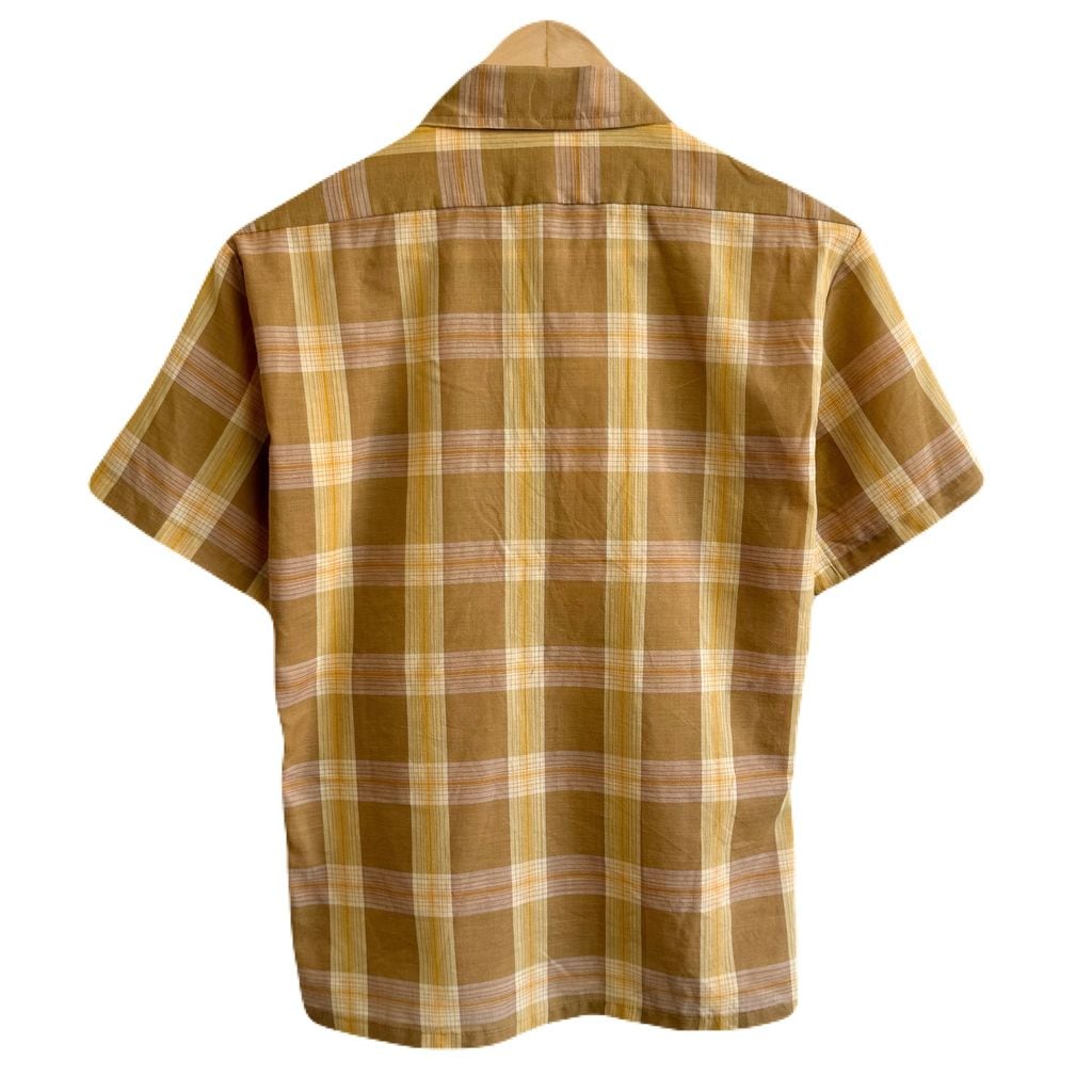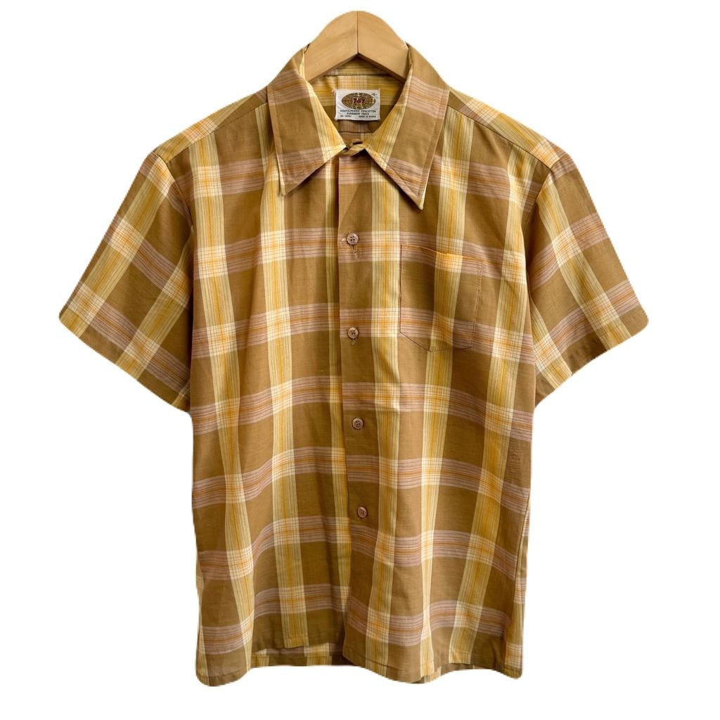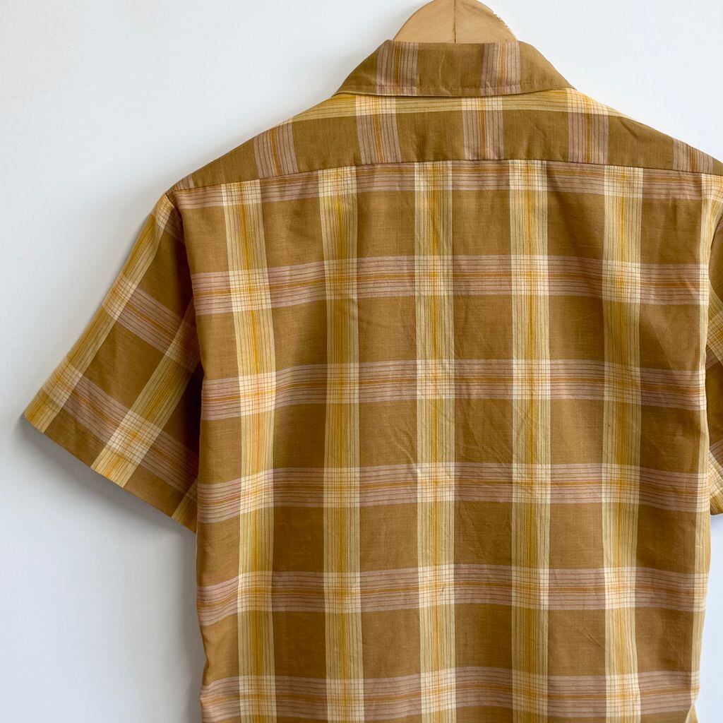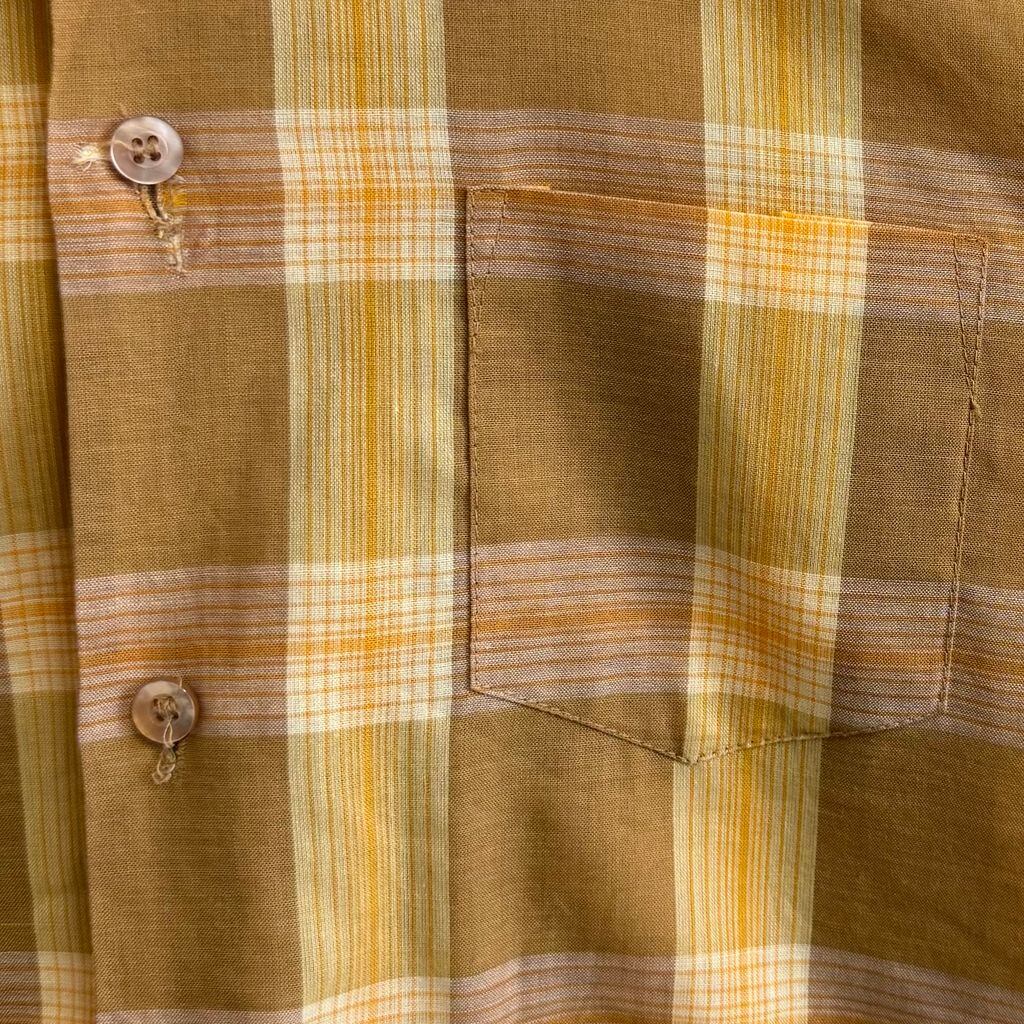 60's〜 vintage ビンテージ チェック柄 ポケット付き 半袖シャツ 茶色×黄色×オレンジ サイズ15 No.M836