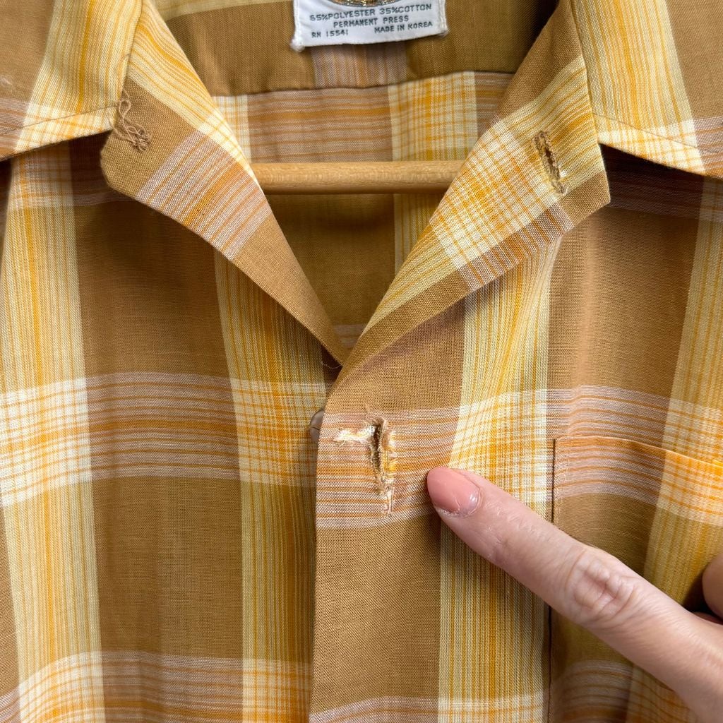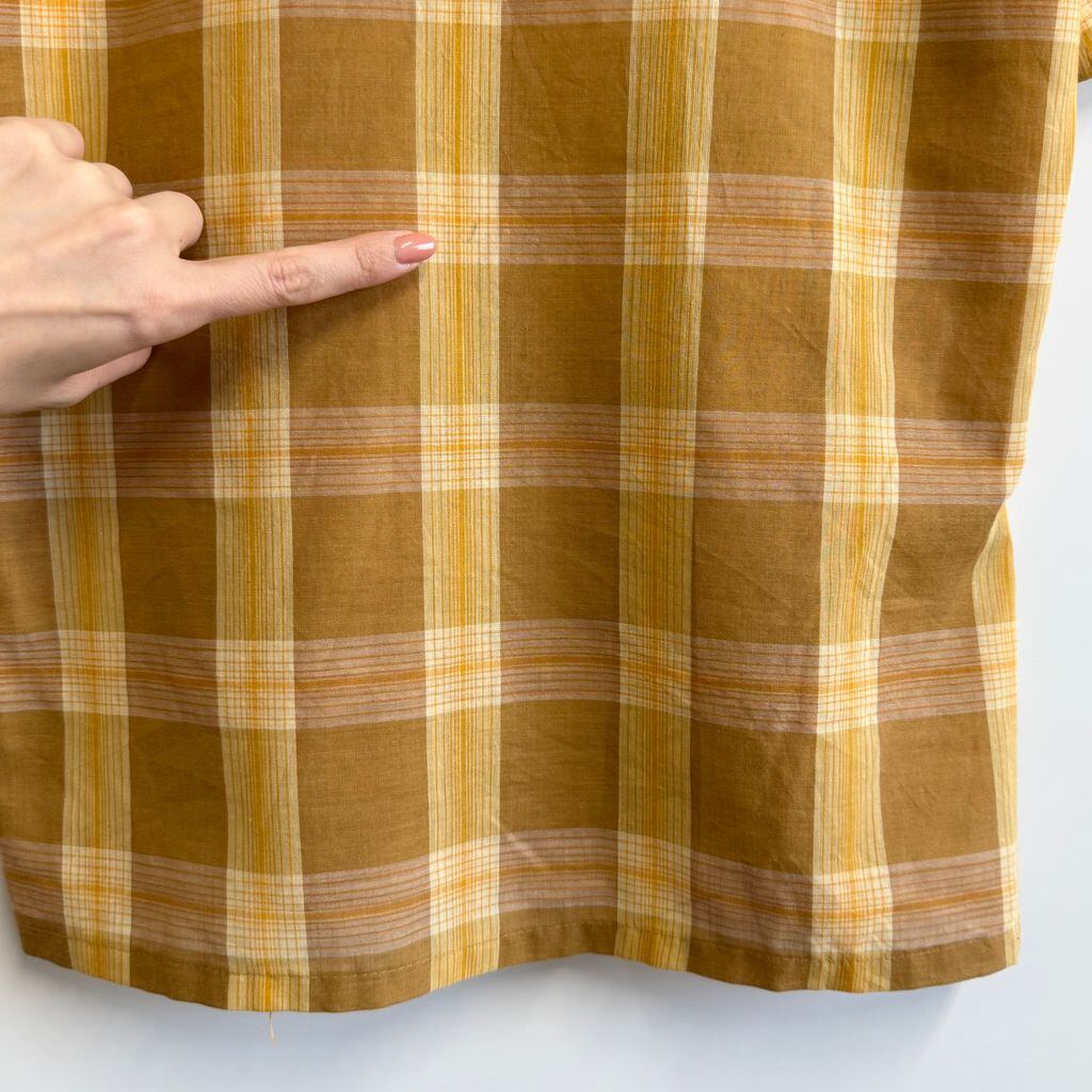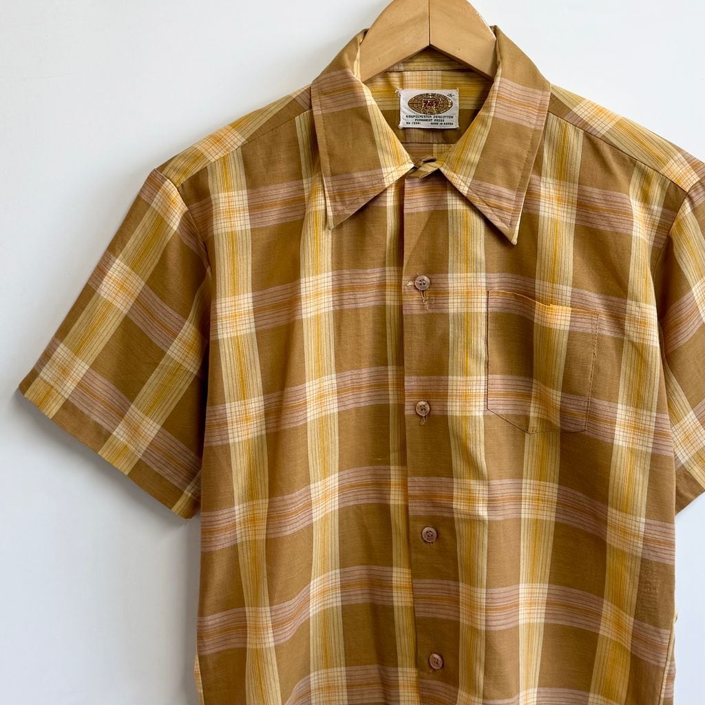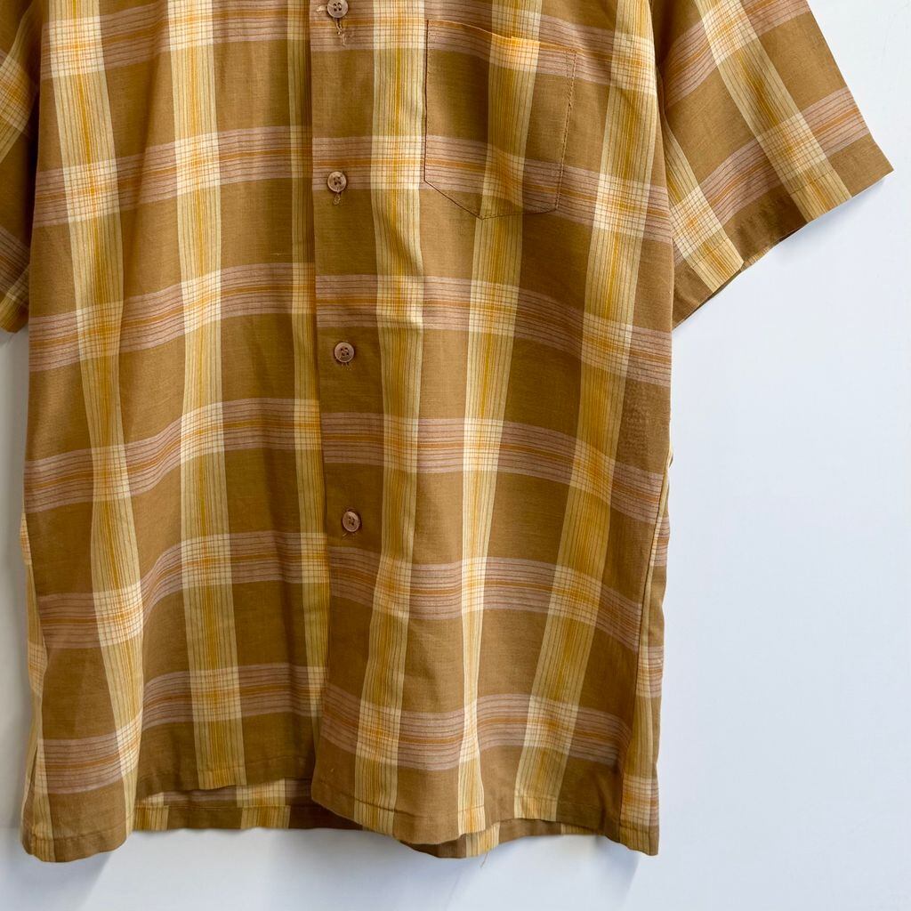 60's〜 vintage ビンテージ チェック柄 ポケット付き 半袖シャツ 茶色×黄色×オレンジ サイズ15 No.M836