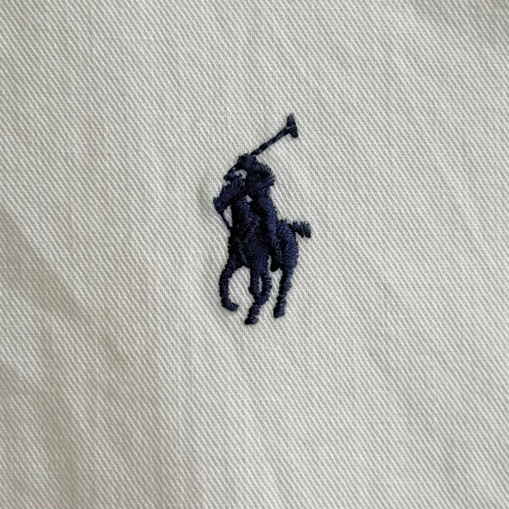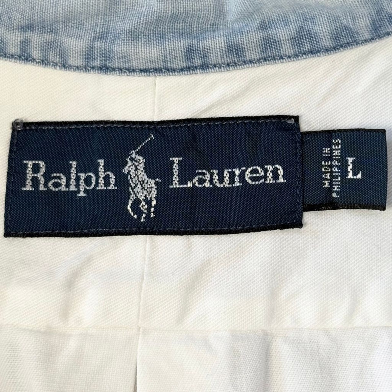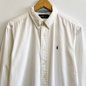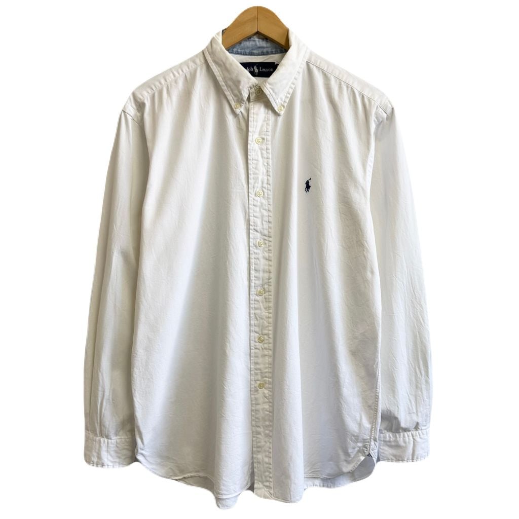 〜90's Ralph Lauren ラルフローレン ボタンダウンシャツ コットンシャツ 長袖シャツ ワンポイントロゴ 刺繍 白 ホワイト Lサイズ No.M837
