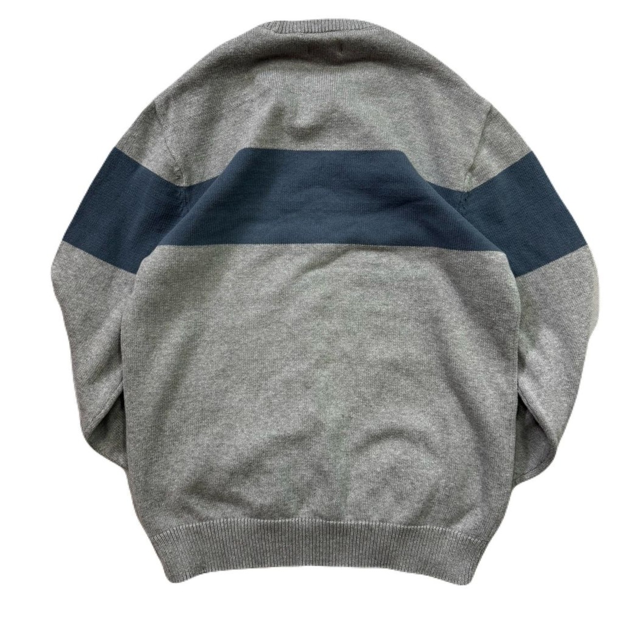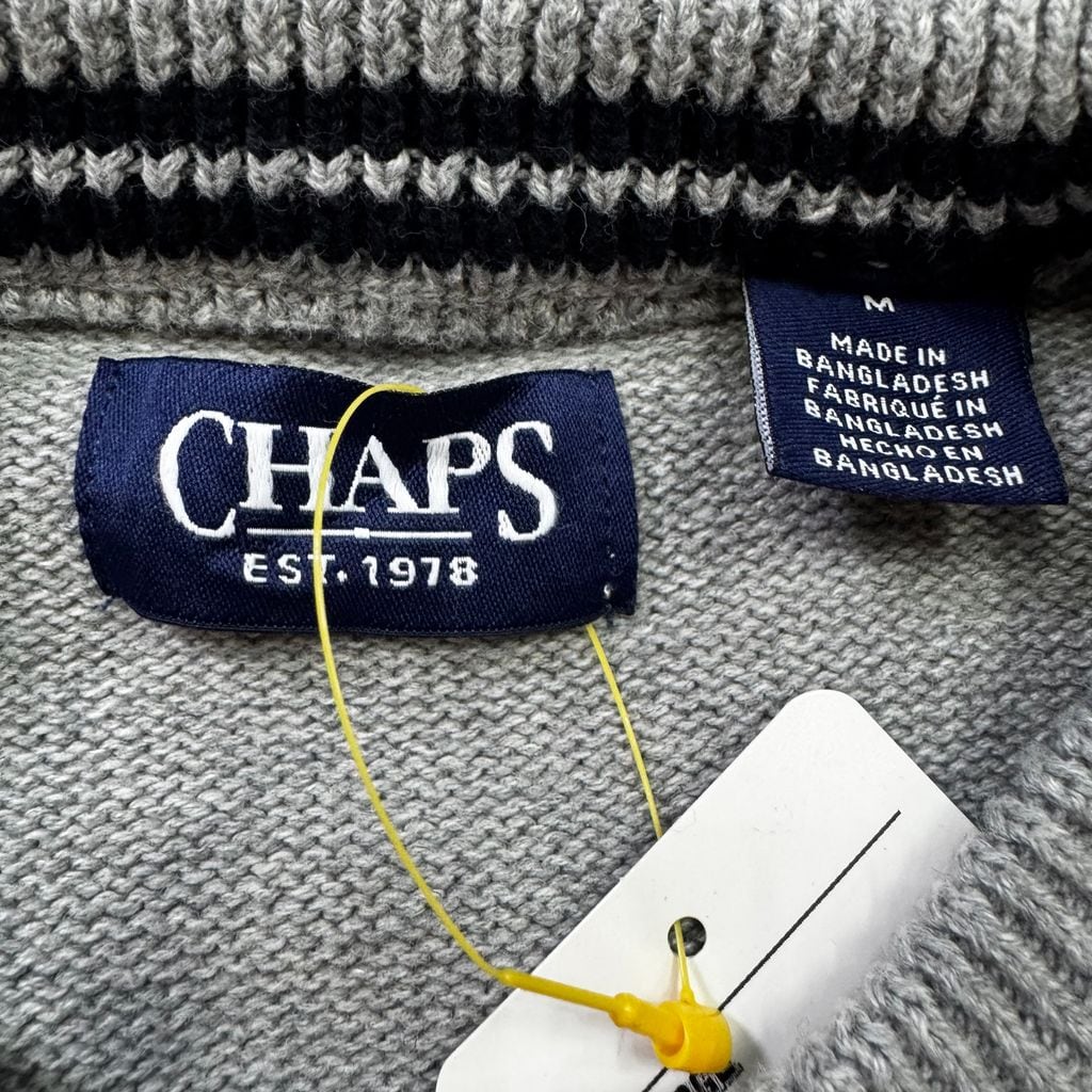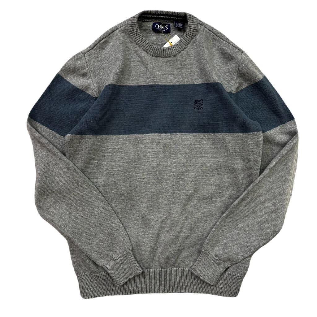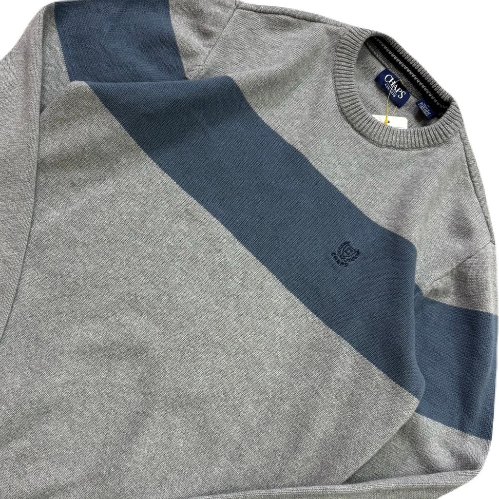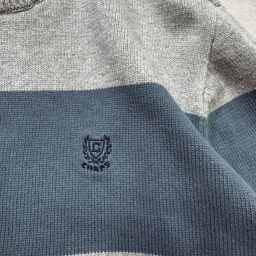 CHAPS チャップス ワンポイント ロゴ刺繍 コットンニット グレー×ブルー Mサイズ No.EA257
