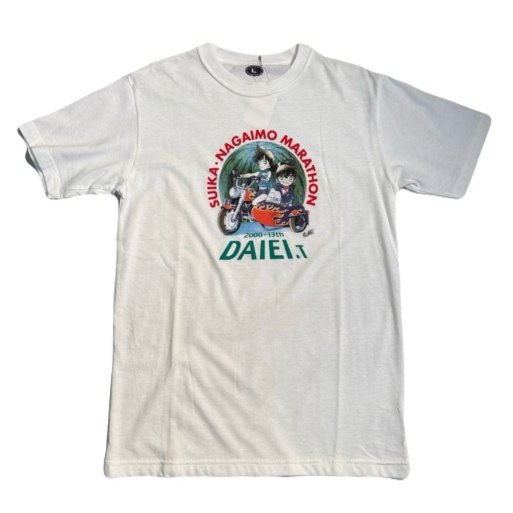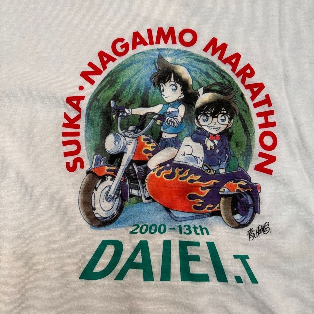 00s コラボ アニメTEE "名探偵コナン SUIKA NAGAIMO MARATHON DAIEI.T" 江戸川コナン 毛利蘭 SIZE L No.T235