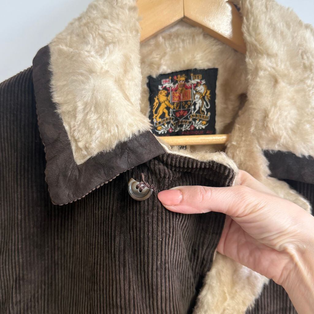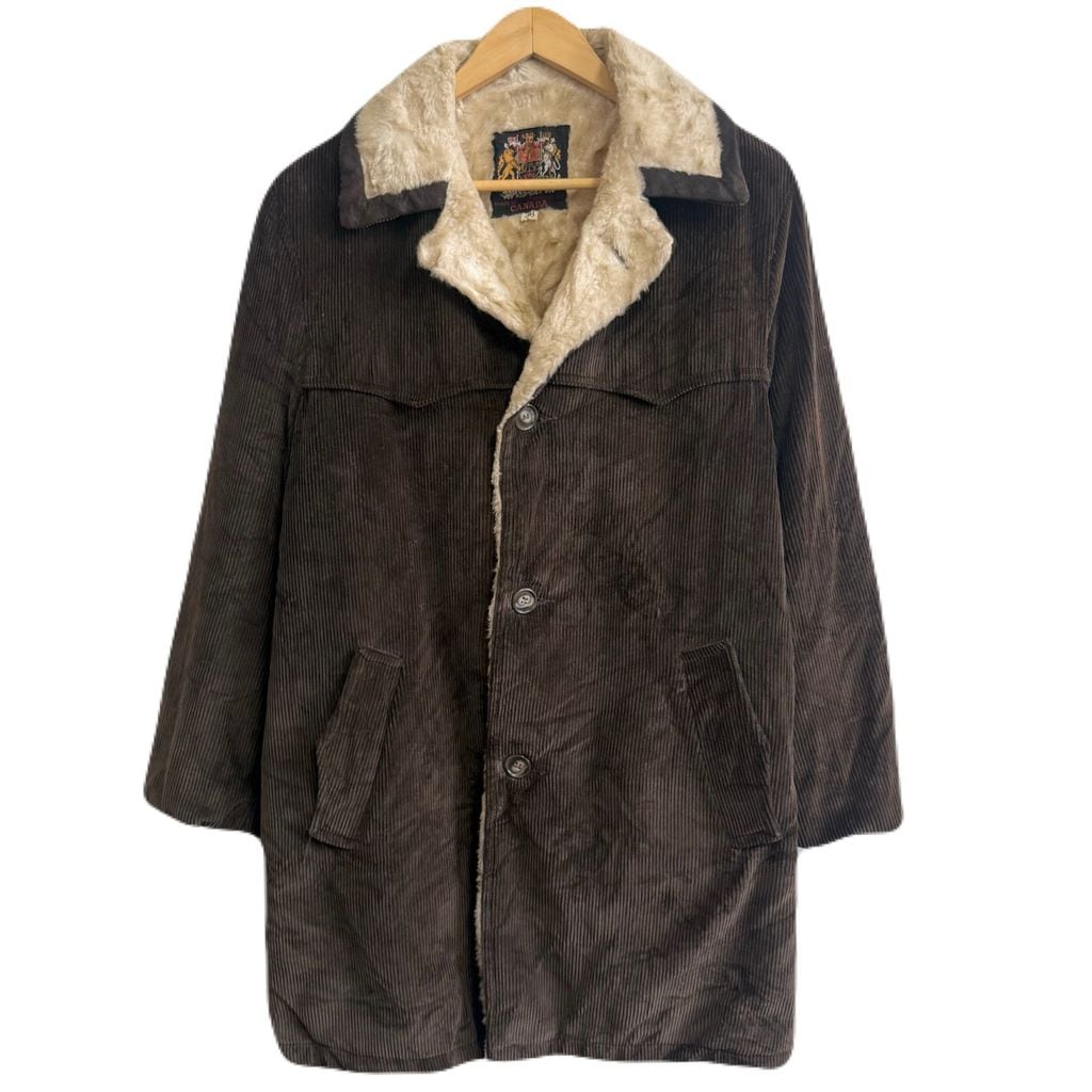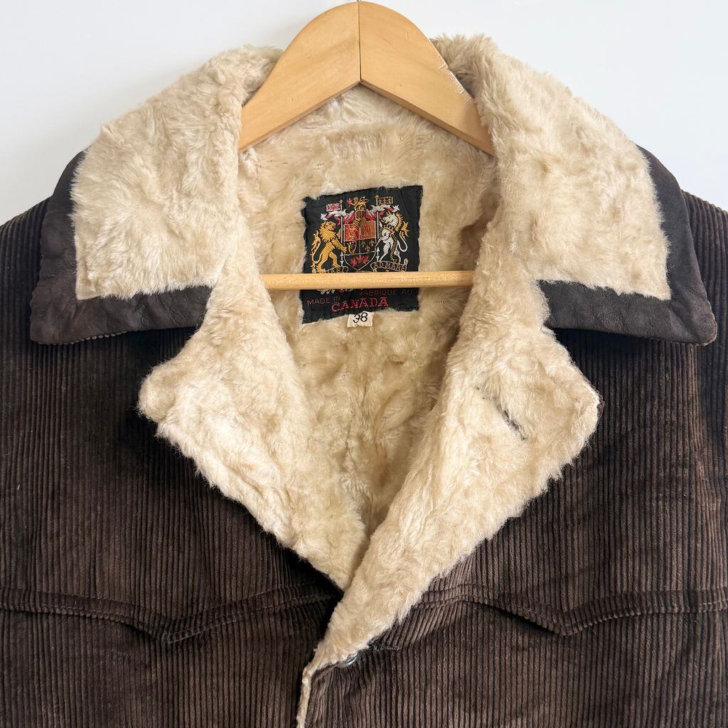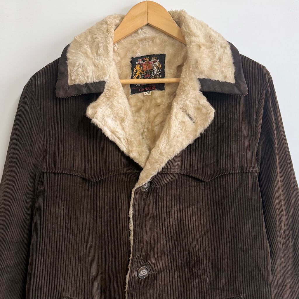 カナダ製 コーデュロイボアランチコート カーコート こげ茶 ダークブラウン サイズ38 No.M851