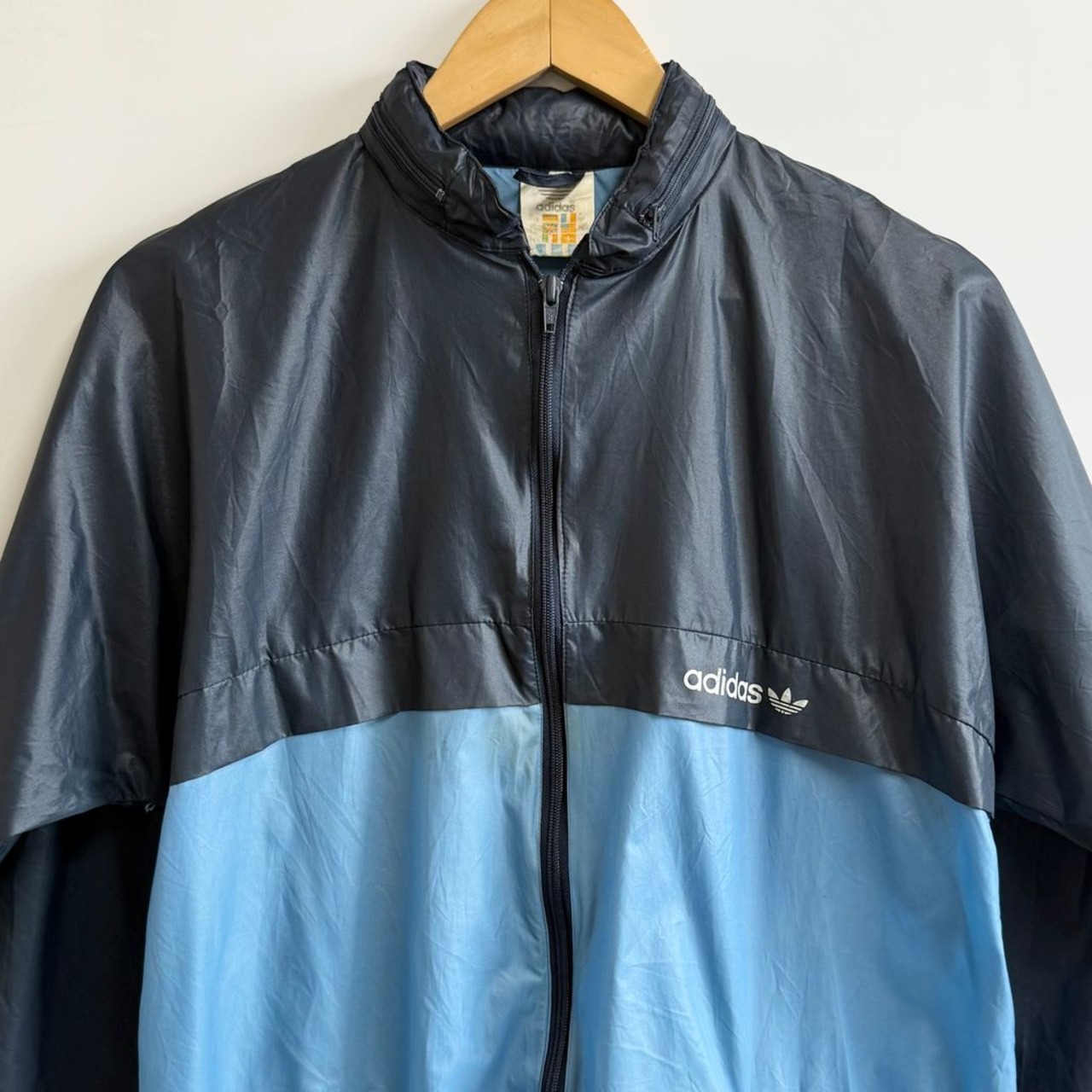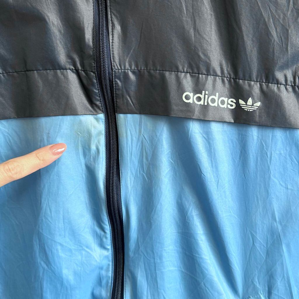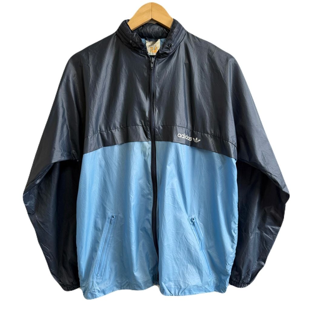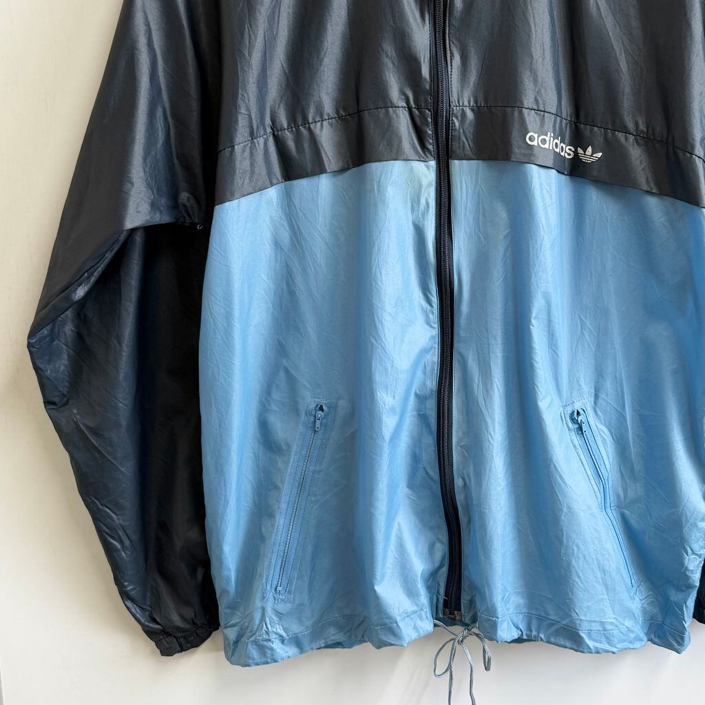 80's〜 adidas アディダス ナイロンジャケット フード付き バイカラー 紺×水色 No.M856