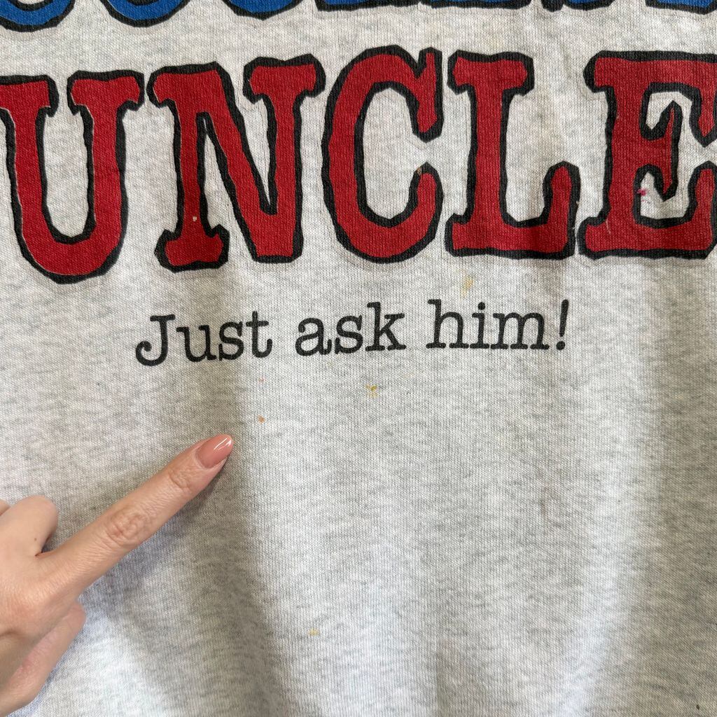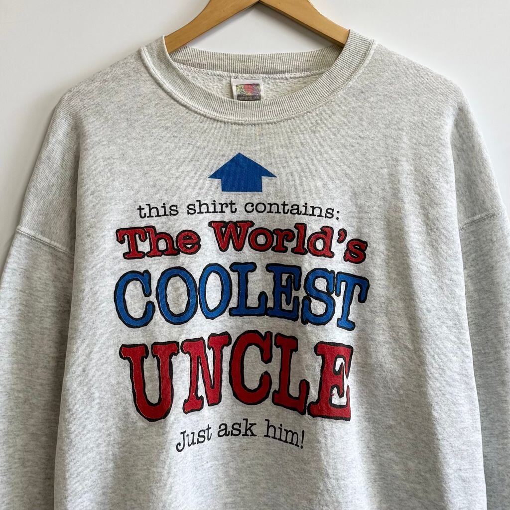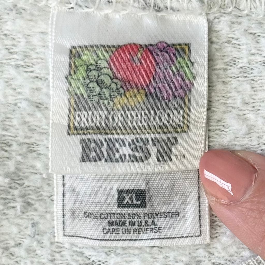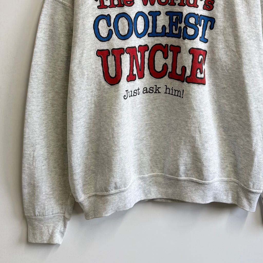 90's vintage ビンテージ USA製 FRUIT OF THE LOOM フルーツオブザルーム フロントプリント メッセージプリント トレーナー スウェット ライトグレー XLサイズ No.M862