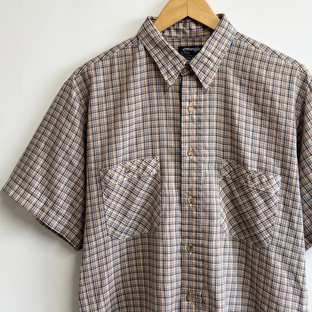 USA製 Wrangler ラングラー チェック柄 ポケット付き 半袖シャツ ベージュ×多色 No.M866