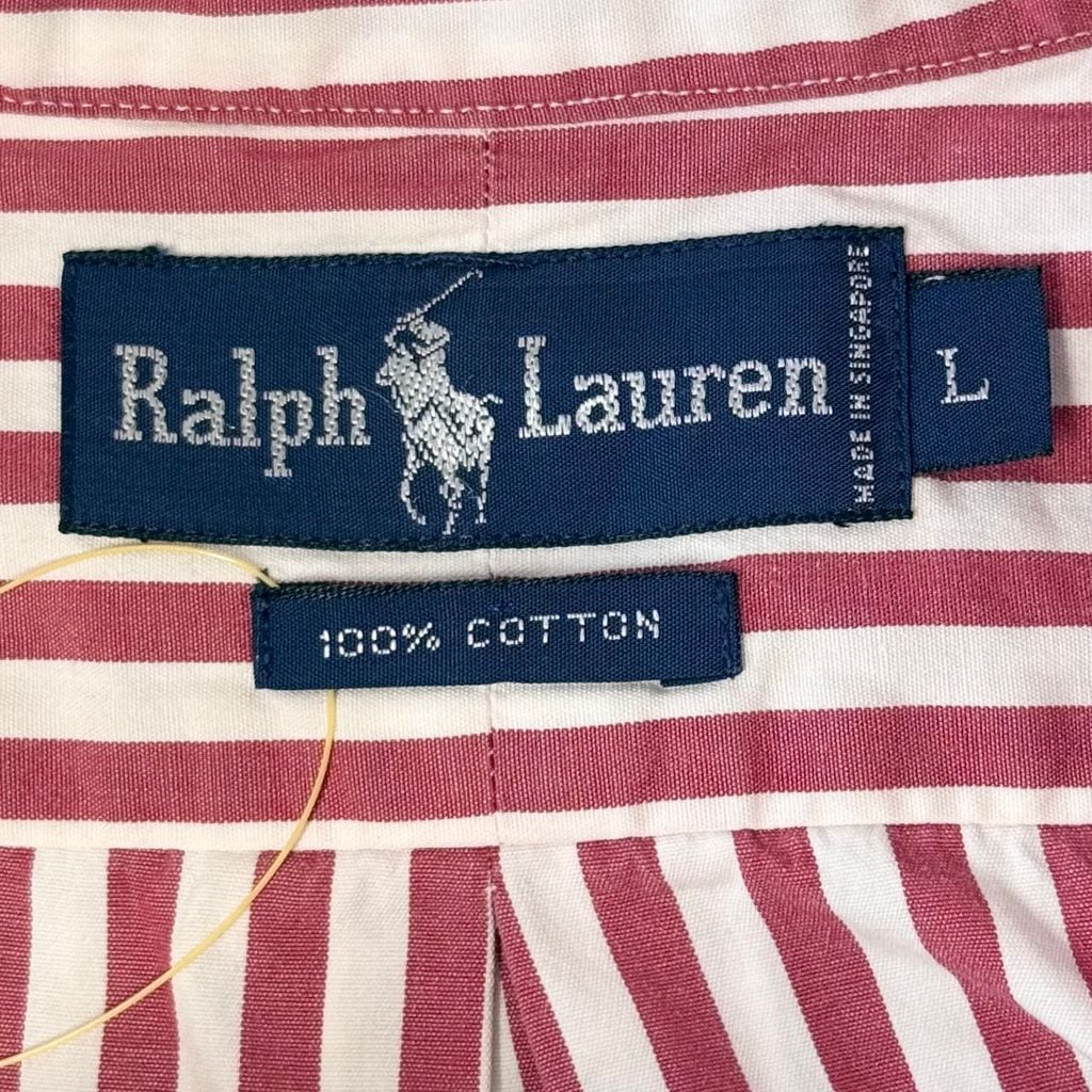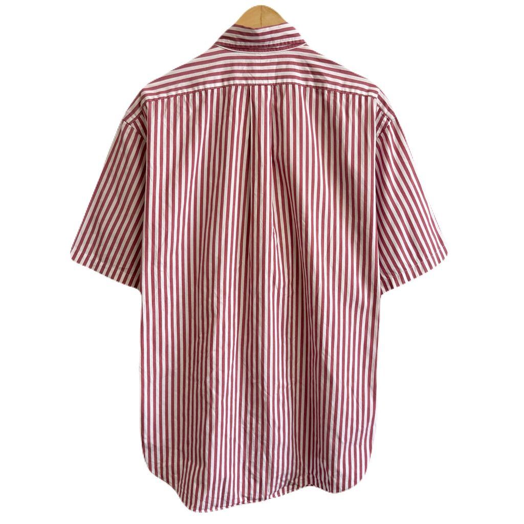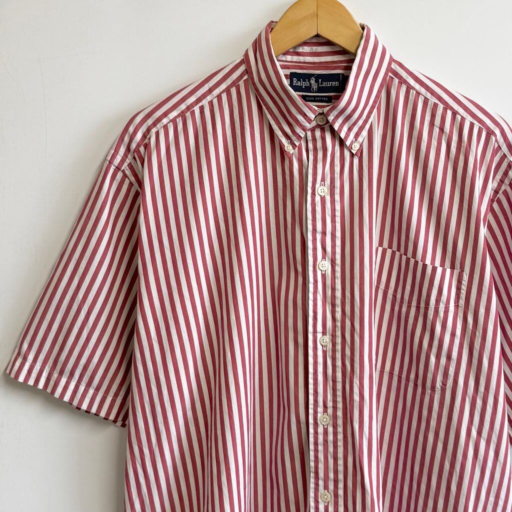 Ralph Lauren ラルフローレン ボタンダウンシャツ コットンシャツ ストライプ ポケット付き 半袖シャツ ワンポイントロゴ 刺繍 赤×白 Lサイズ No.M867