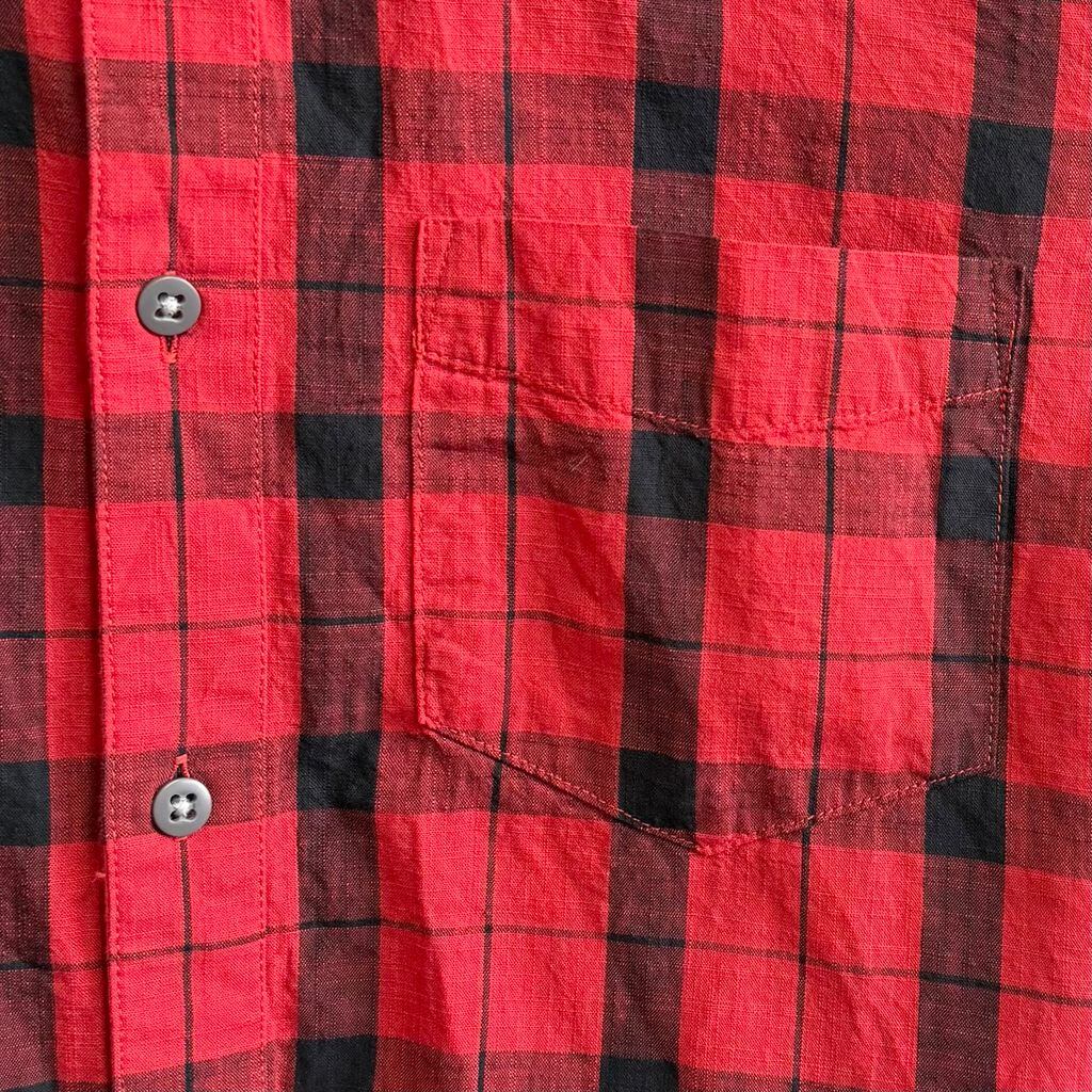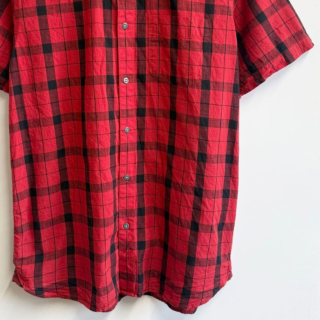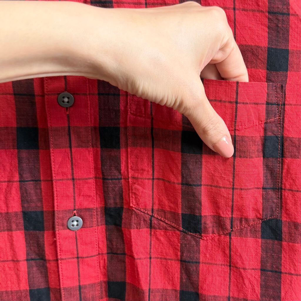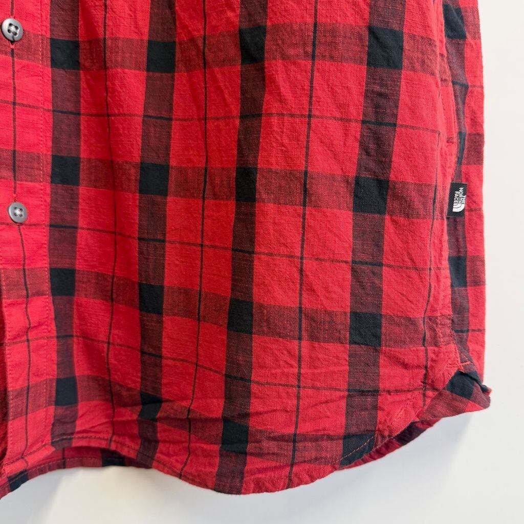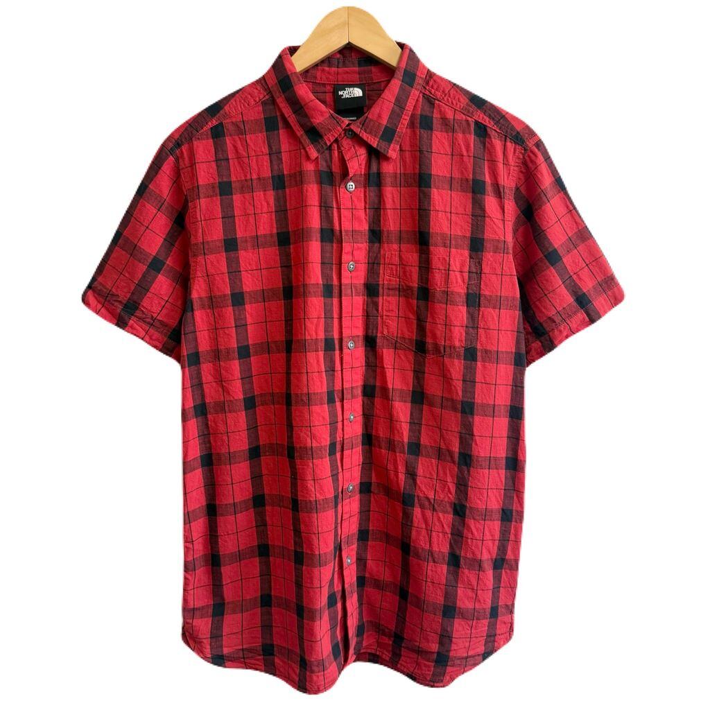 THE NORTH FACE ザノースフェイス コットンシャツ チェック柄 ポケット付き 半袖シャツ 赤×黒 L/Gサイズ No.M868
