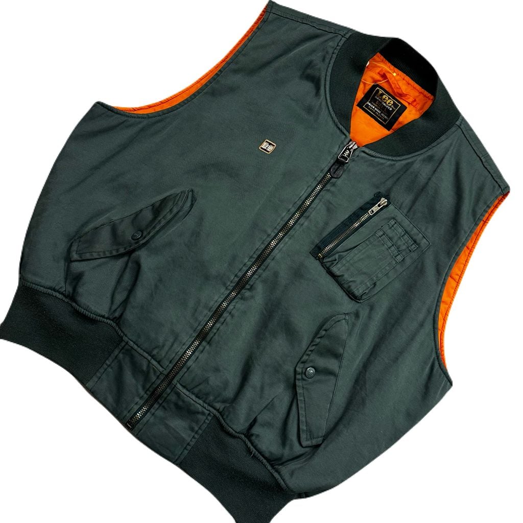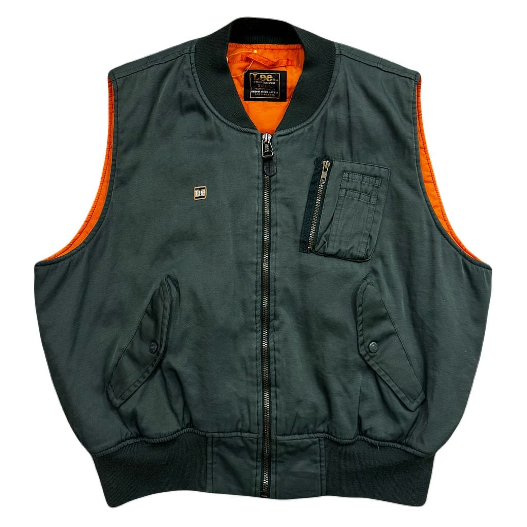 Lee MA-1 リー スタイルベスト 裏地 キルティング 刺繍ロゴ グリーン Lサイズ No.EA264
