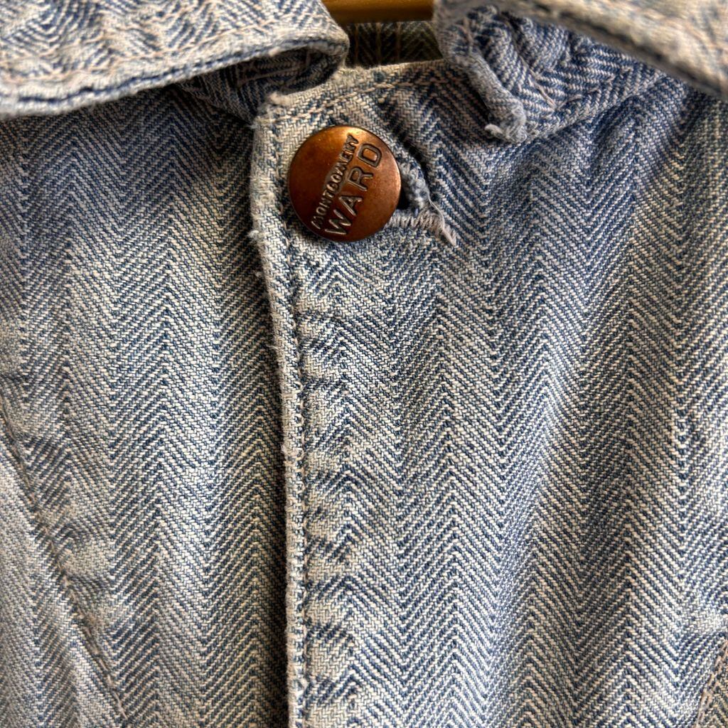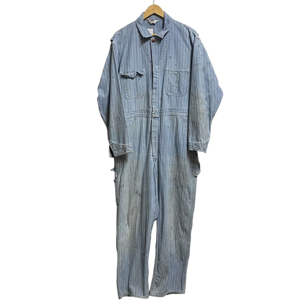 60-70s Montgomery Word モンゴメリーワード ボロ 襤褸 All in one オールインワン HBT ヘリンボーンツイル 青 ブルー NO.T236