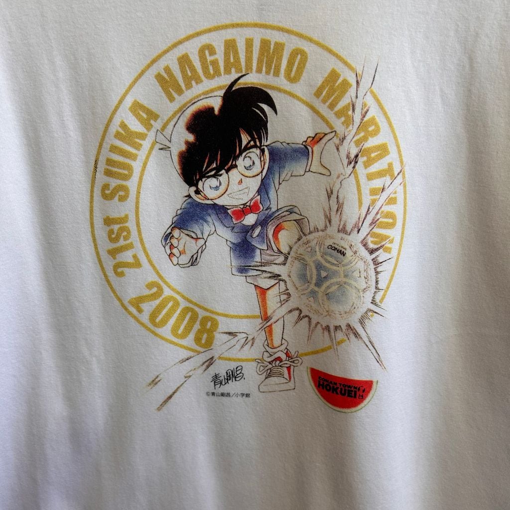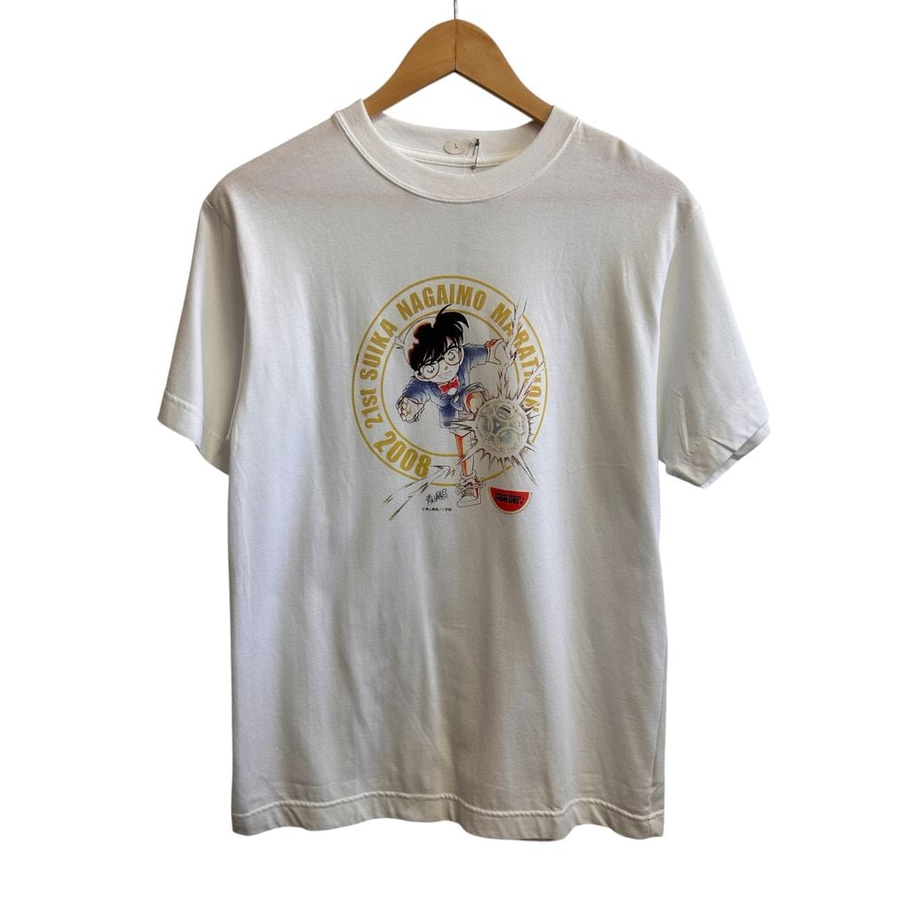 00s 2008年開催 コラボ アニメTEE "名探偵コナン SUIKA NAGAIMO MARATHON DAIEI.T" 江戸川コナン 白 white SIZE L NO.T243