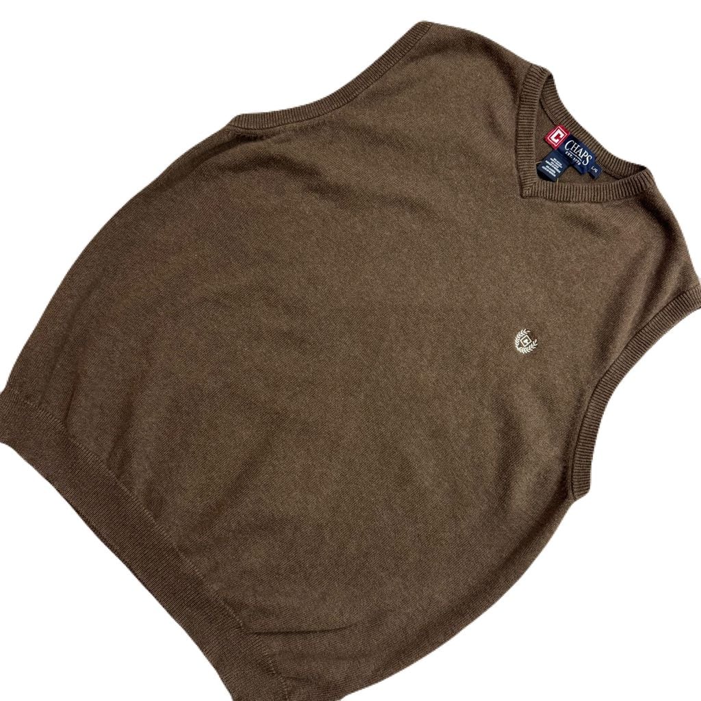 CHAPS チャップス ワンポイント ロゴ刺繍 コットンニット ベスト ブラウン Lサイズ No.EA267