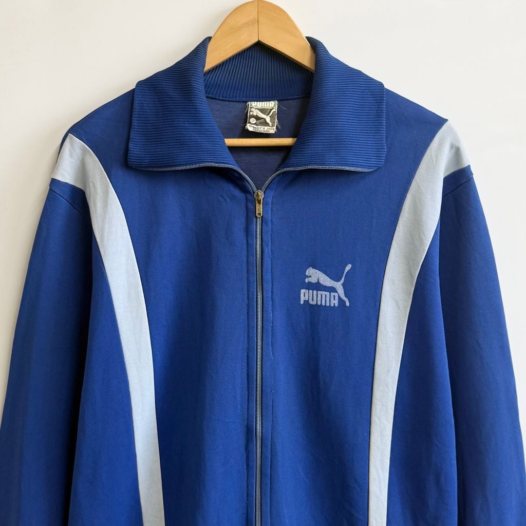 60's 初期 vintage ビンテージ PUMA プーマ トラックジャケット ジャージ ロゴプリント 青×水色 サイズ7 No.M858