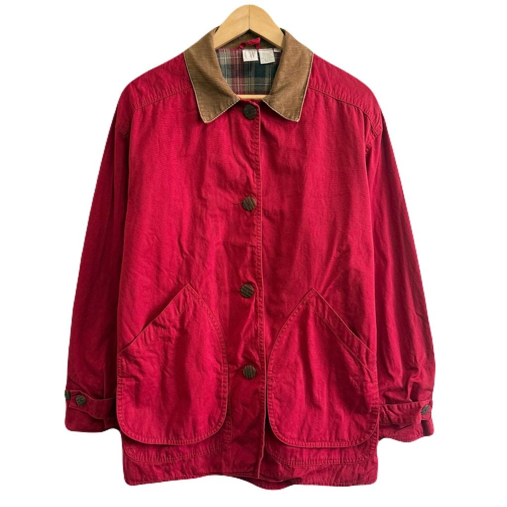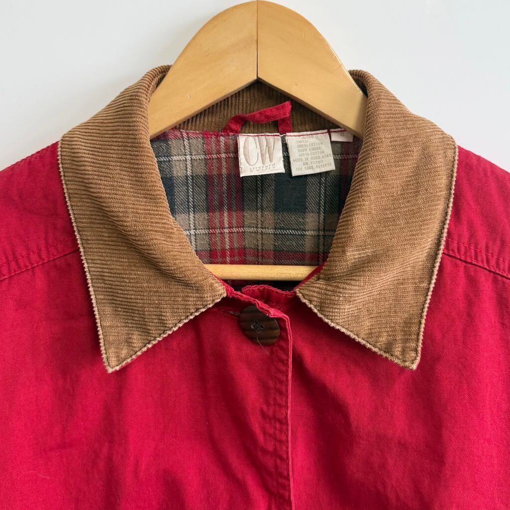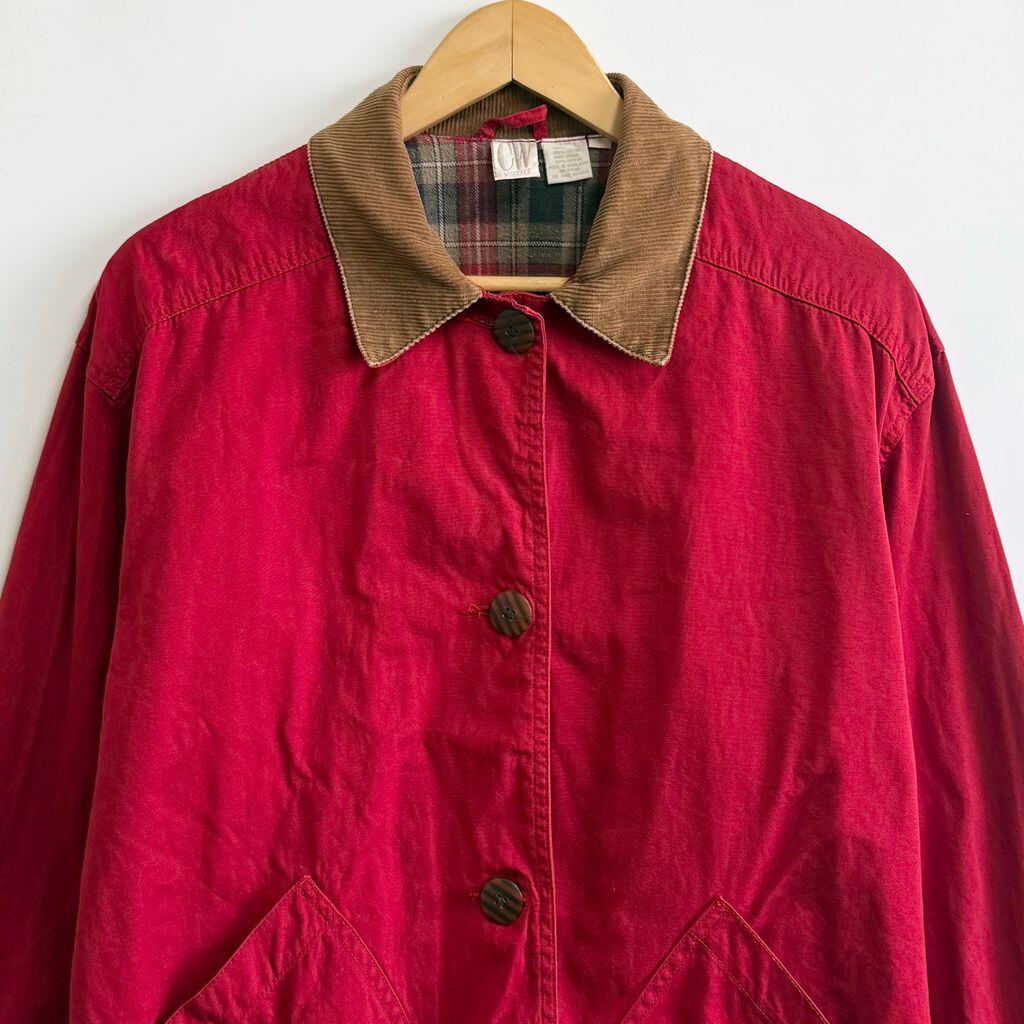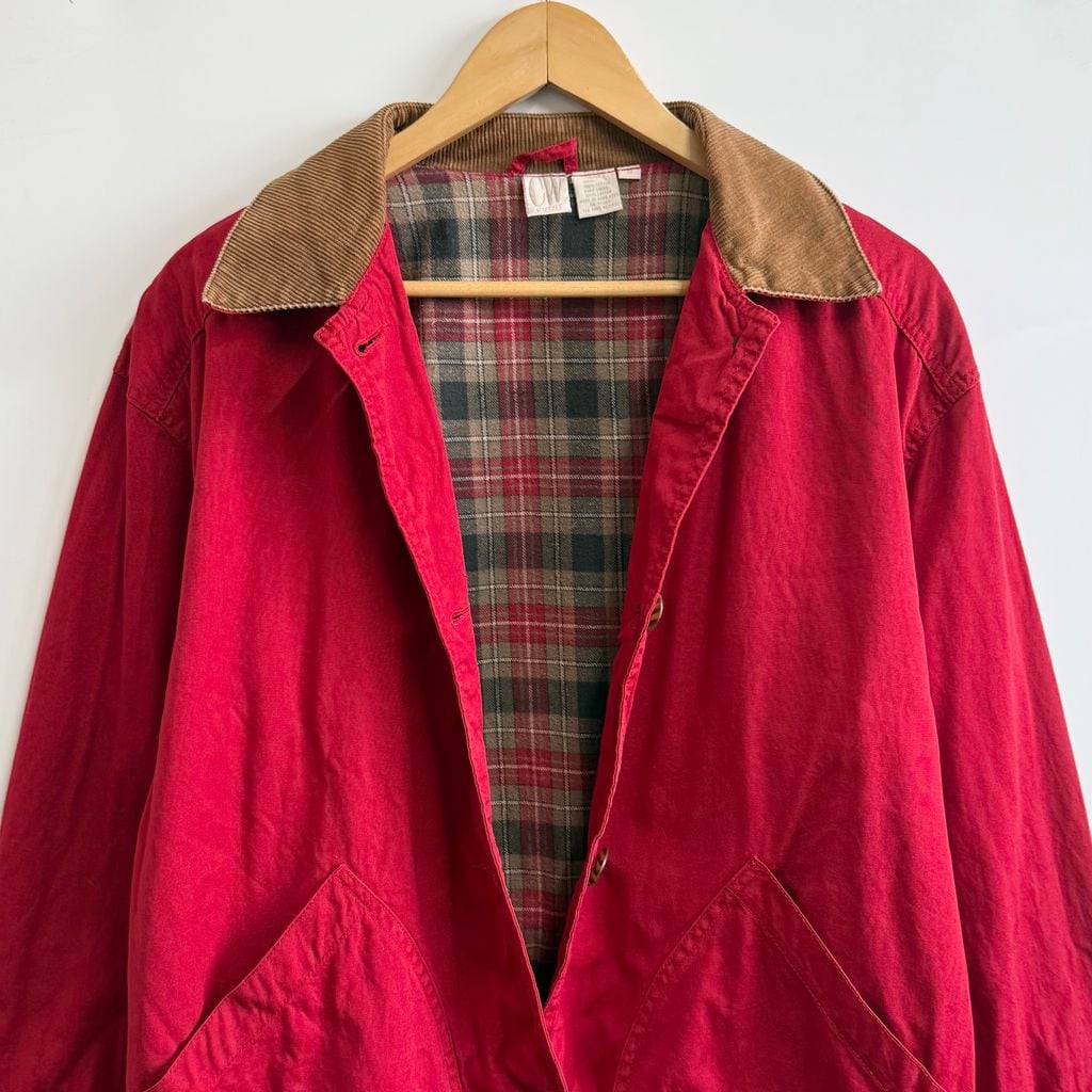 Clifford&wills ハンティングジャケット カバーオール 裏地チェック柄 襟コーデュロイ 赤 レッド Sサイズ No.M880