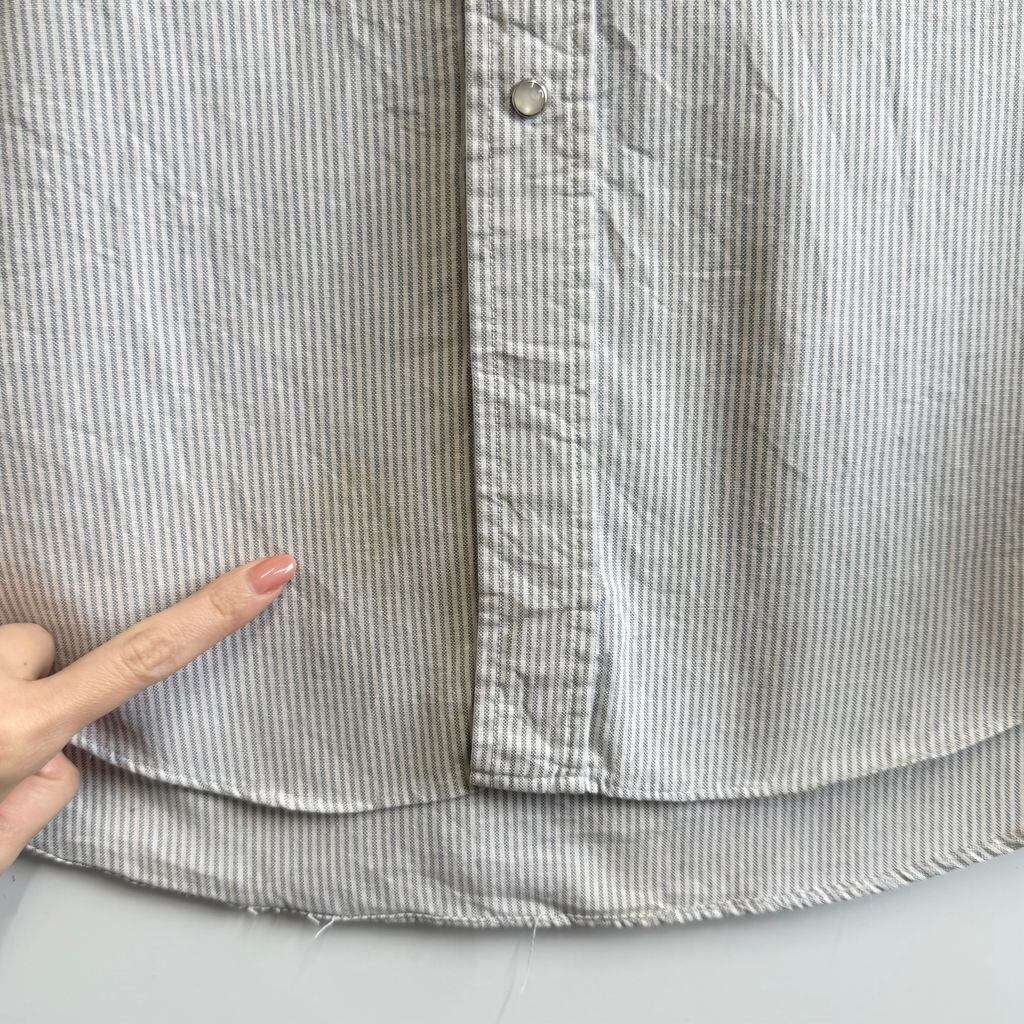 USA製 RUD DOCK ウエスタンシャツ スナップボタン ストライプ ポケット付き 半袖シャツ 白×グレー系 No.M884