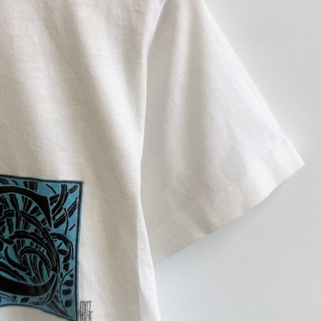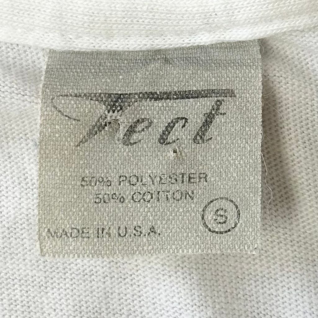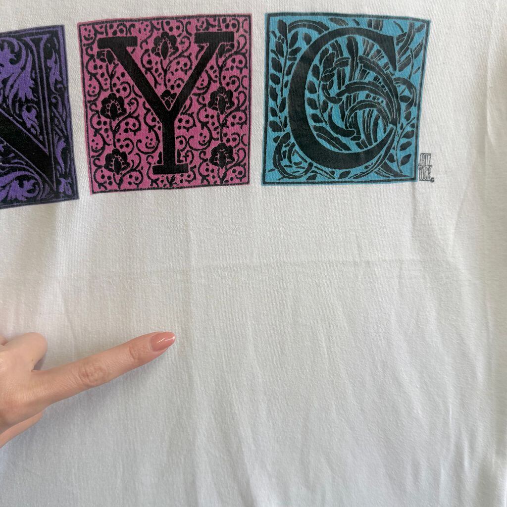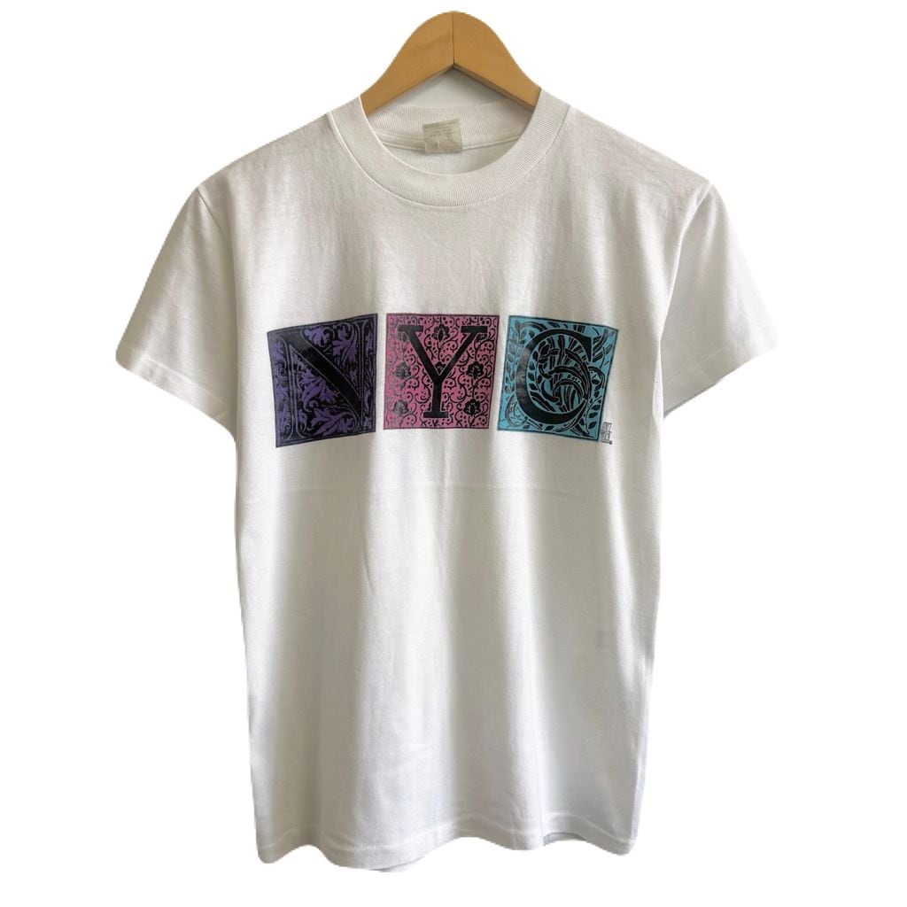 80's〜 vintage ビンテージ USA製 Tect フロントプリント NYC 装飾文字 イニシャルドロップキャップ シングルステッチ 半袖Tシャツ 白 Sサイズ No.M885