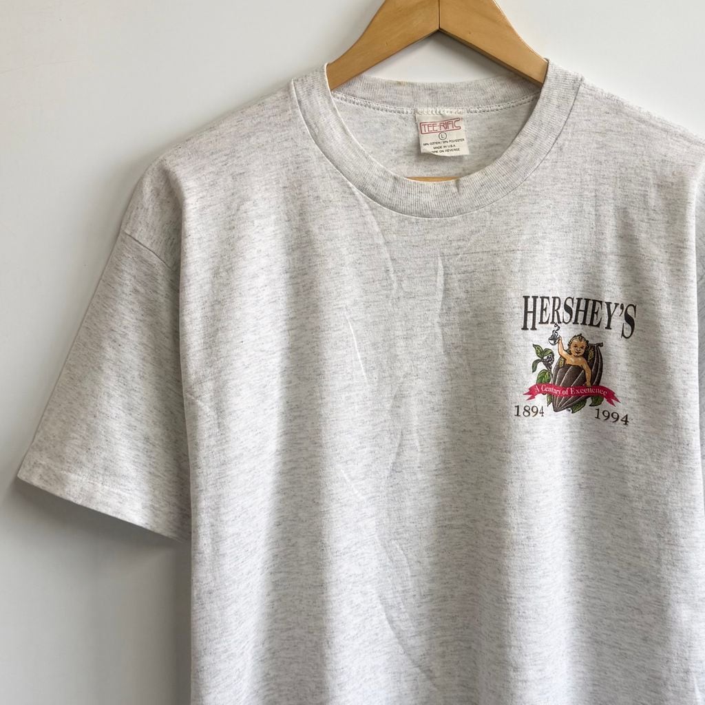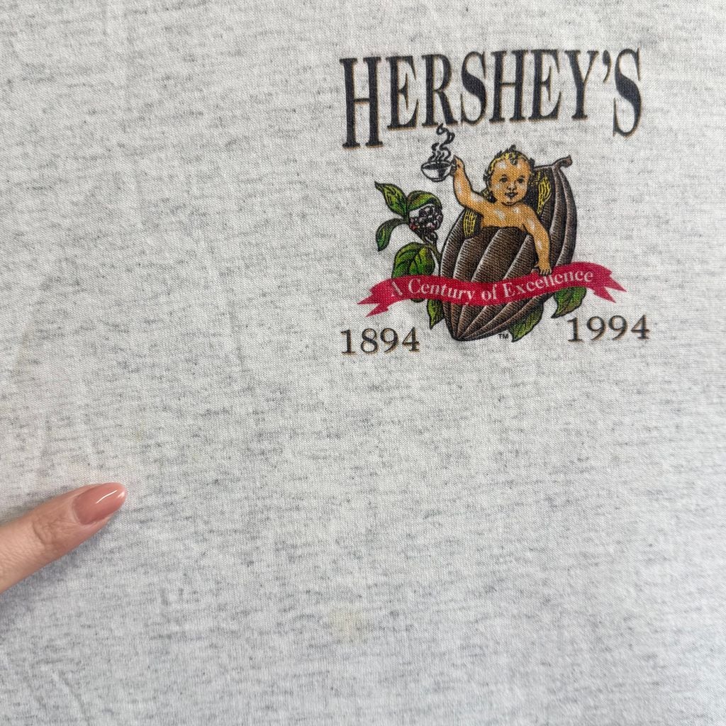 80's〜90's vintage ビンテージ USA製 TEE-RIFIC ハーシーズ ココア 赤ちゃん キューピット シングルステッチ 半袖Tシャツ ライトグレー系 Lサイズ No.M887