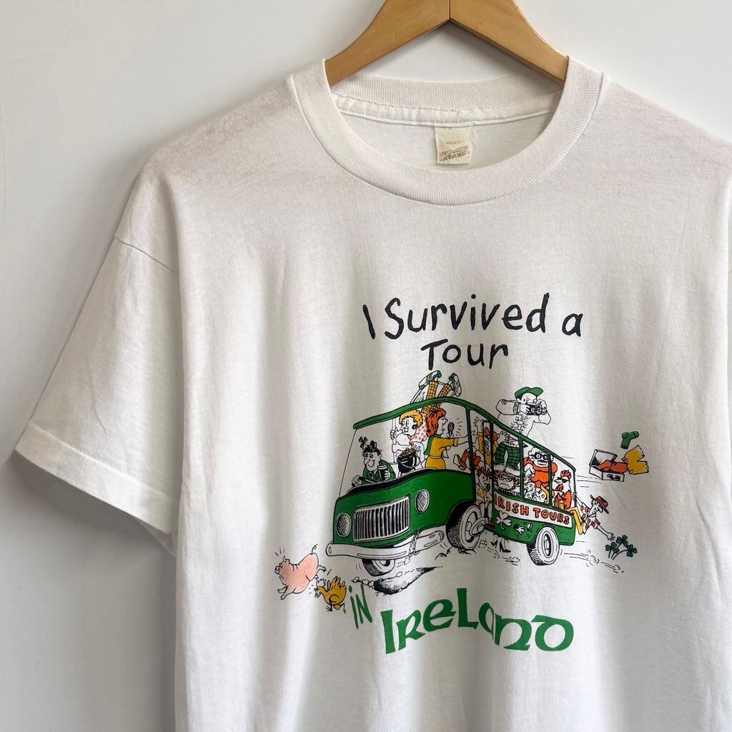 80's〜 vintage ビンテージ SCREEN STARS スクリーンスターズ アイルランド バス イラスト コミカル シングルステッチ 半袖Tシャツ 白 No.M888