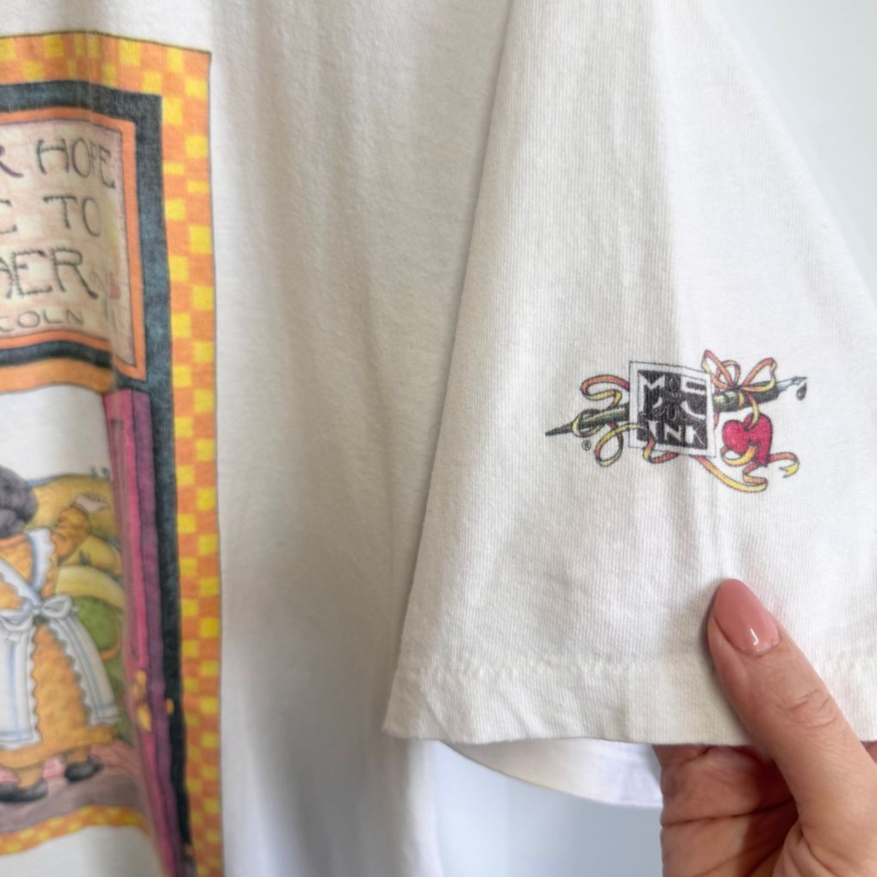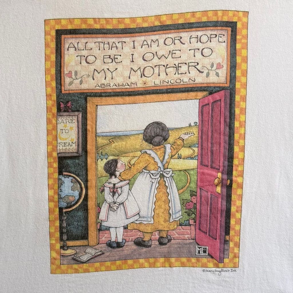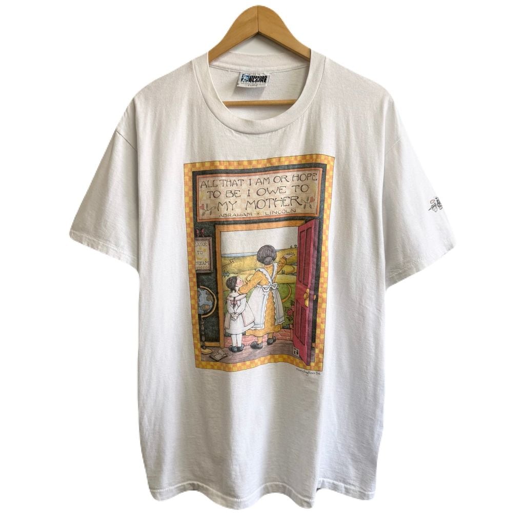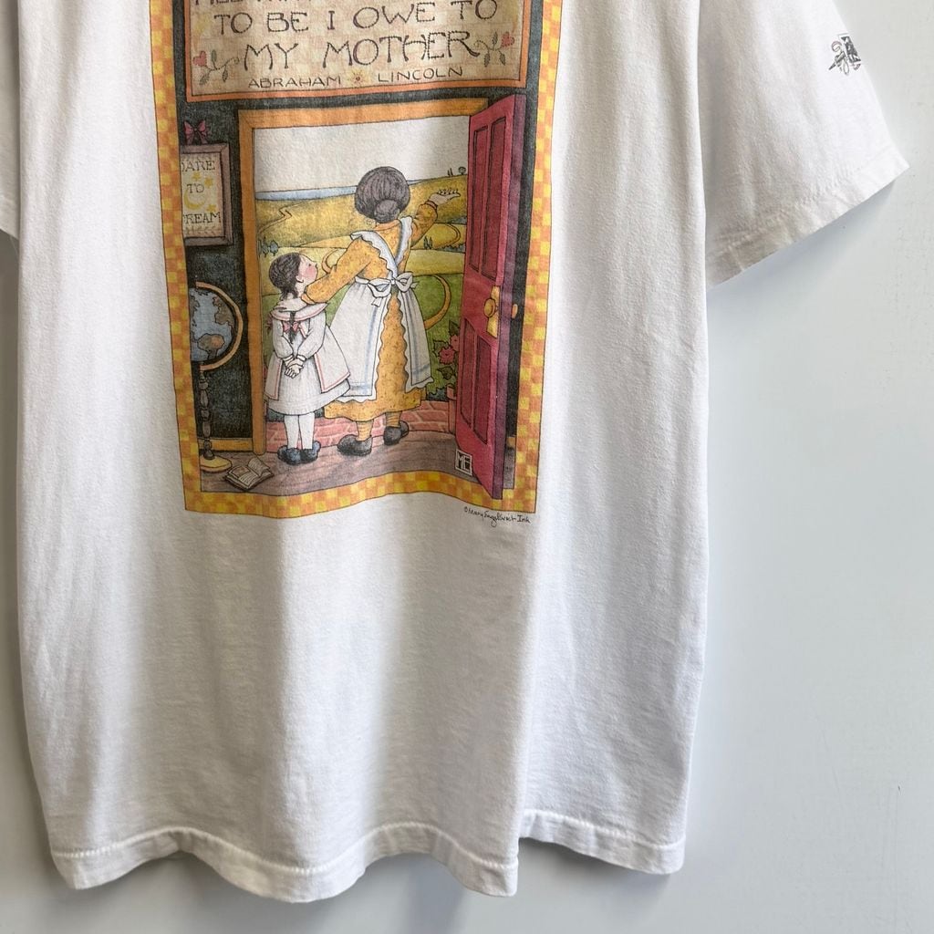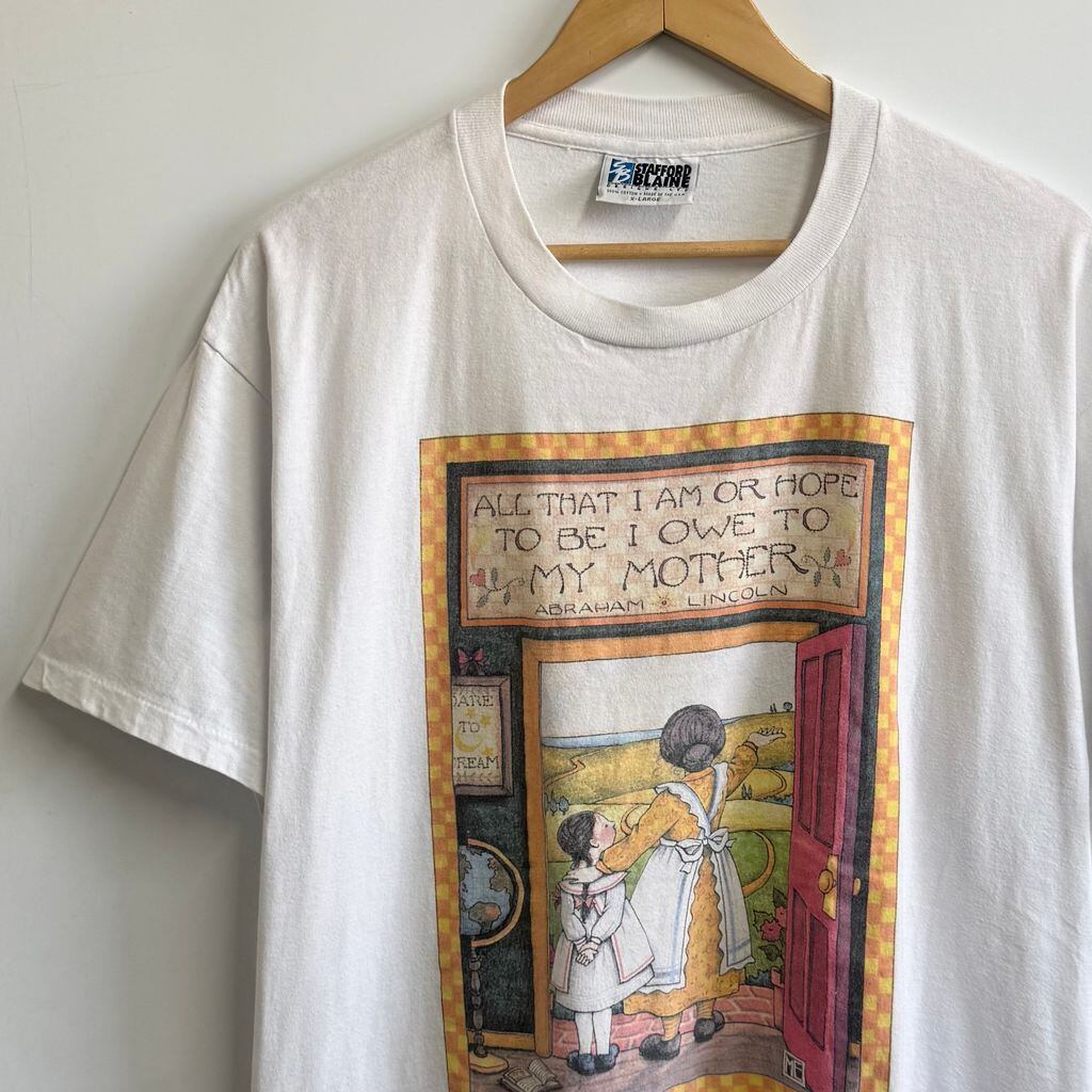 USA製 STAFFORD BLAINE メアリーエンゲルブライト 母親 女の子 景色 2面プリント シングルステッチ 半袖Tシャツ 白 XLサイズ No.M889