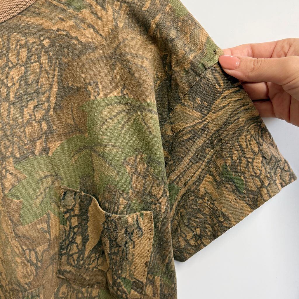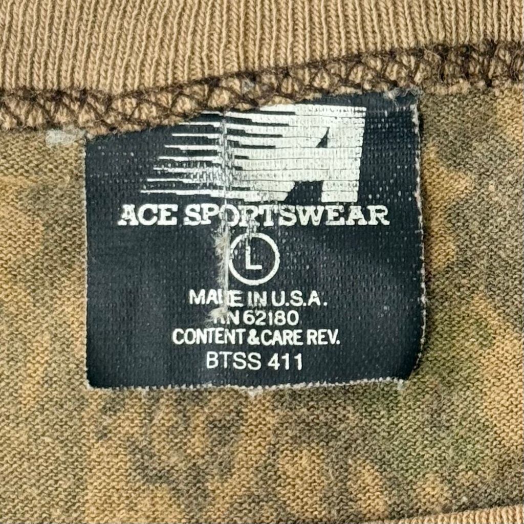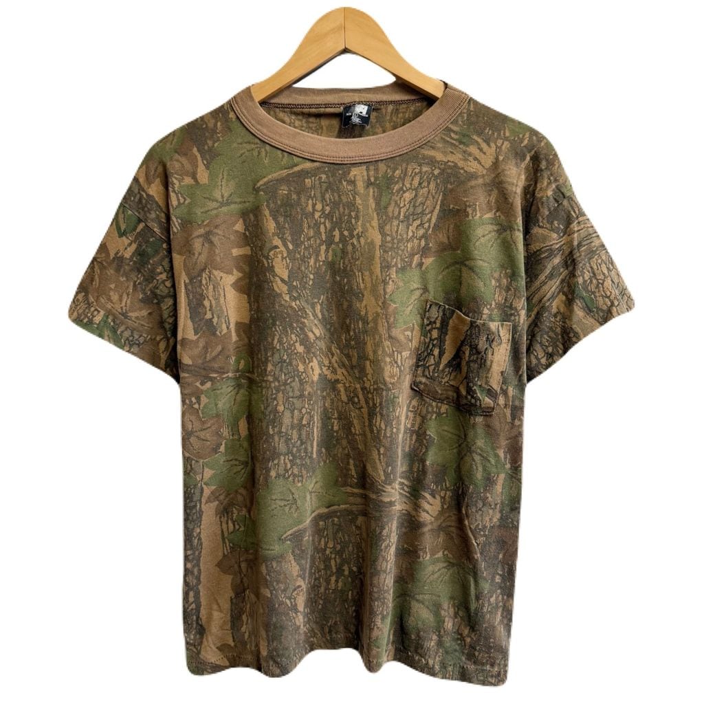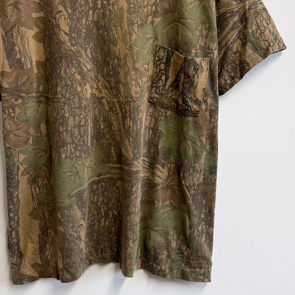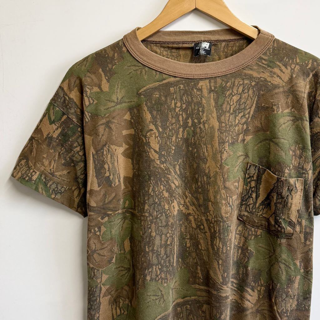 80's〜 vintage ビンテージ USA製 ACE SPORTSWEAR リアルツリーカモ 胸ポケット付き シングルステッチ 半袖Tシャツ 多色 Lサイズ No.M892